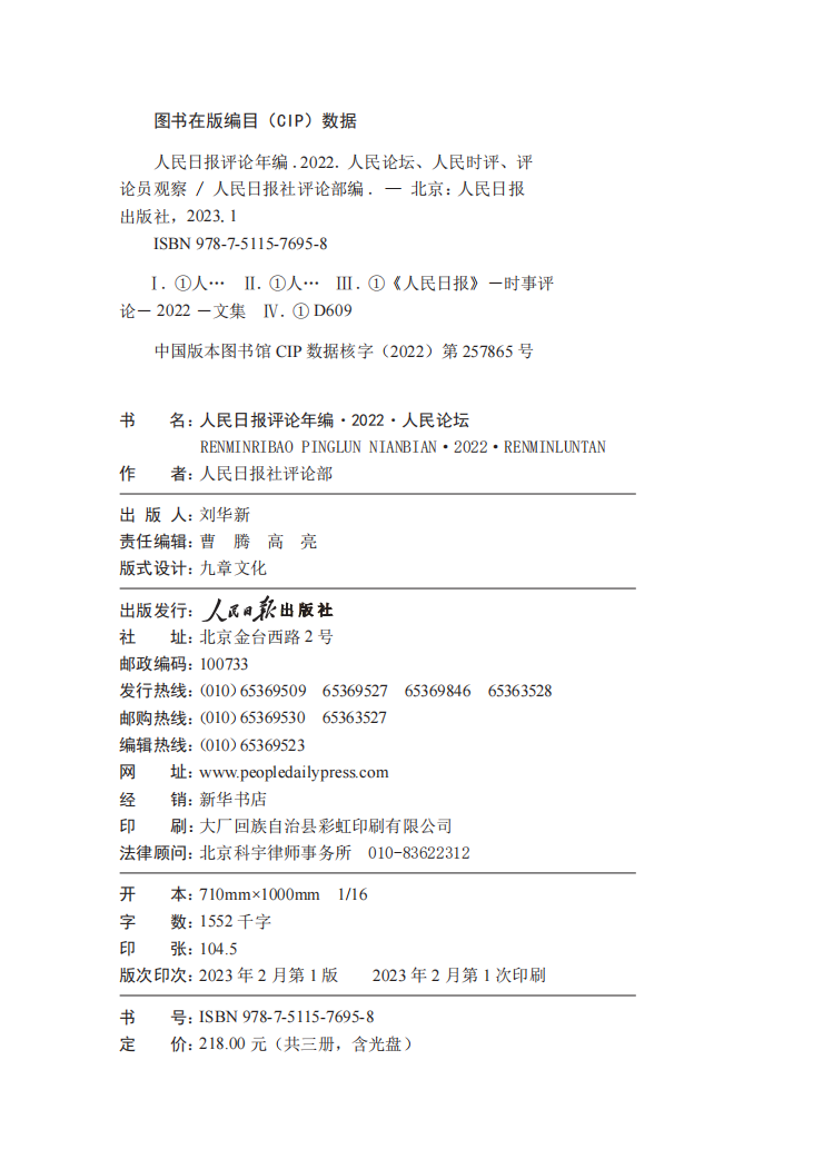 人民日报评论年编(2022)人民论坛、人民时评、评论员观察(人民日报出版社)