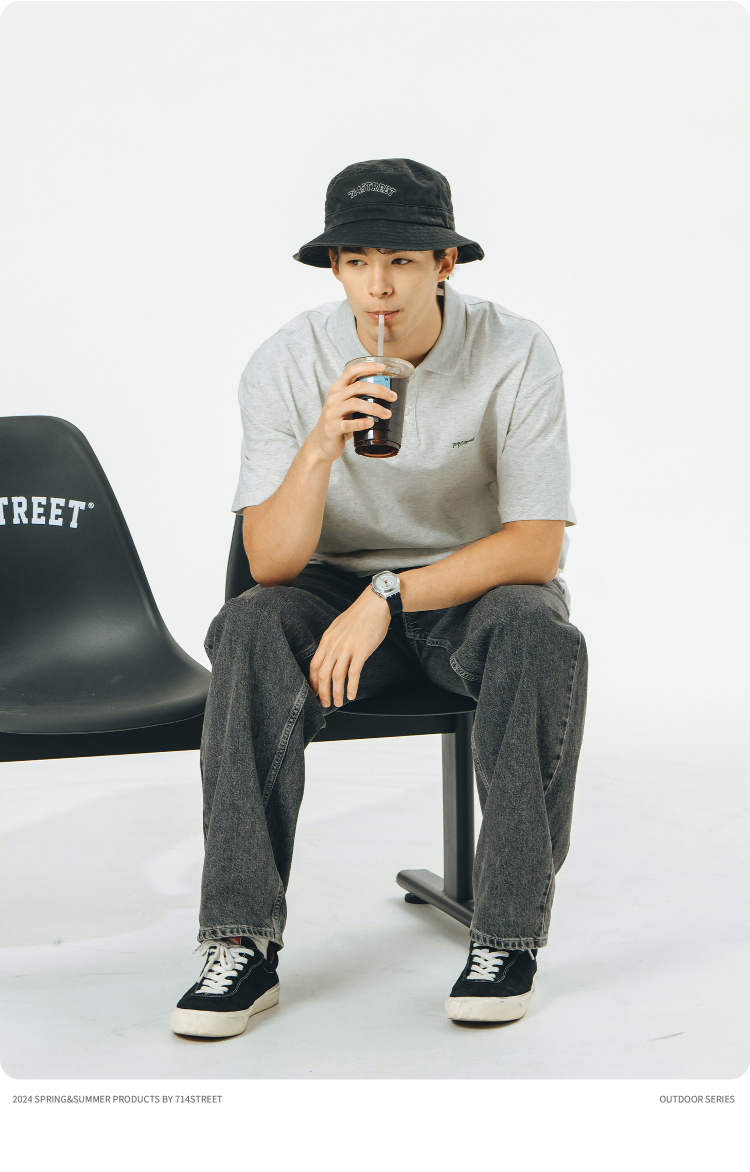 714street潮牌渔夫帽男日系复古盆帽简约字母刺绣帽子防晒遮阳帽