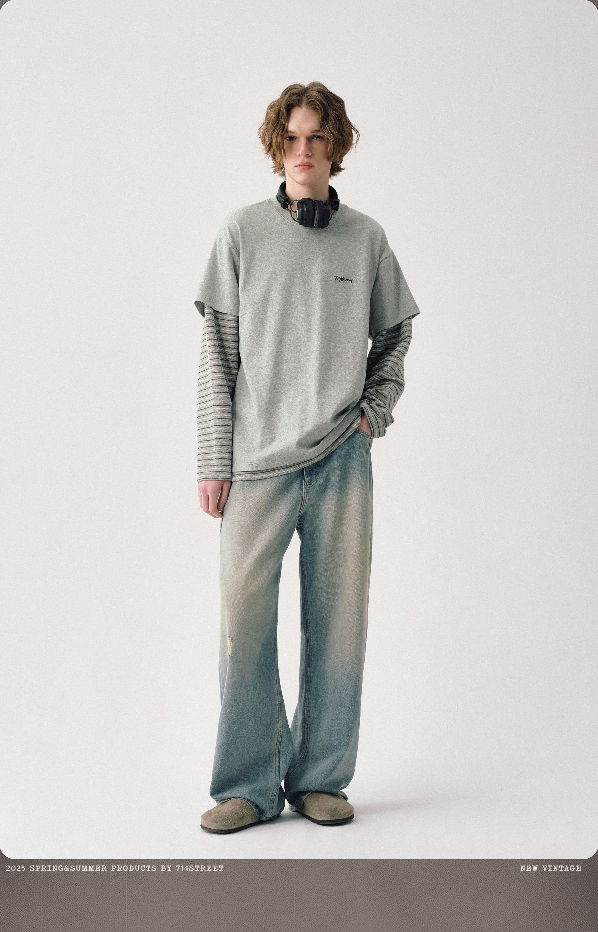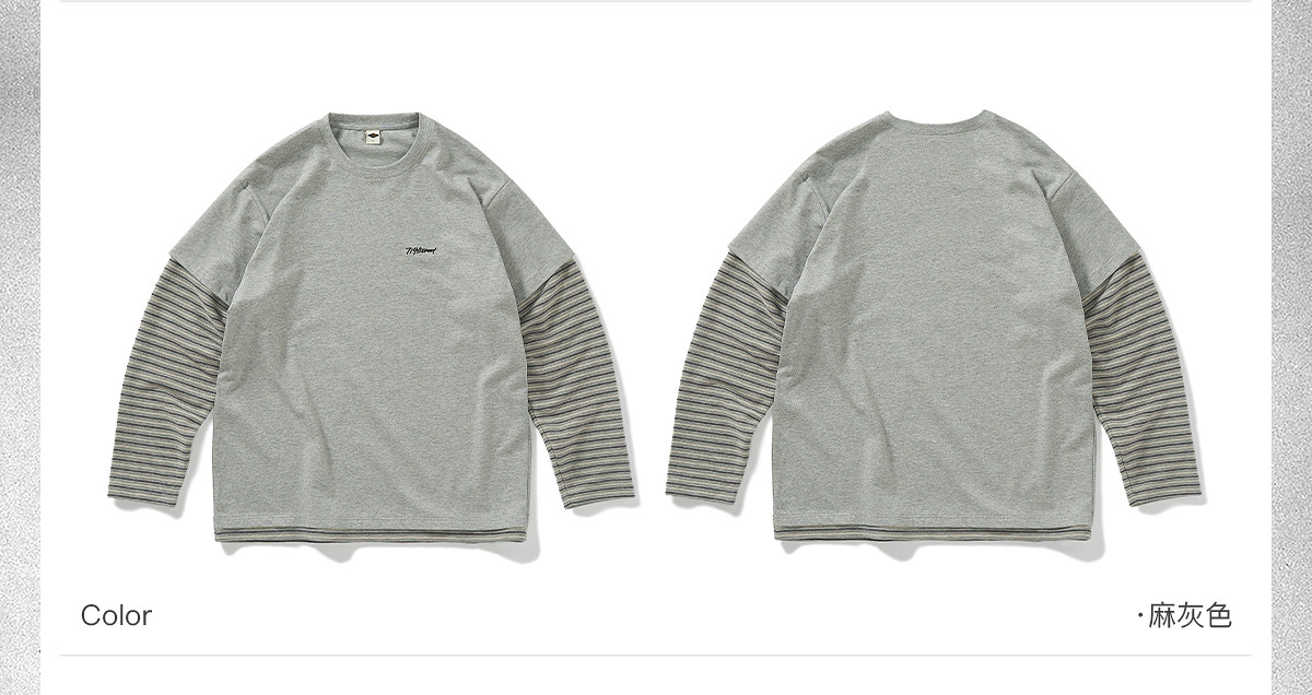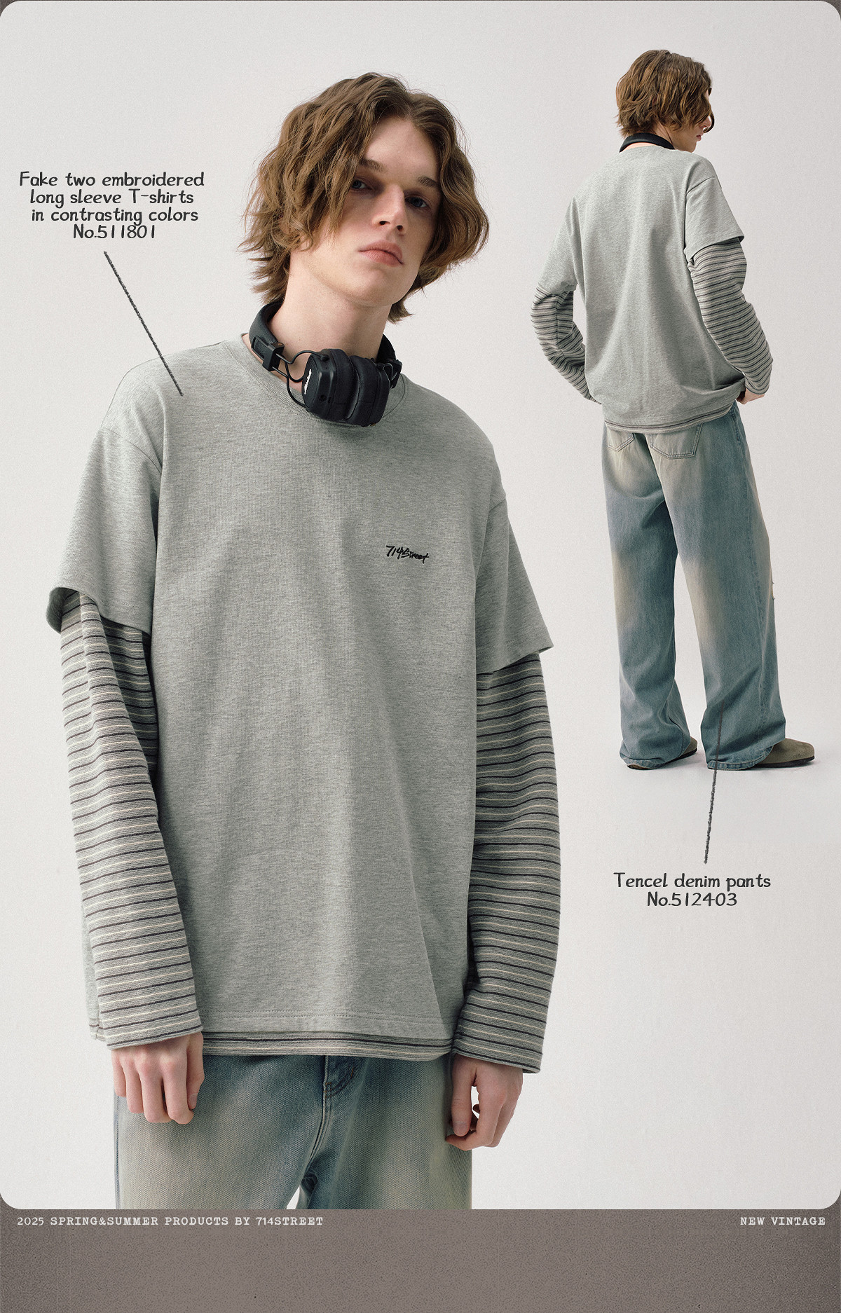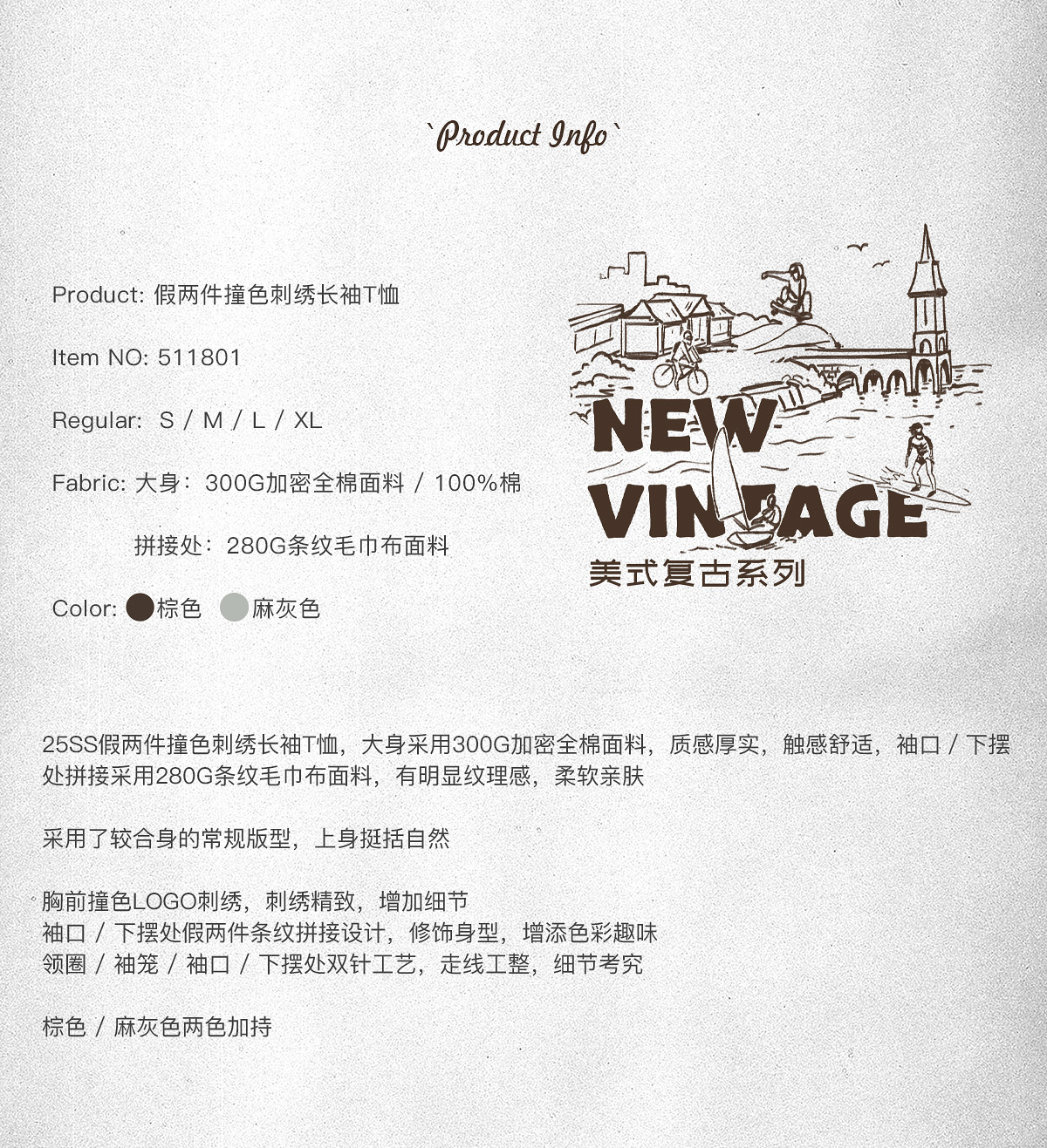 714street重磅300g纯棉假两件长袖T恤男2025春季新款毛巾料体恤衫