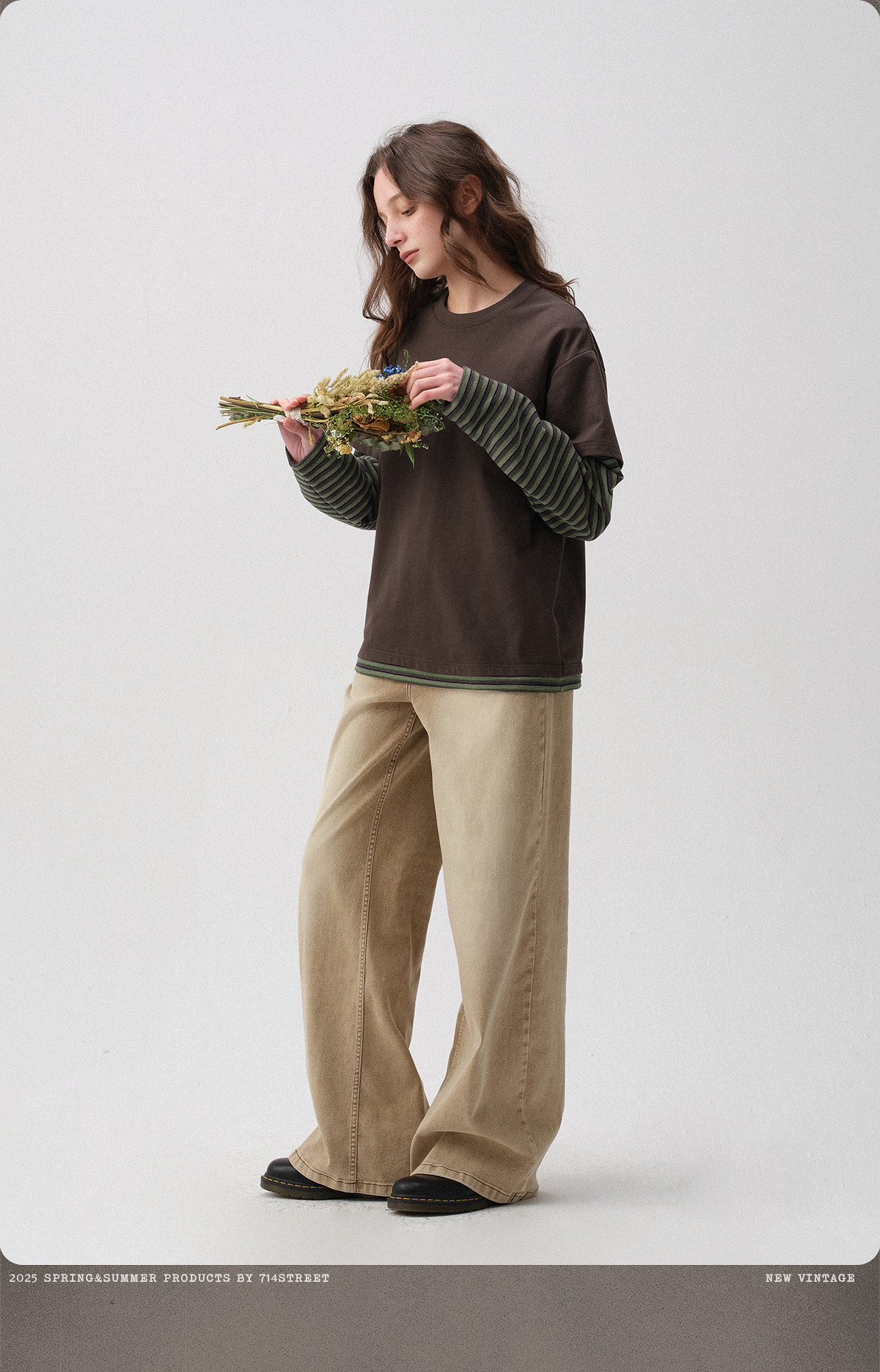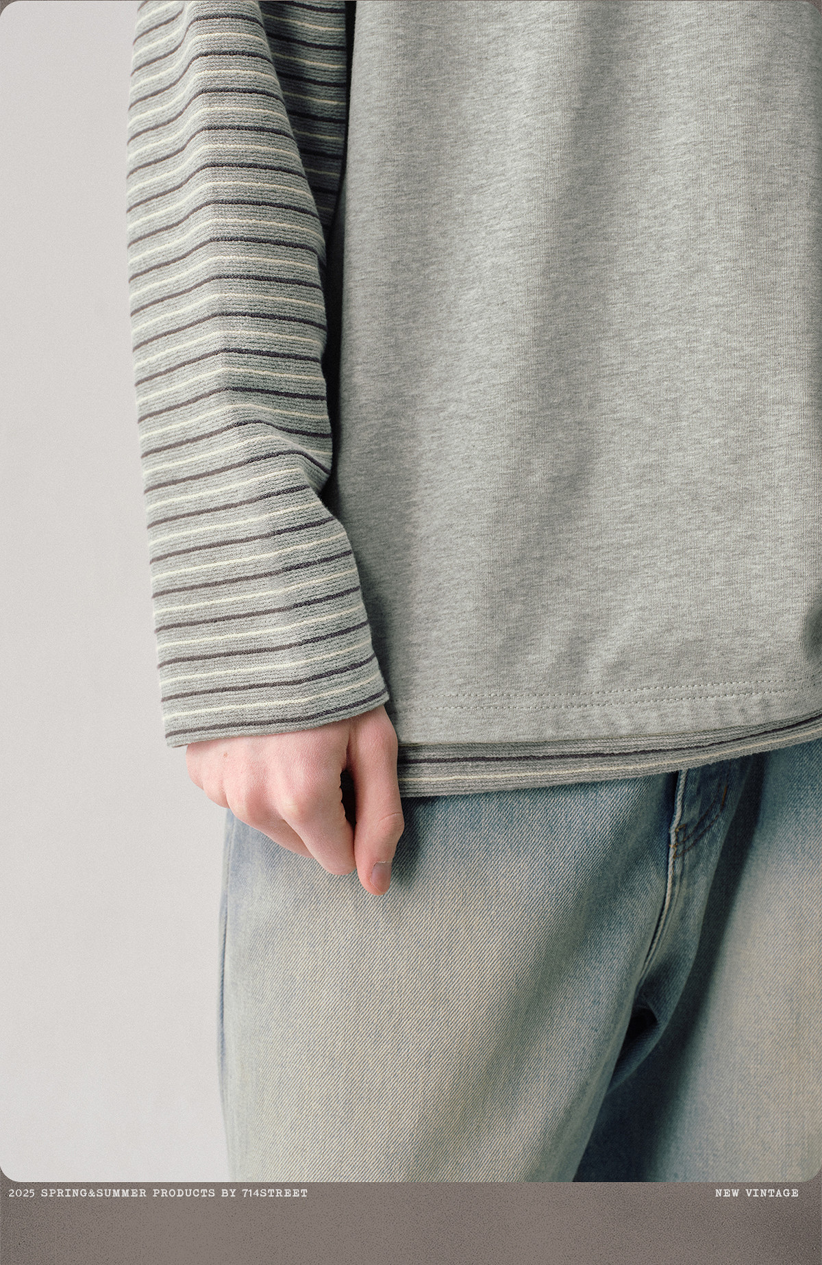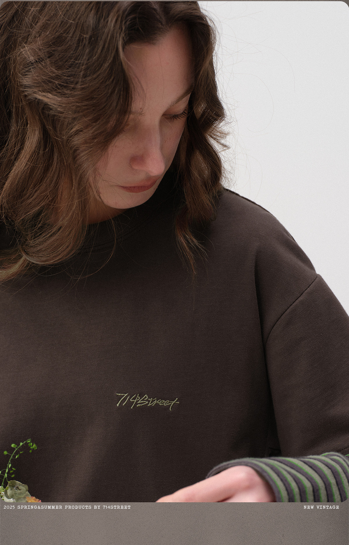 714street重磅300g纯棉假两件长袖T恤男2025春季新款毛巾料体恤衫