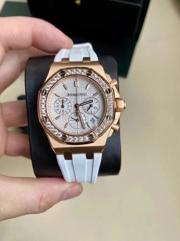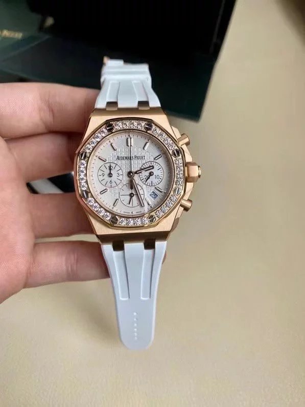 -AP系列:皇家橡树离岸型系列类型:女士计时腕表材料:316L精钢机芯:石英日本机表镜:防眩光处理水晶玻璃(兰宝)表带:料胶带表扣:原装折叠扣 尺寸:37mmx11.5mm