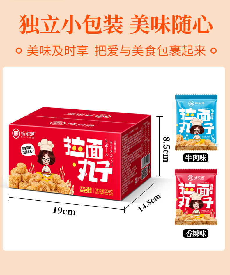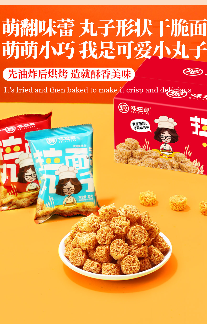 味滋源拉面丸子200g干脆面怀旧小吃宵夜办公室点心充饥休闲零食品【分销】