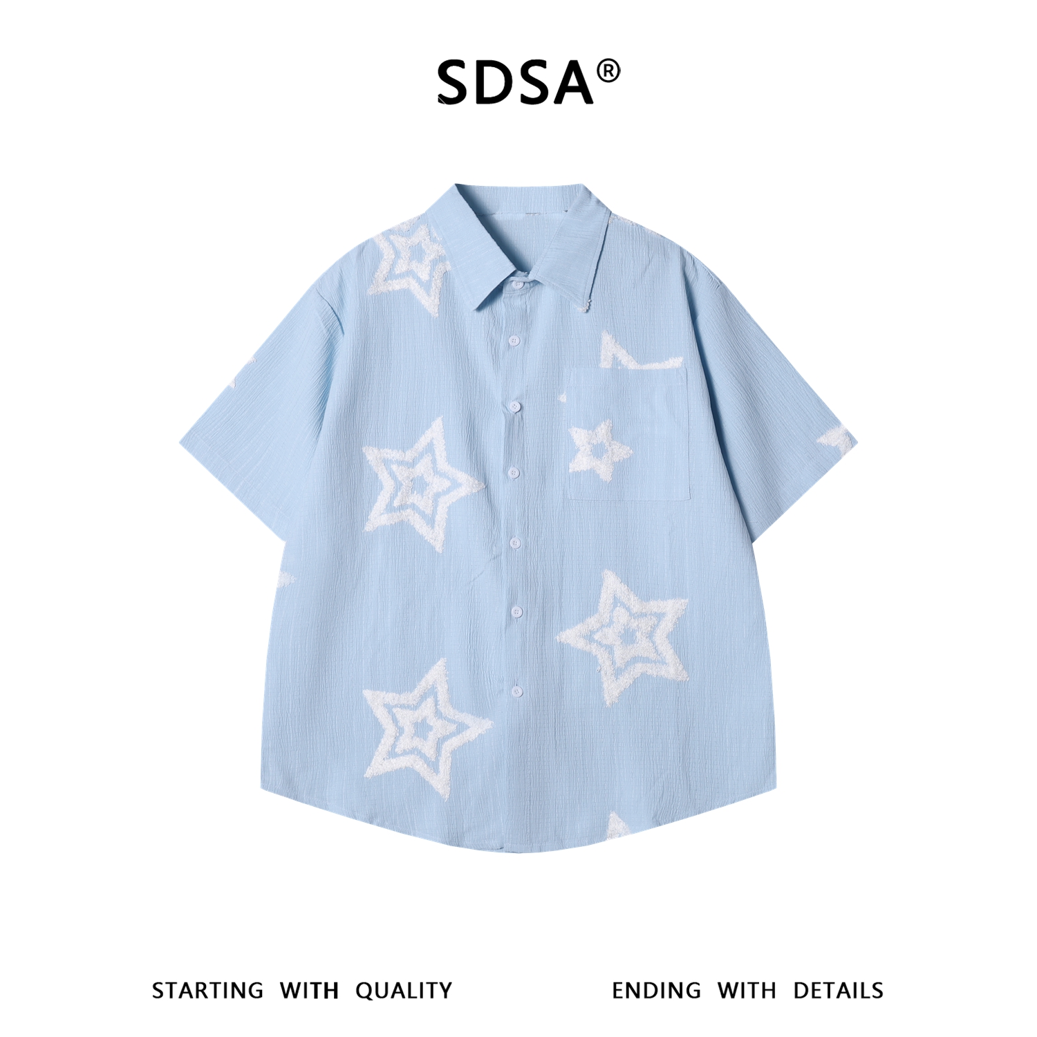 SDSA男装2026新款高贵轻奢潮牌简约撞色刺绣星星短袖衬衫百搭休闲