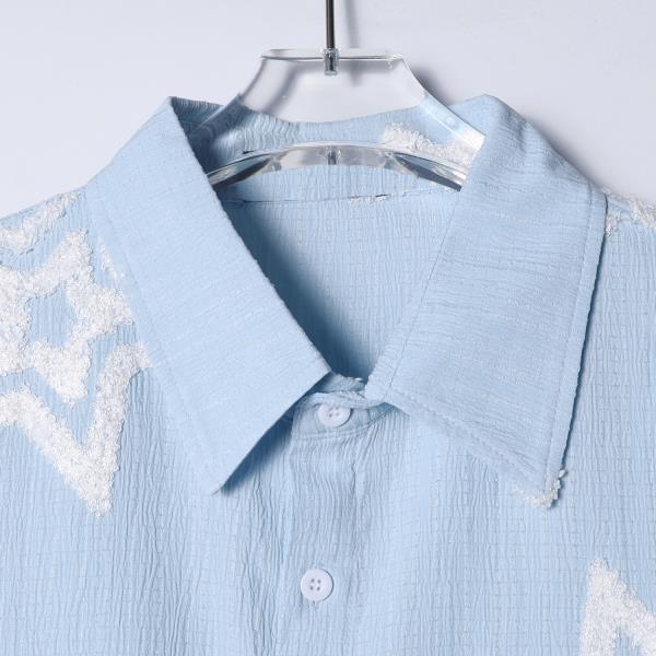 CS130夏季新款时尚花边拼接男士衬衫百搭潮流休闲上衣宽松复古短袖