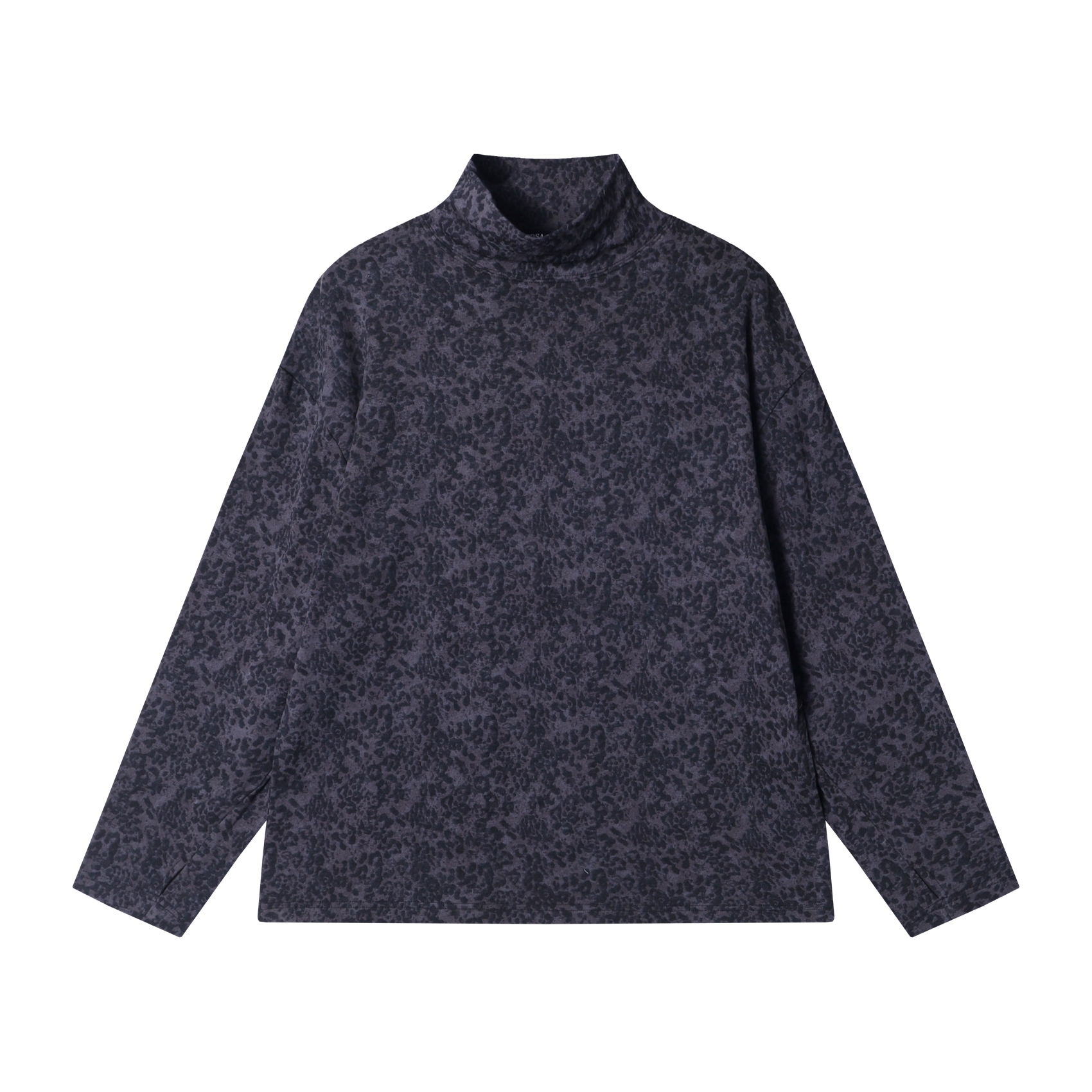 秋冬季新款时尚个性美式立体提花半高领长袖T恤百搭复古套头上衣