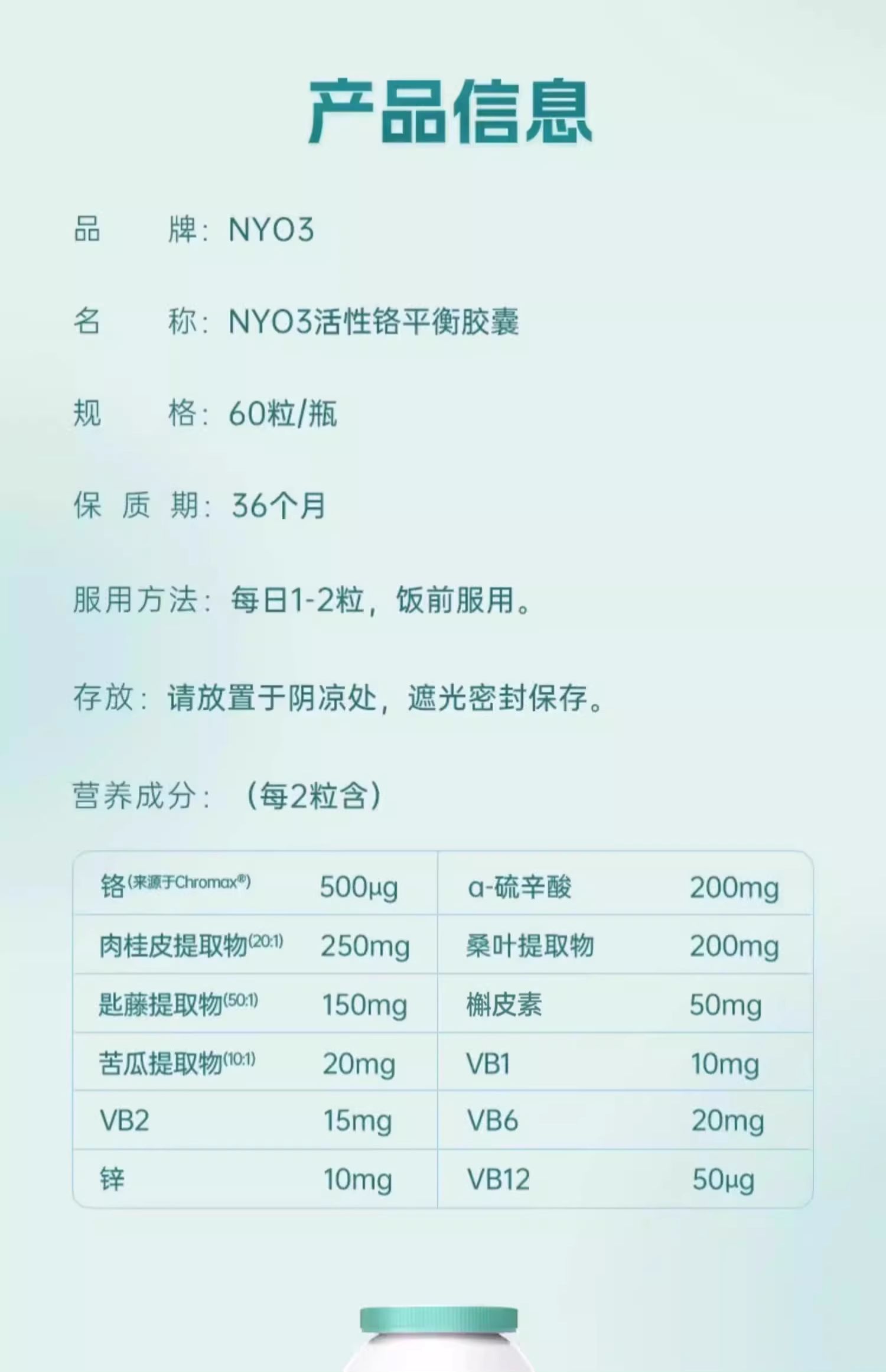 NYO3血糖胶囊铬元素吡啶甲酸铬三价铬天然口服胰素苦瓜素非皂苷