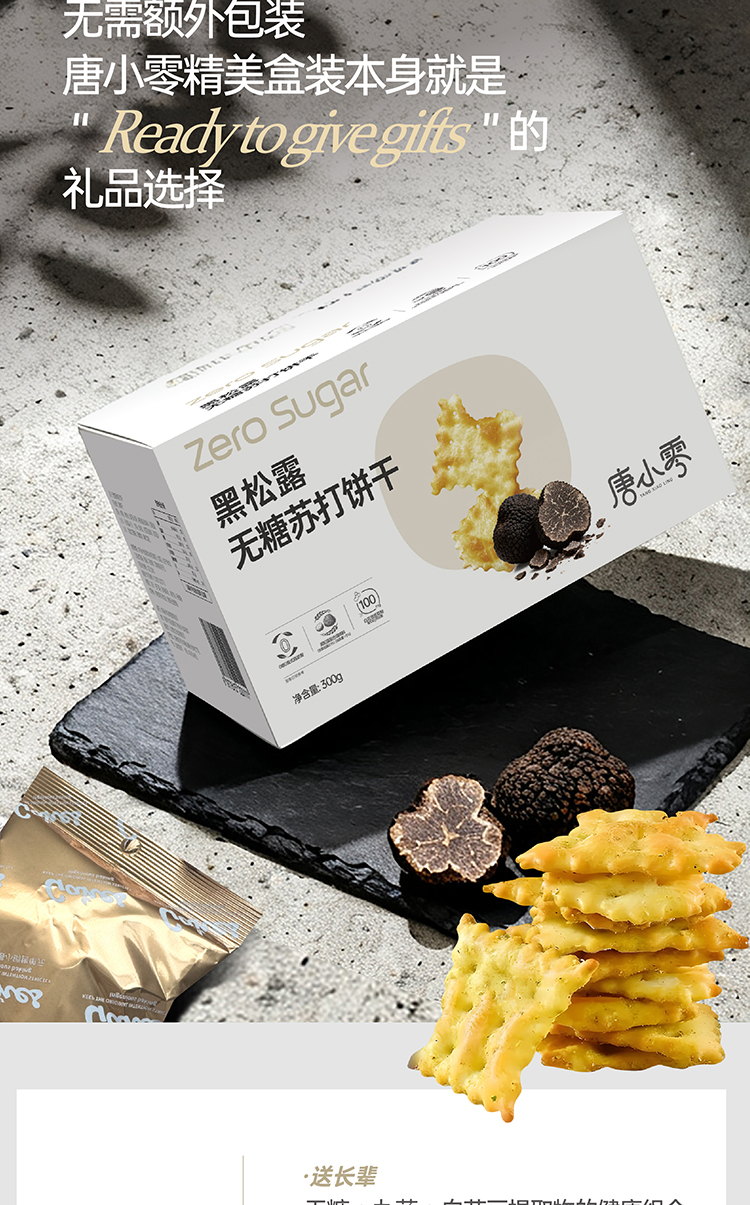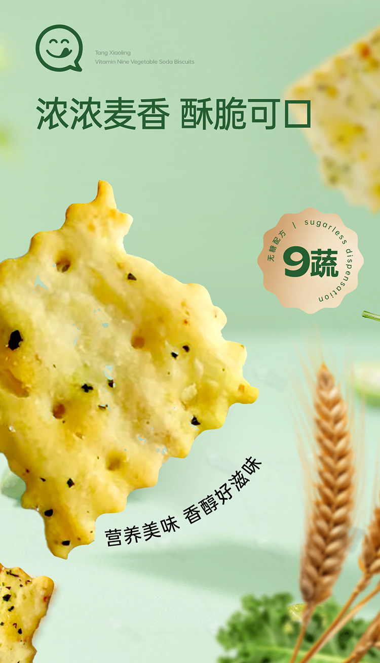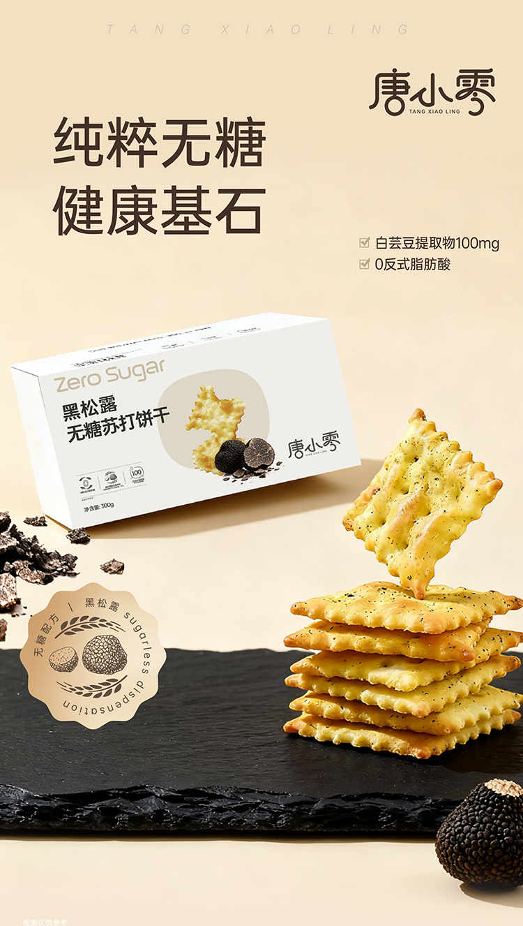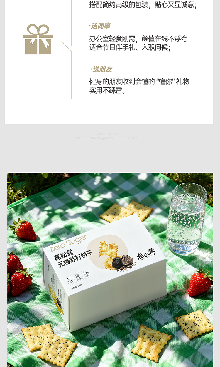 唐小零无糖健康苏打饼干系列黑松露九种蔬菜添加