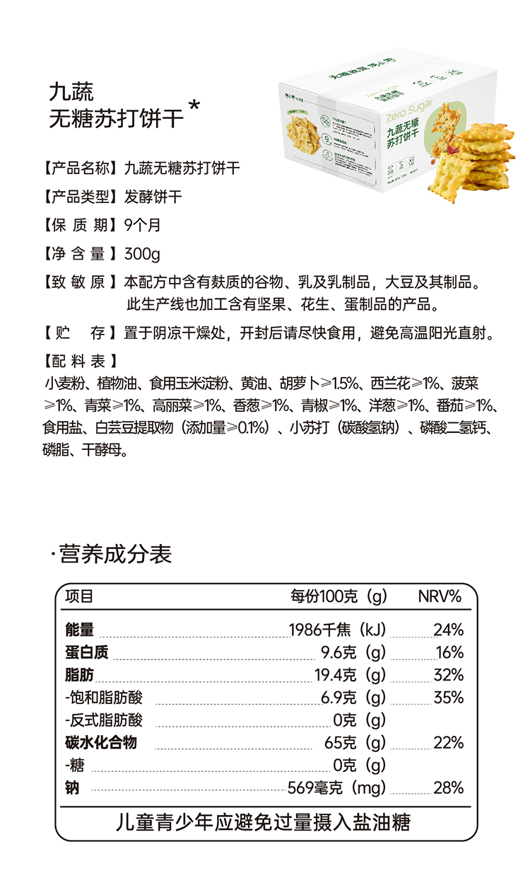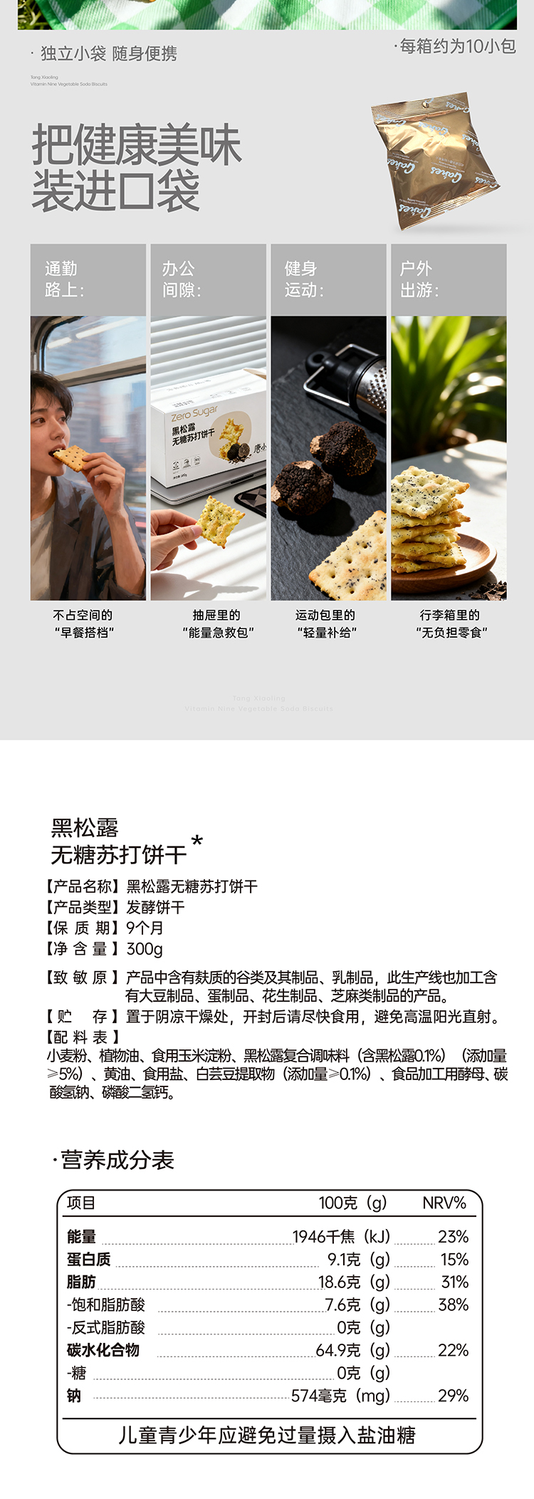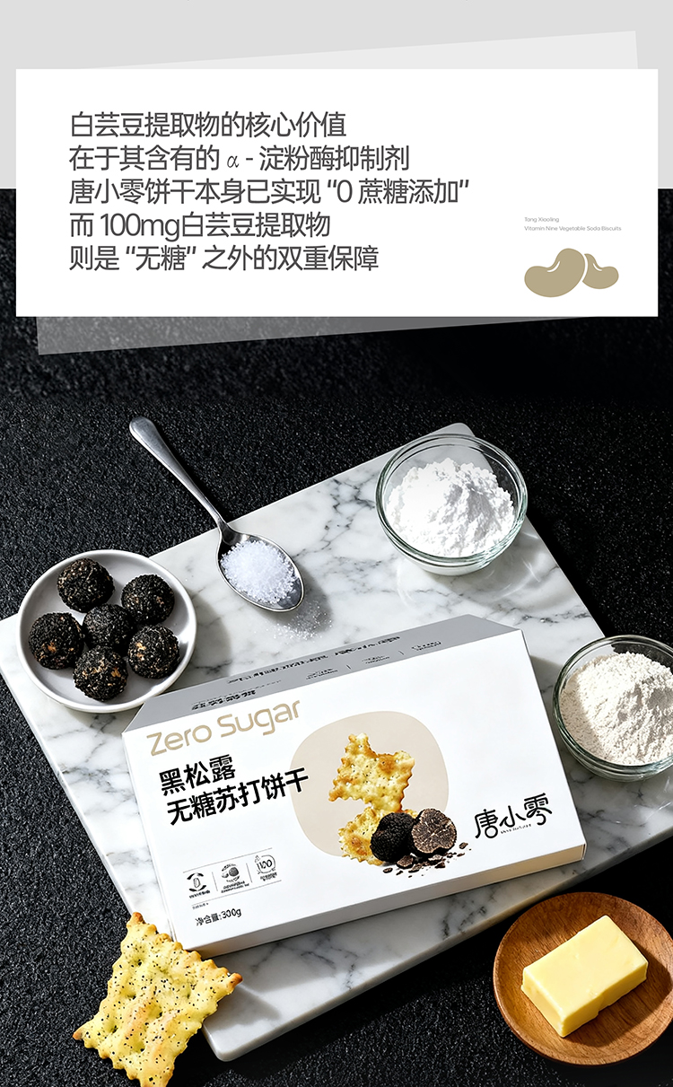 唐小零无糖健康苏打饼干系列黑松露九种蔬菜添加