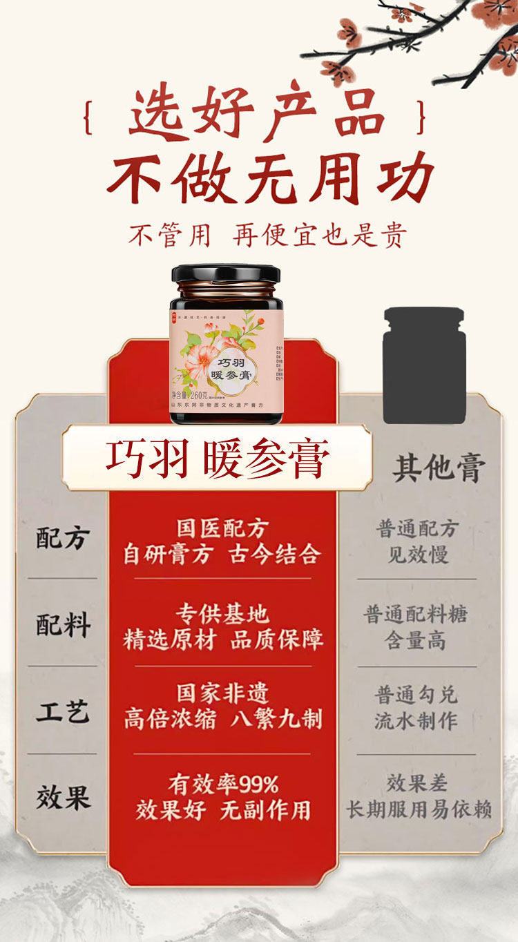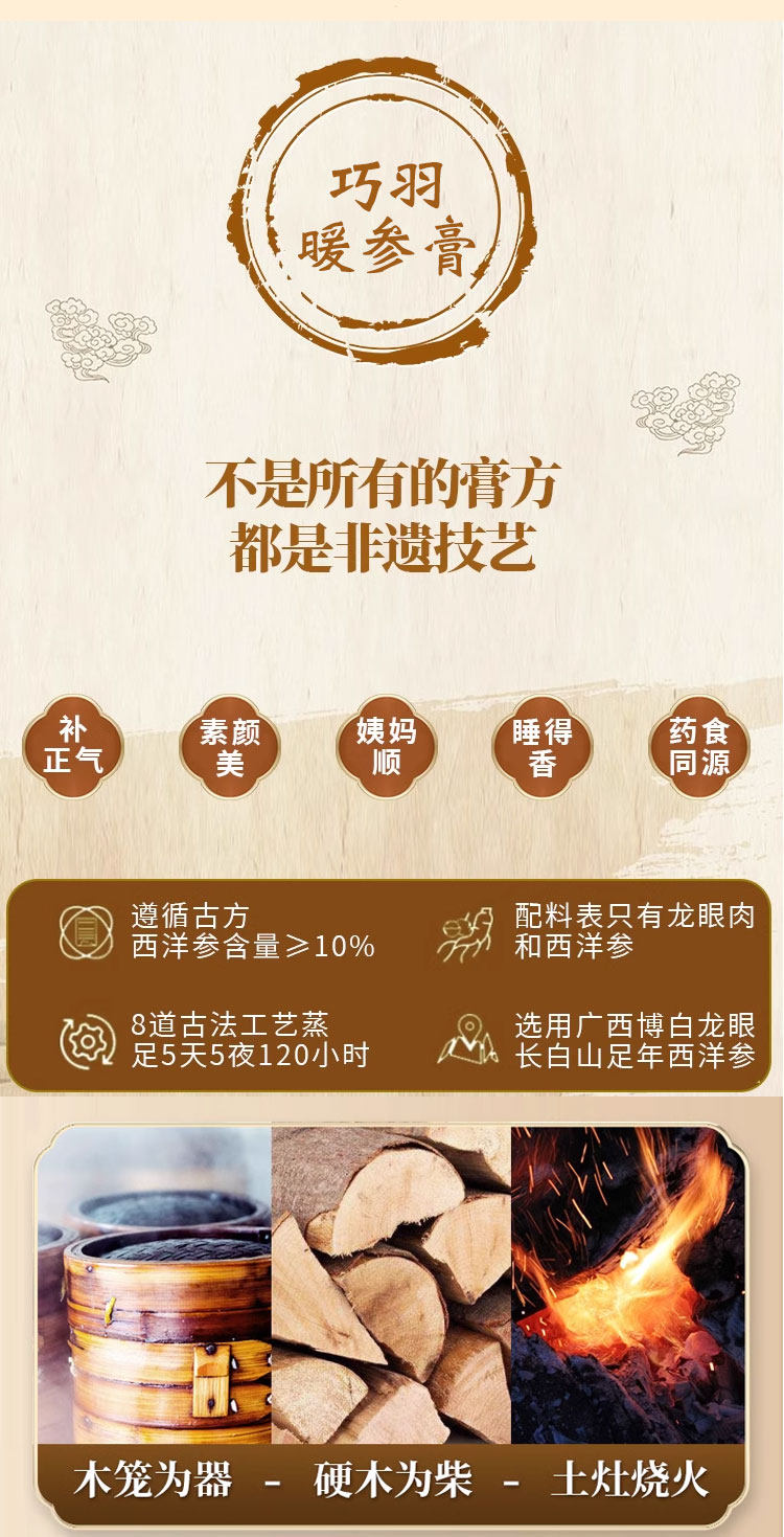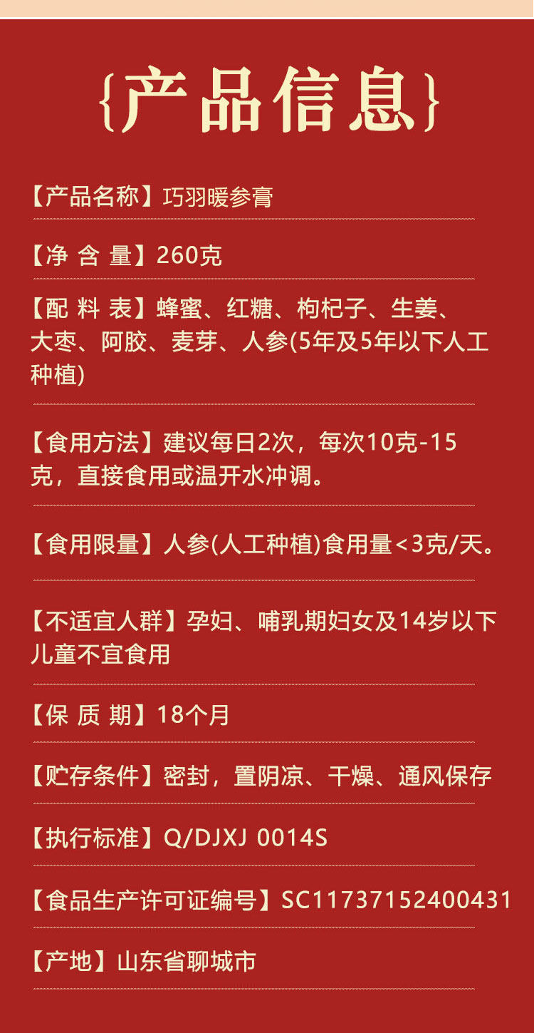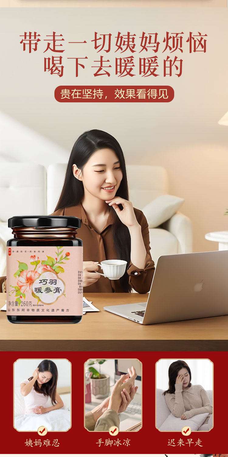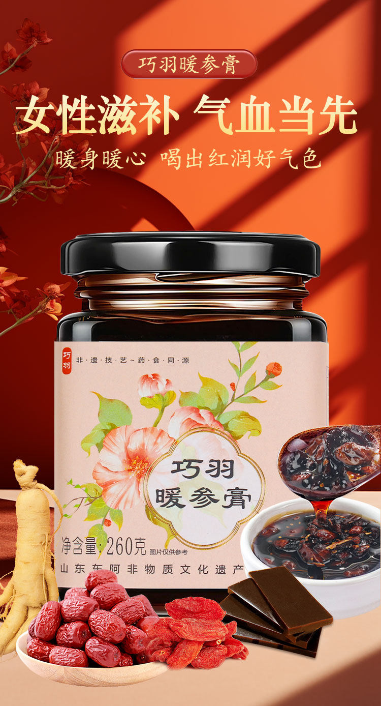 巧羽阿胶姜枣暖参膏旗舰店补气养血养颜暖身驱寒安神正品旗舰店