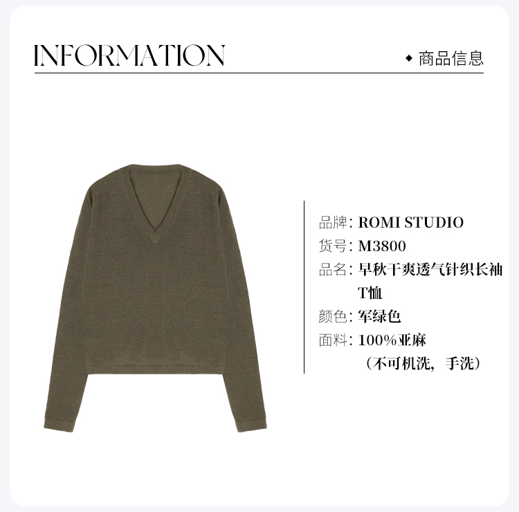 ROMI STUDIO“基础灵魂” 100%亚麻腔调穿搭透气针织长袖t恤 M3800