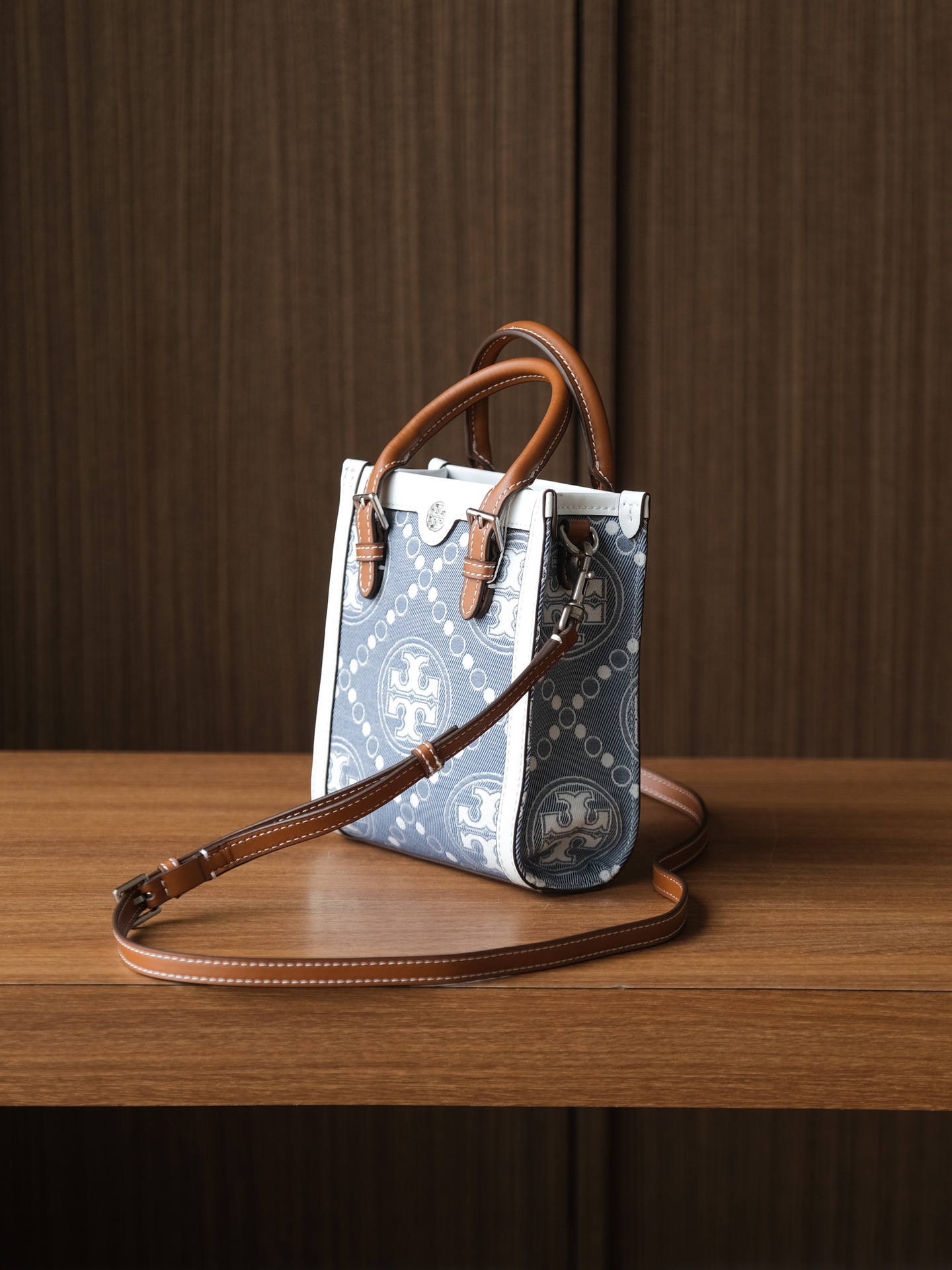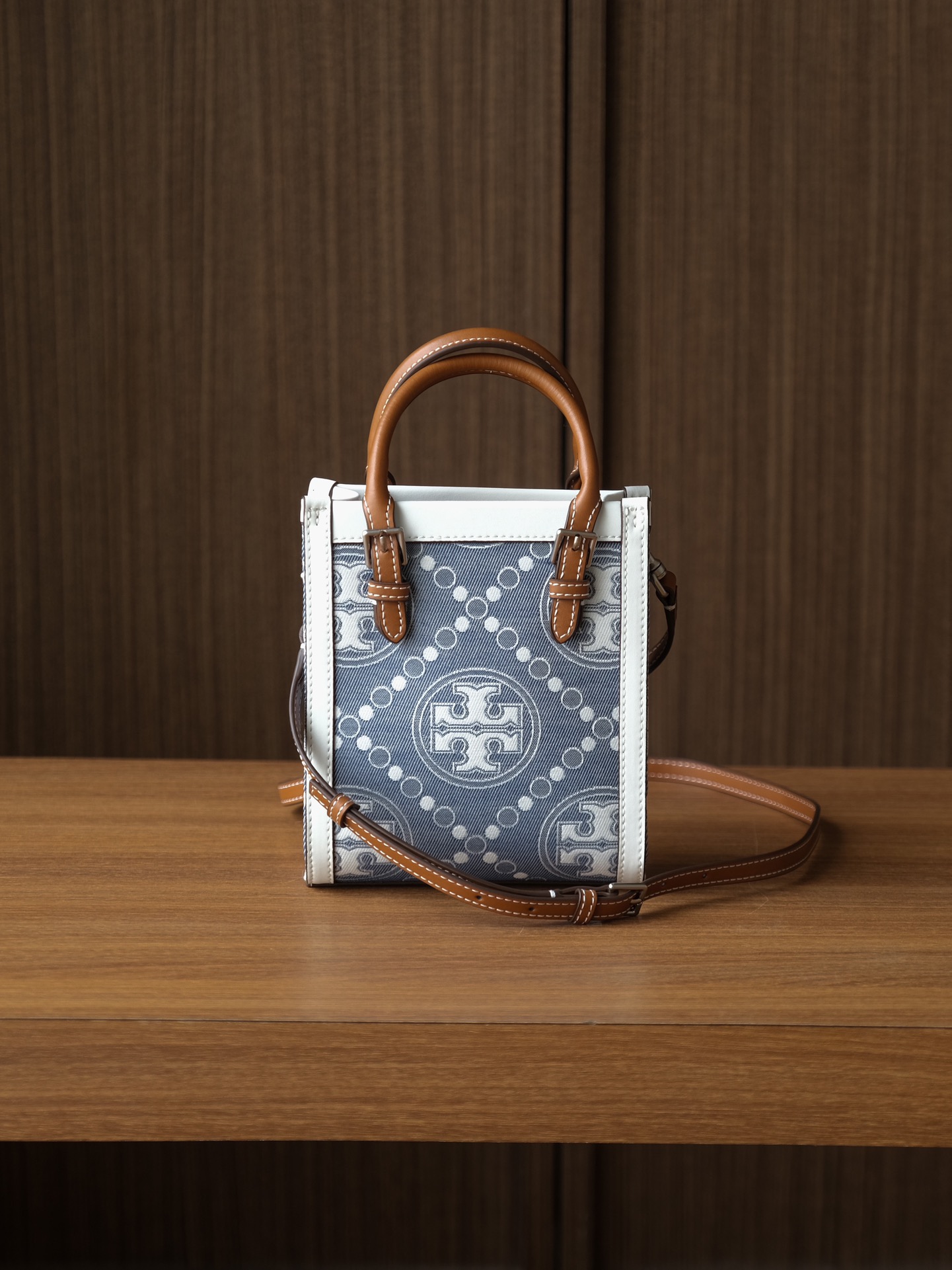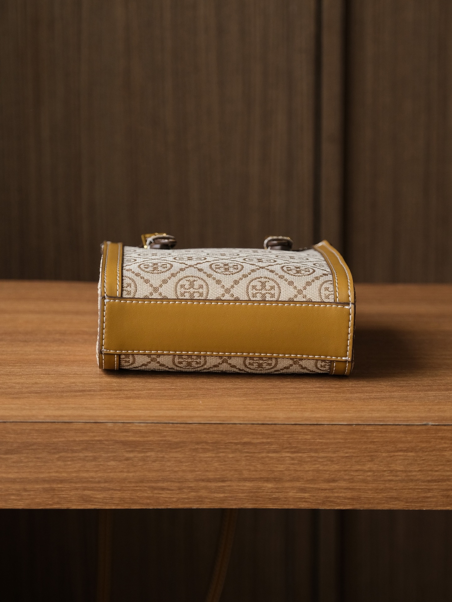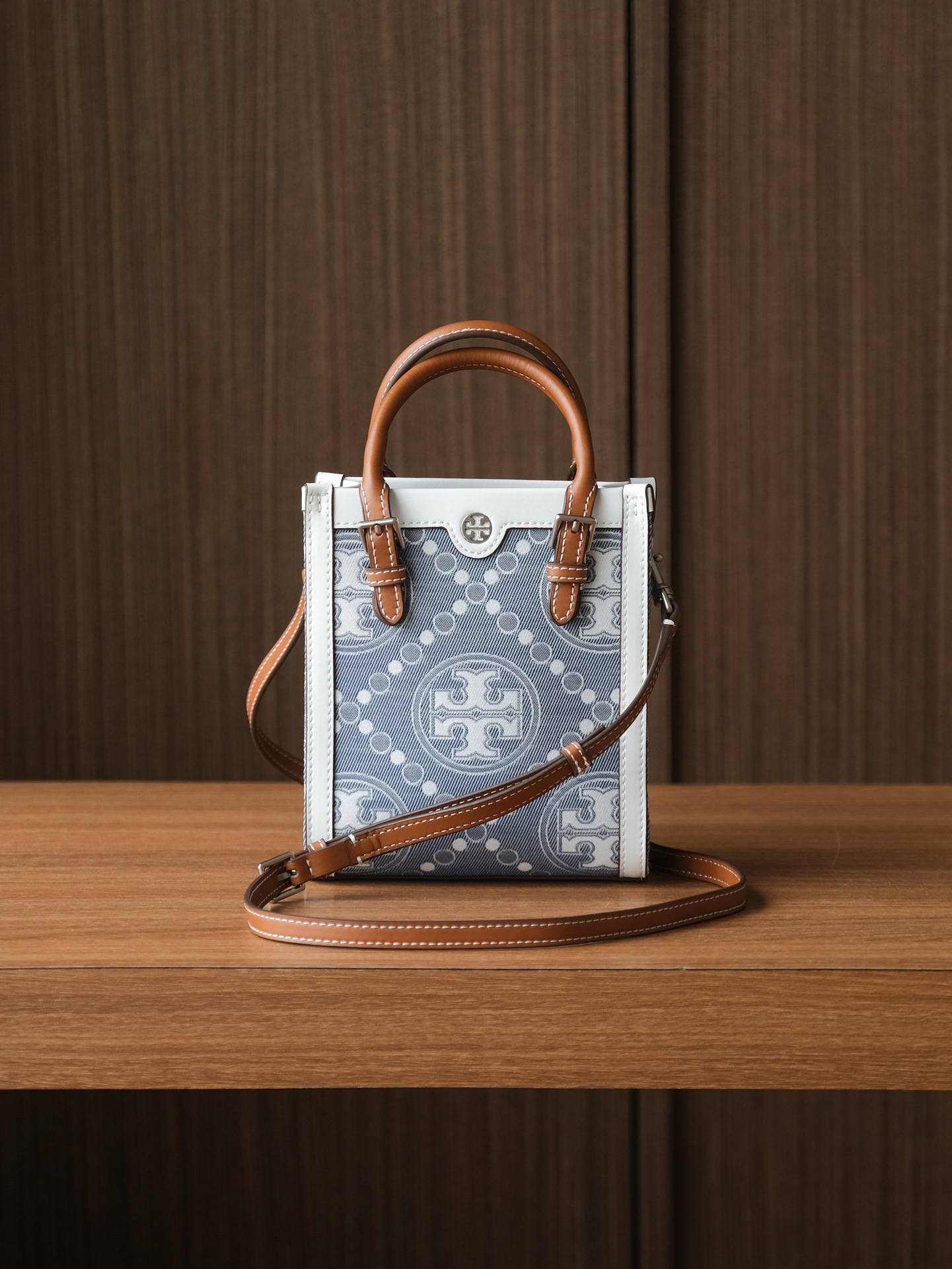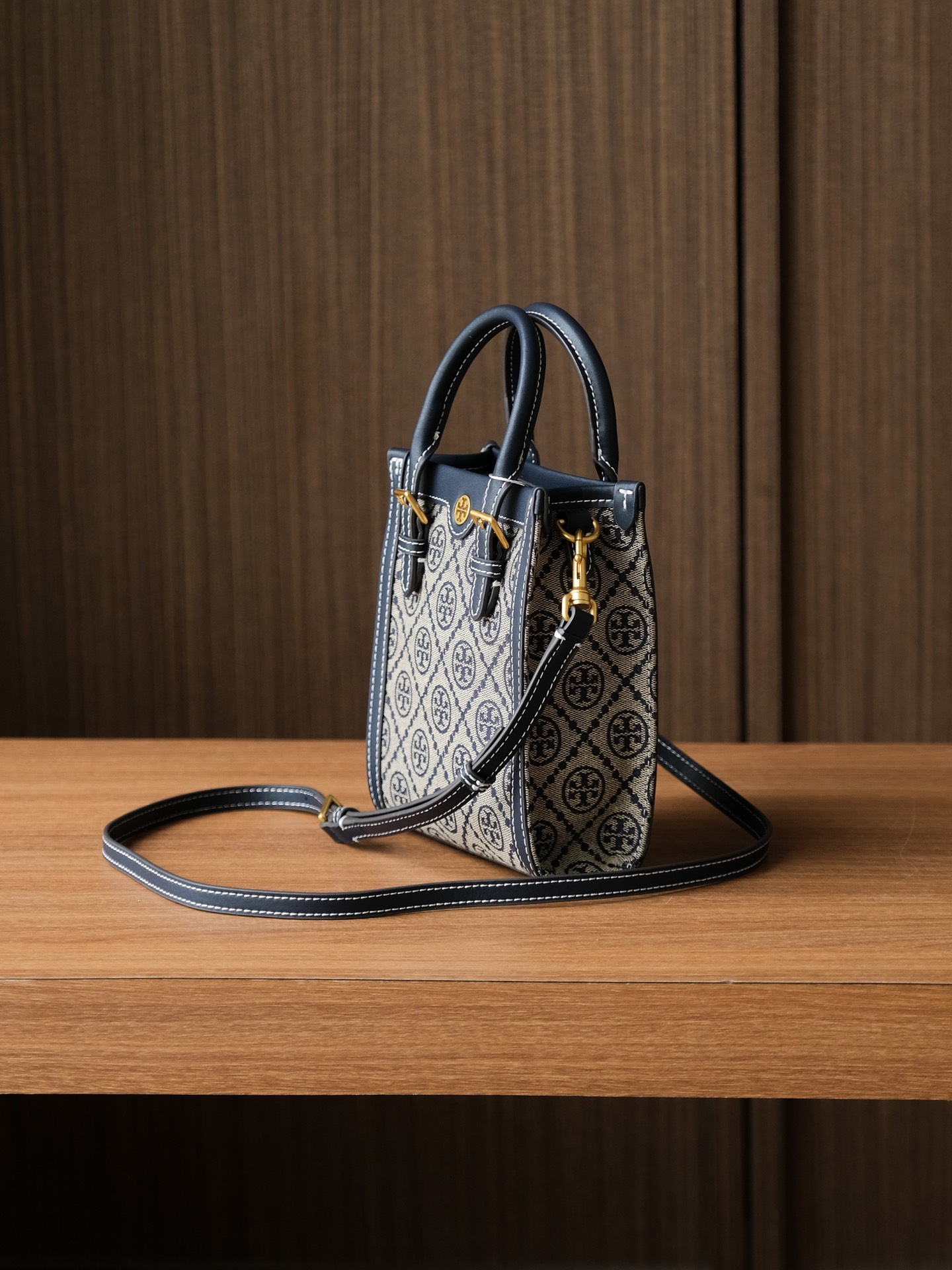 纯原 TORY BURCH T MONOGRAM JACQUARD MINI N/S TOTE秋冬新款竖版复古风托特包