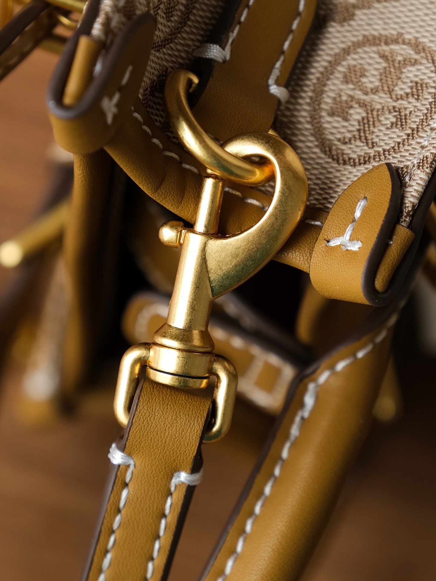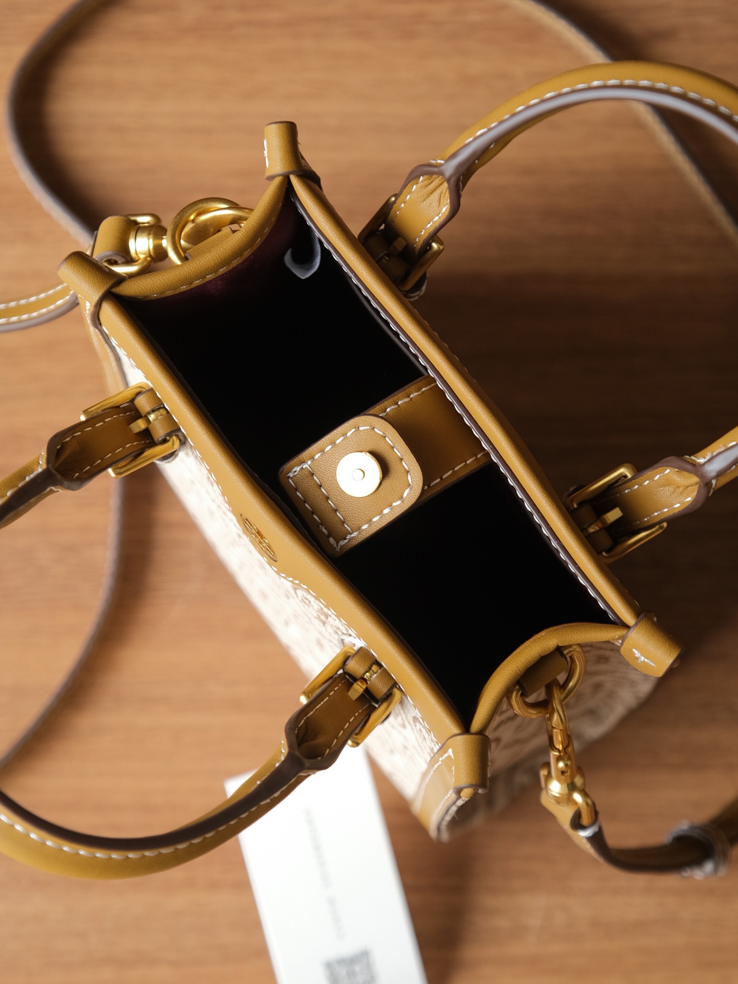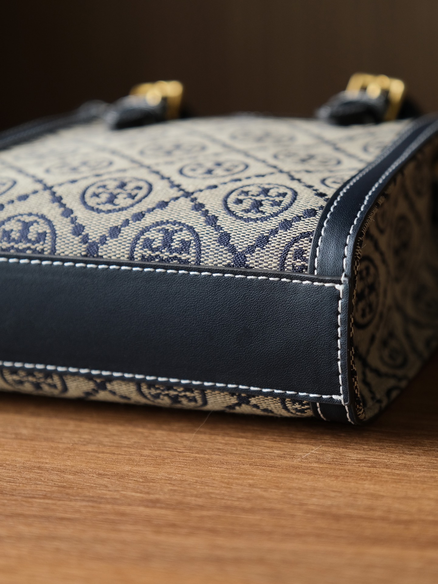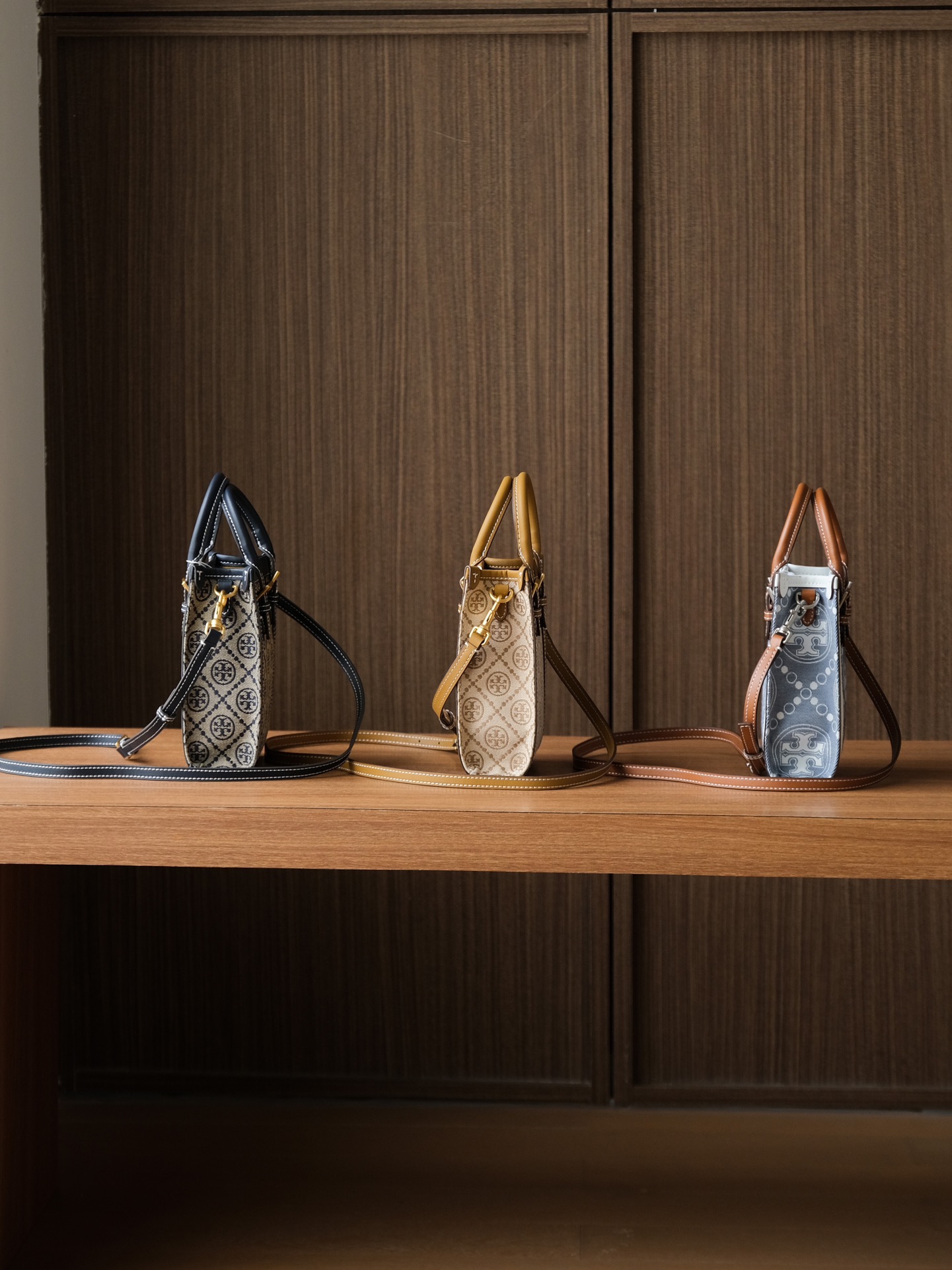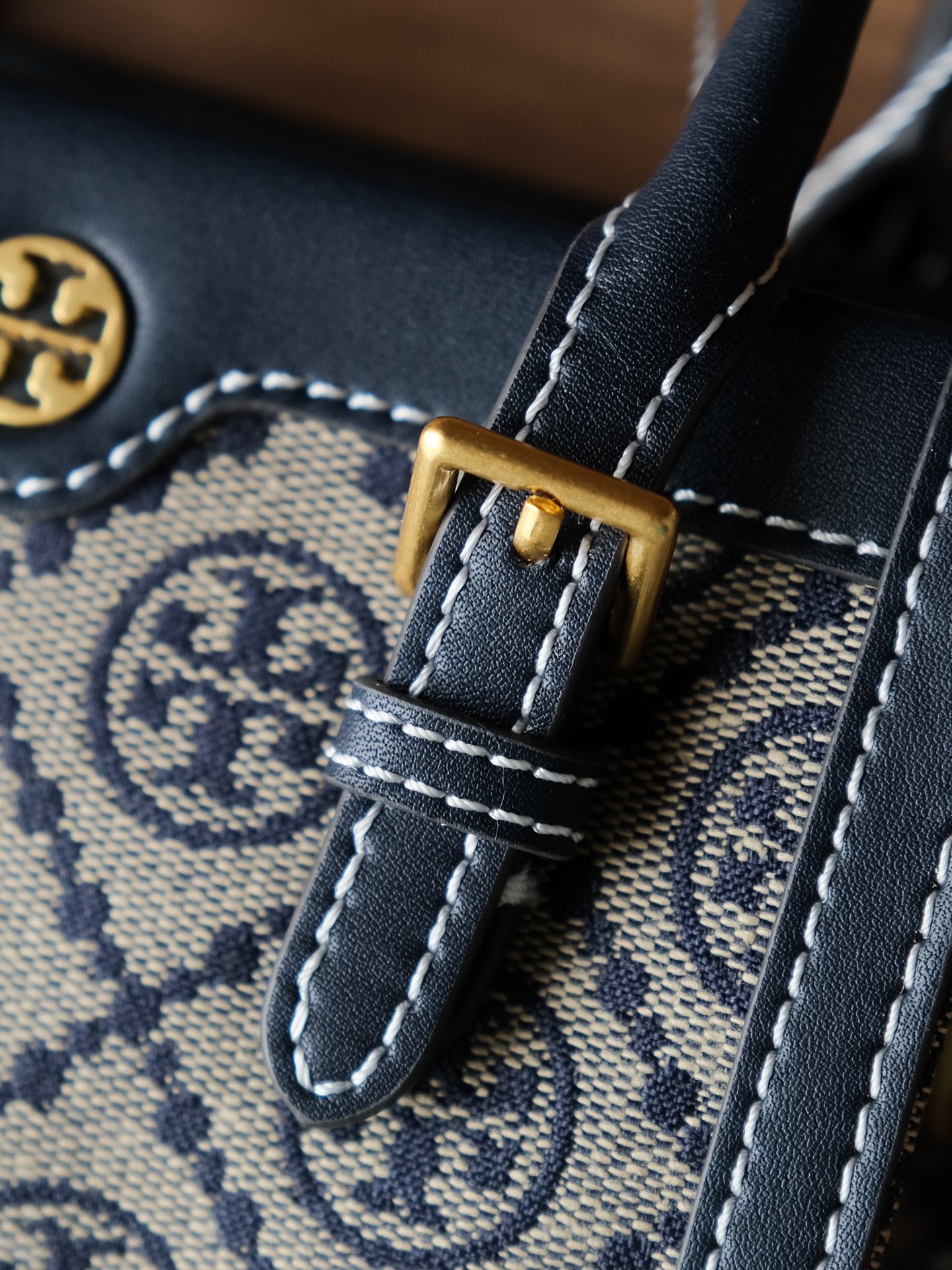 纯原 TORY BURCH T MONOGRAM JACQUARD MINI N/S TOTE秋冬新款竖版复古风托特包