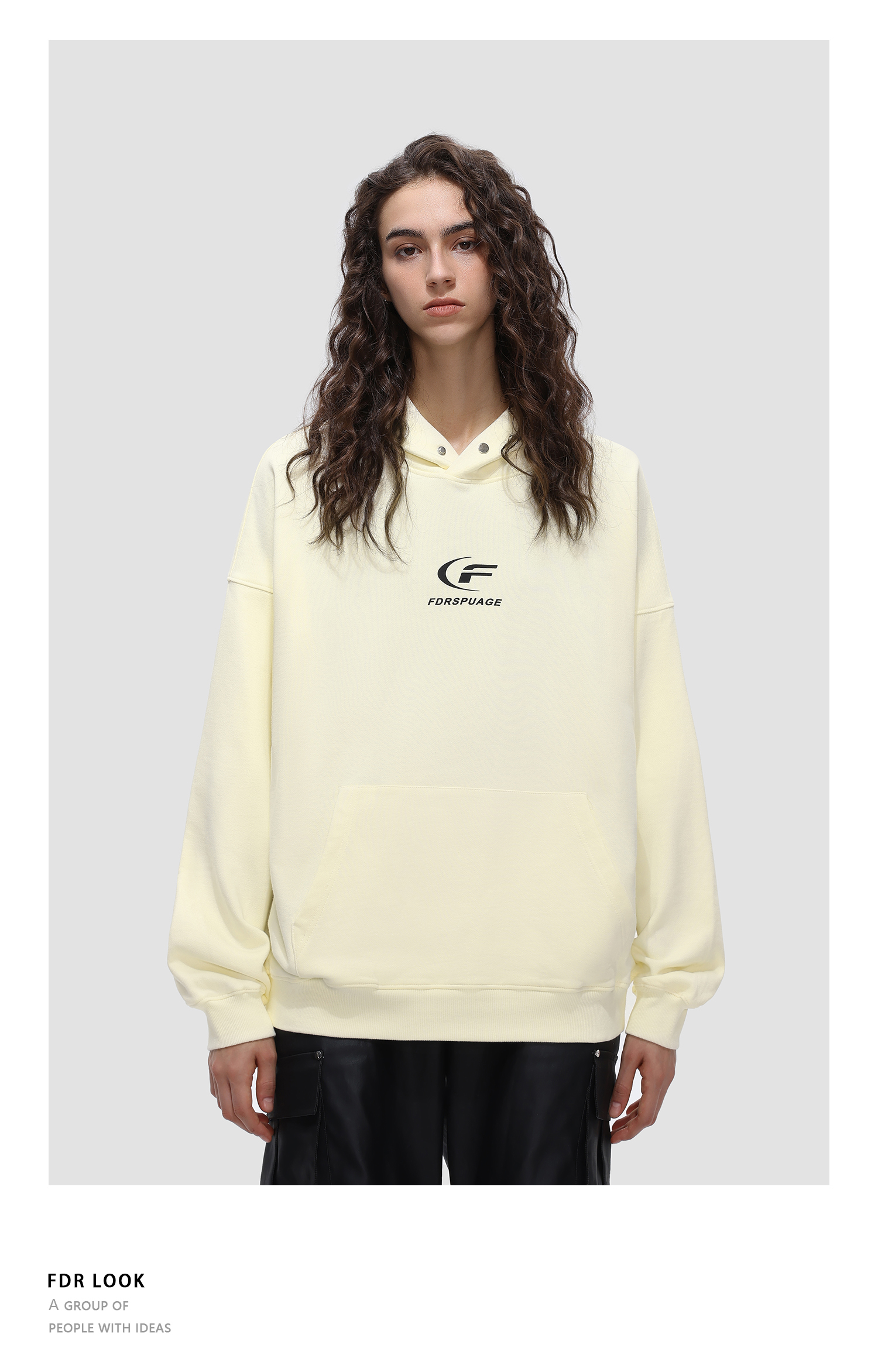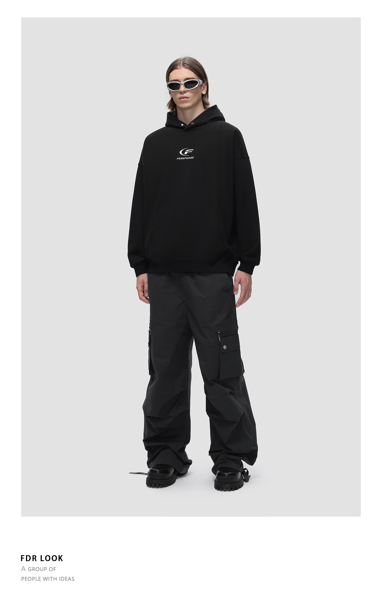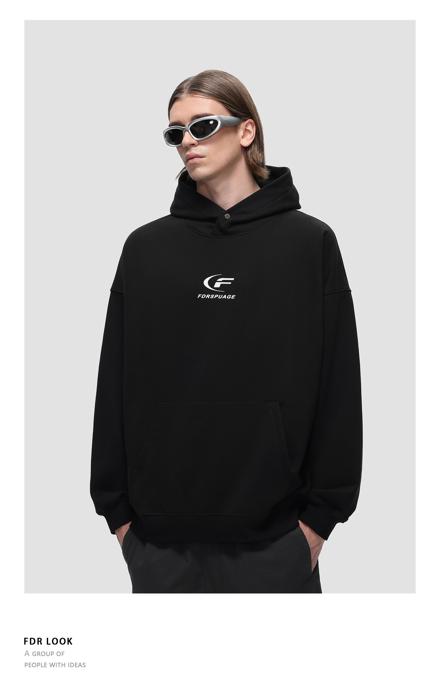 FDR官方店 跑道d字绣花运动宽松连帽卫衣男女秋季情侣装帽衫上衣