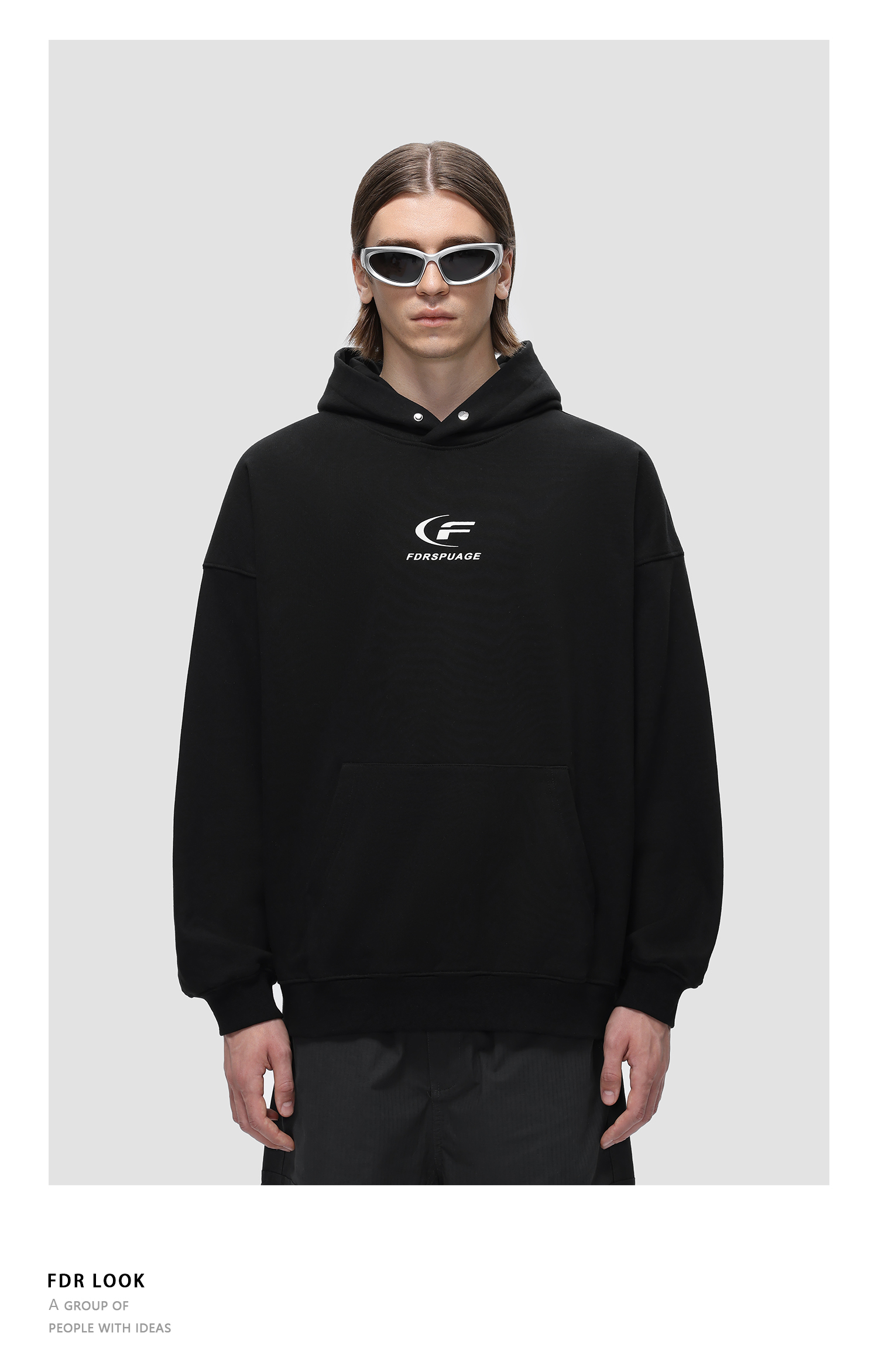 FDR 原创国潮月牙印花重磅连帽卫衣男女春秋美式情侣宽松上衣帽衫