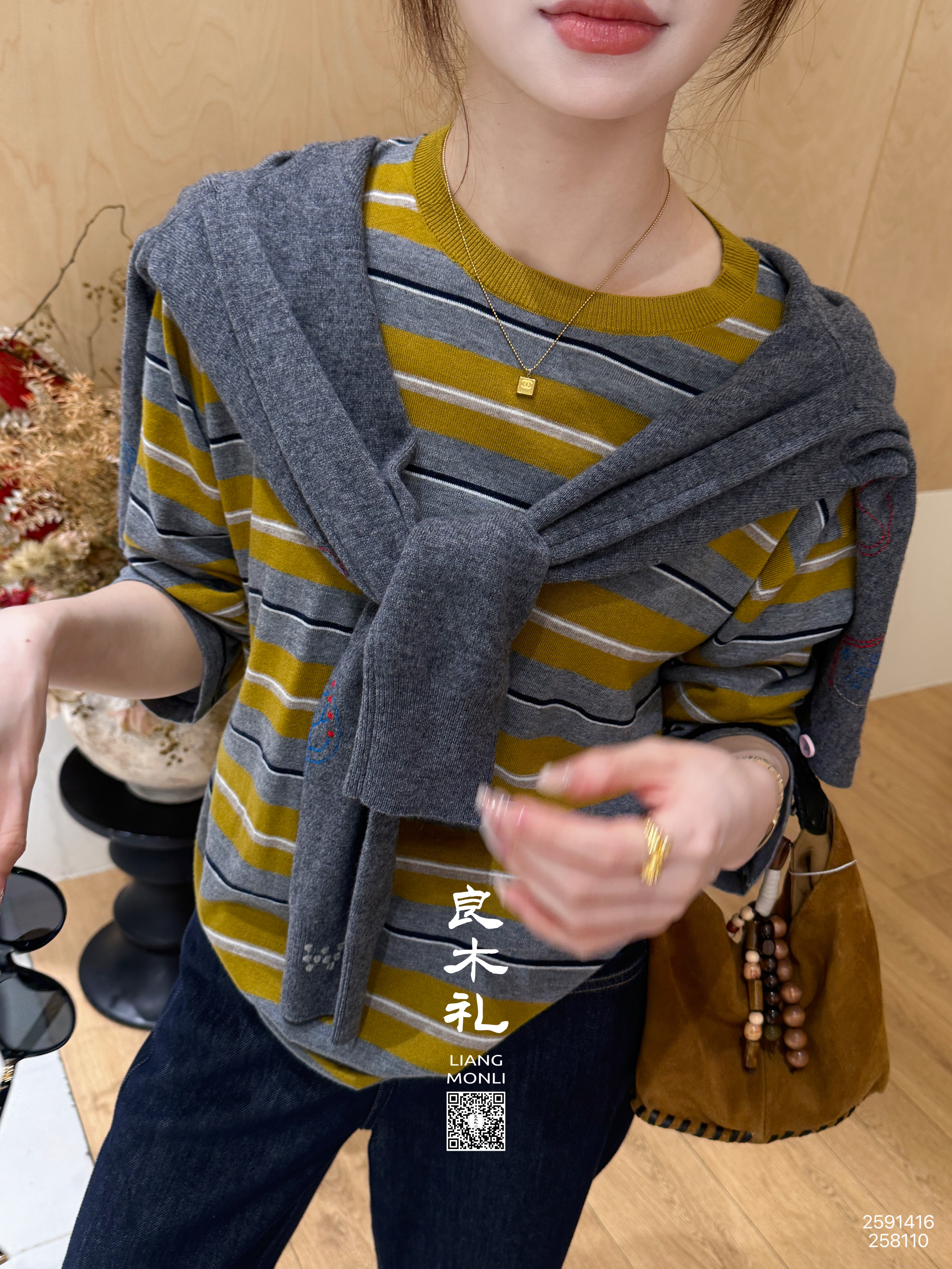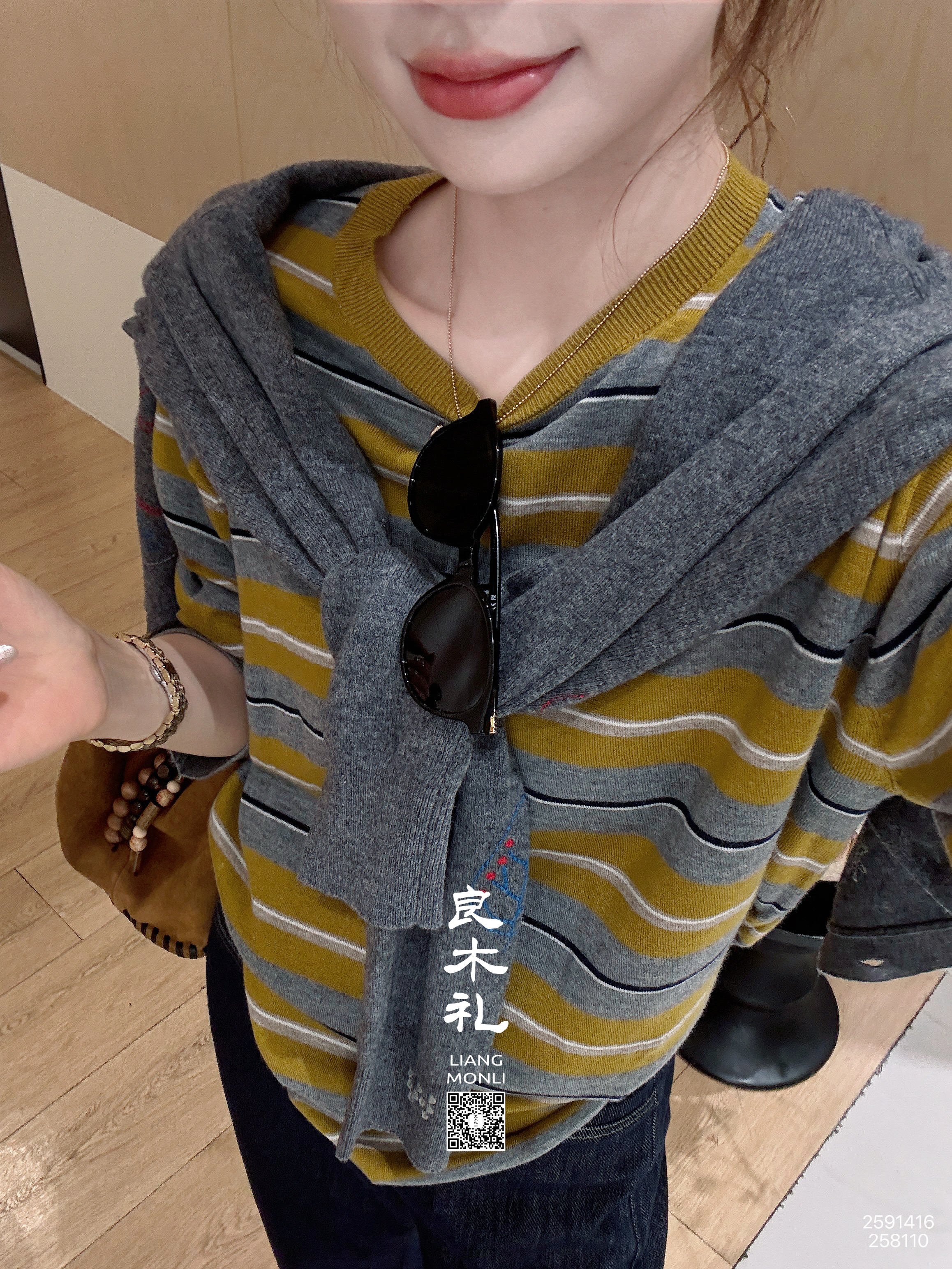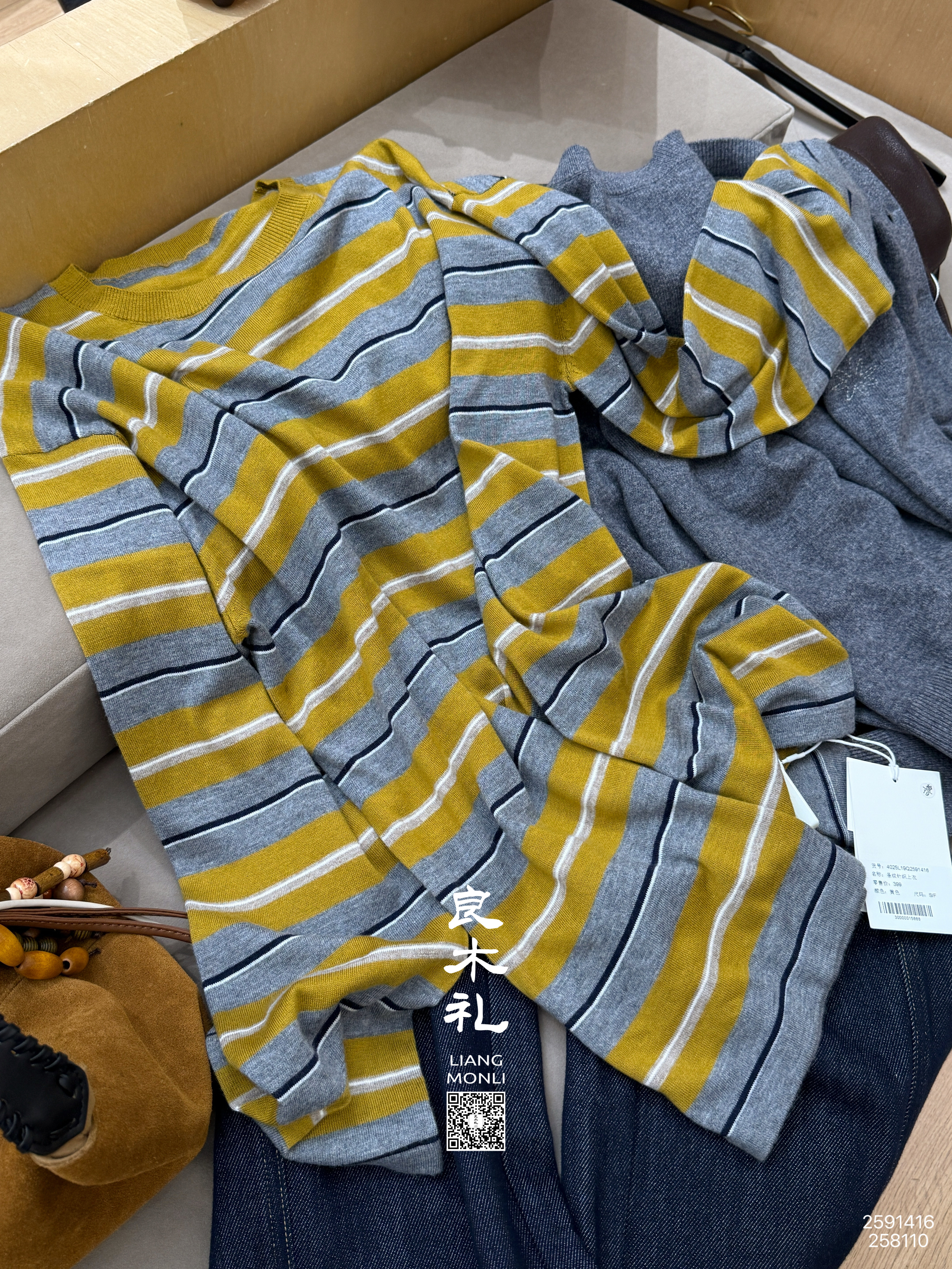 【不退不换】良木礼条纹针织上衣(Q2591416F)