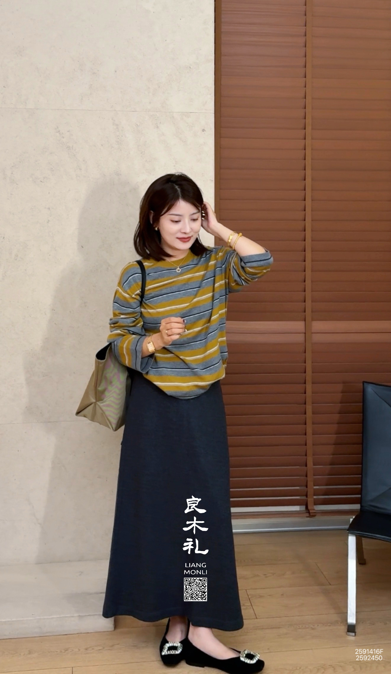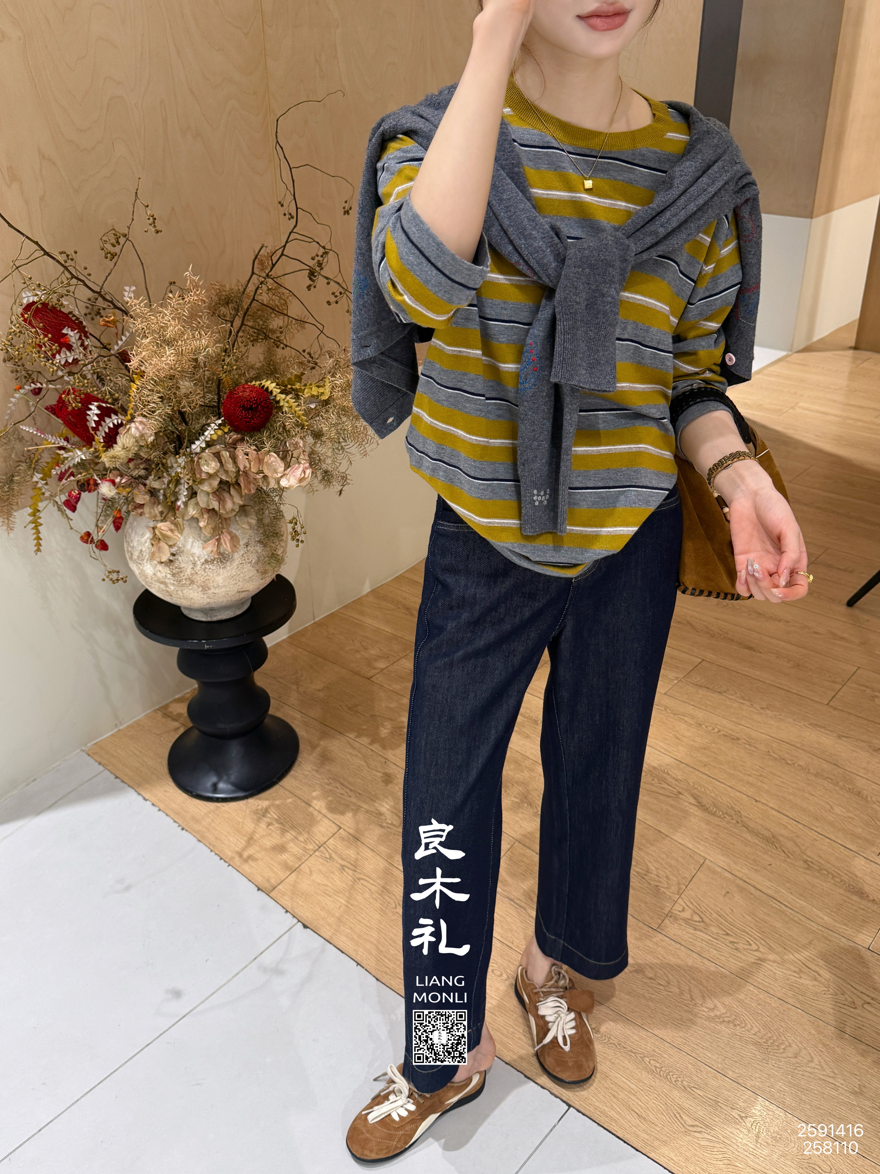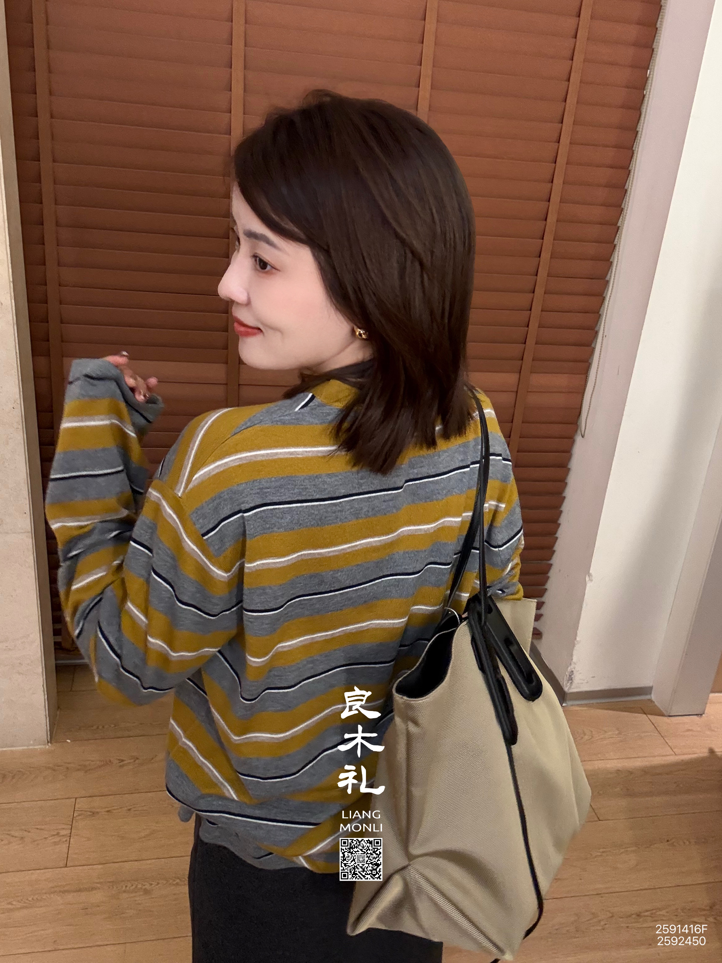 【不退不换】良木礼条纹针织上衣(Q2591416F)