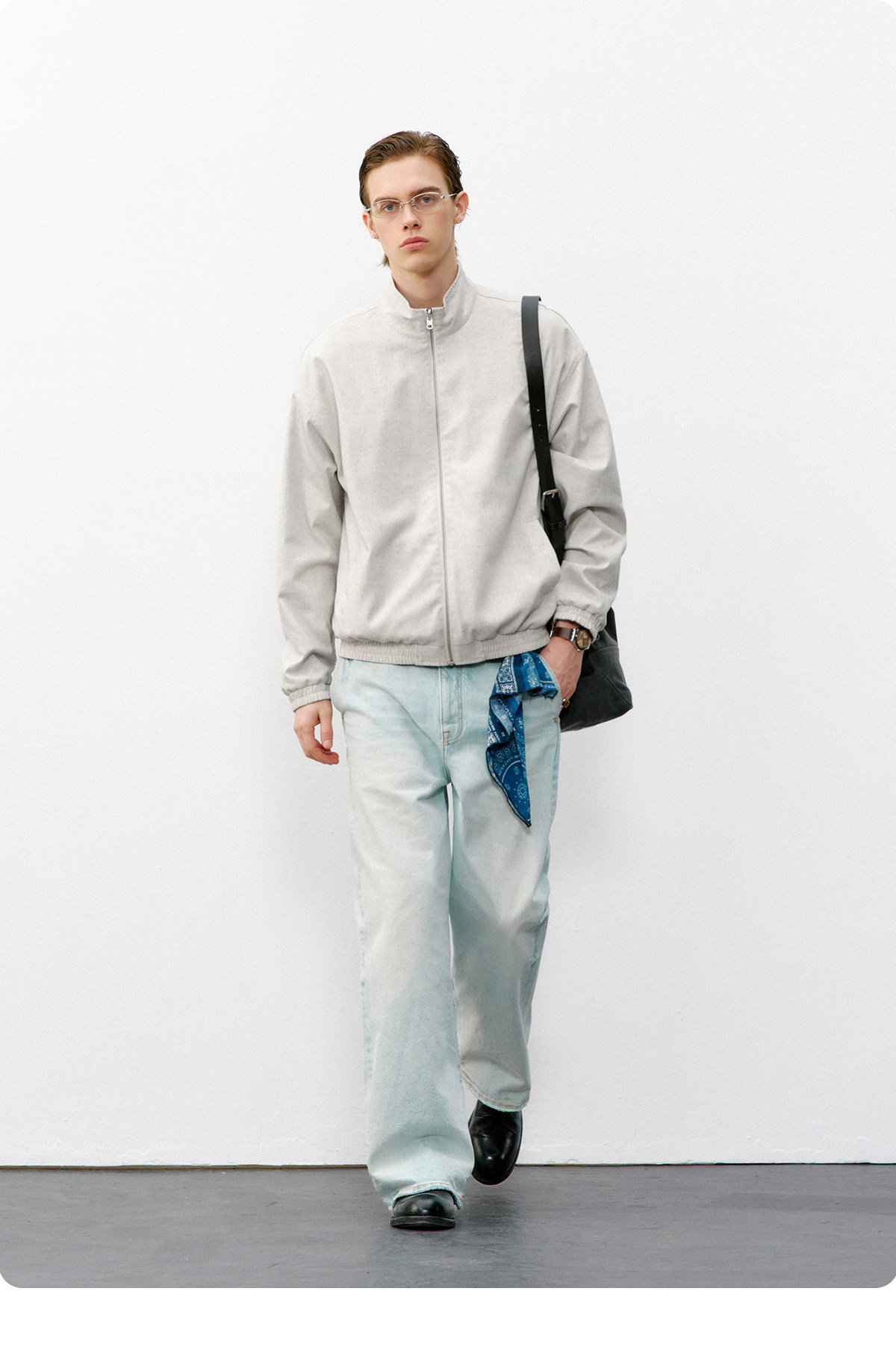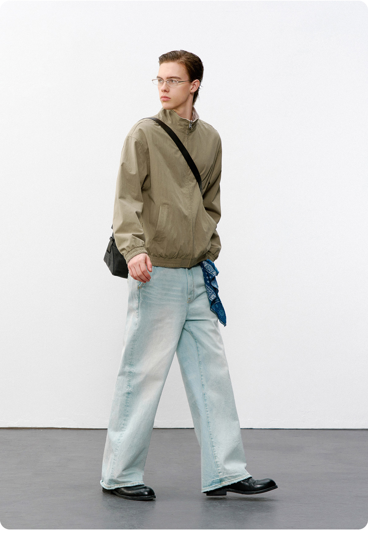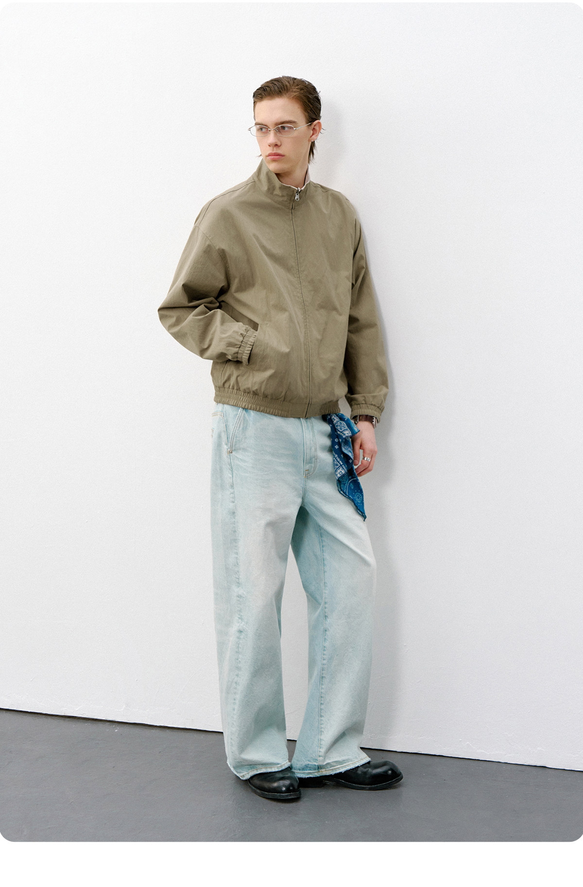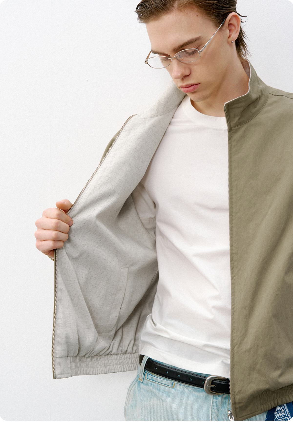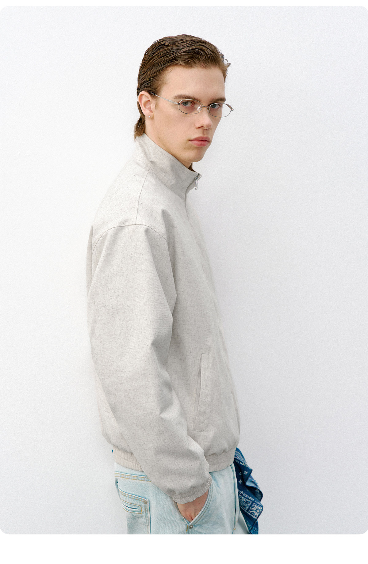 714street复古亚麻混纺立领夹克2026春季潮牌宽松两面穿外套男款