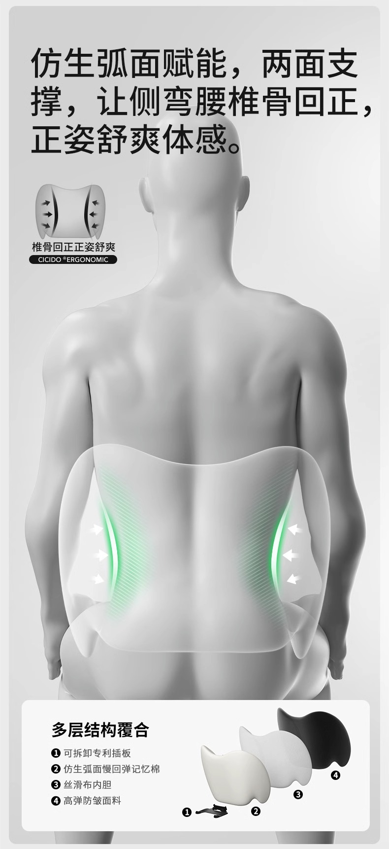 🔺符合人体工学设计 紧紧贴合颈部/腰部!健康护脊护颈
