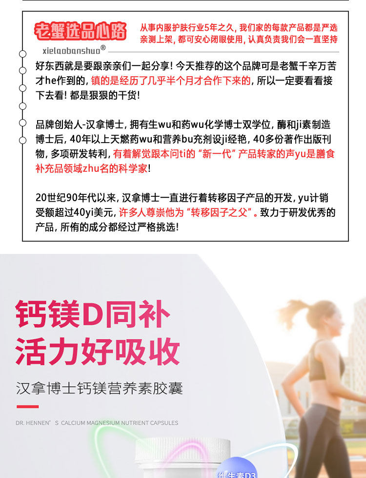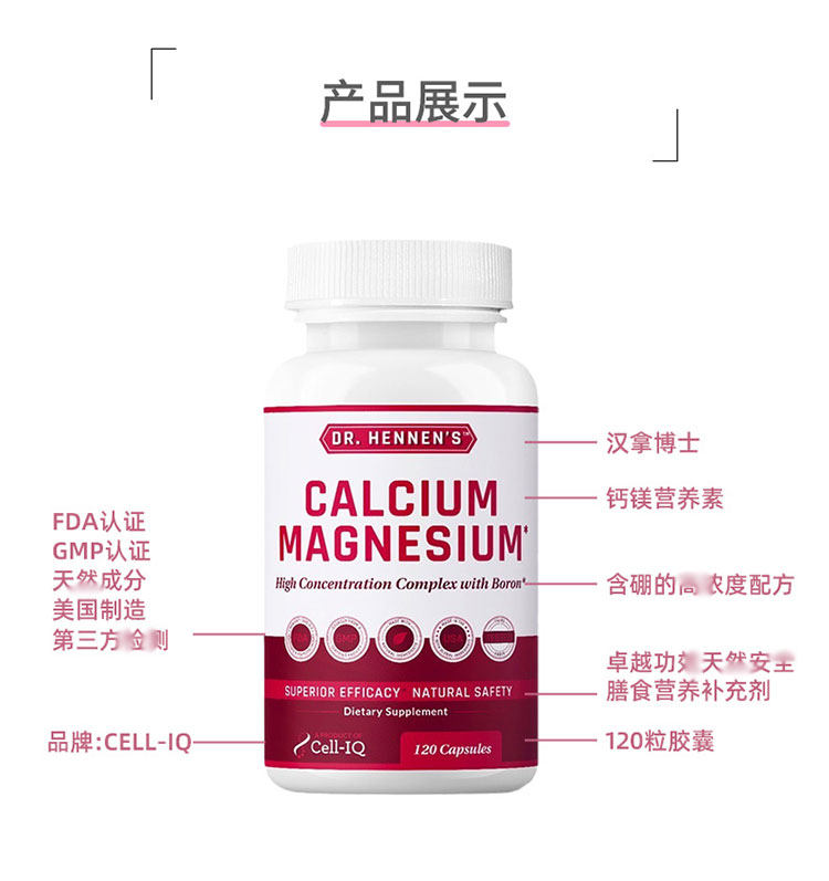 1V1咨询方案美国汉拿博士钙镁胶囊营养素补钙强健身体Cell-IQ