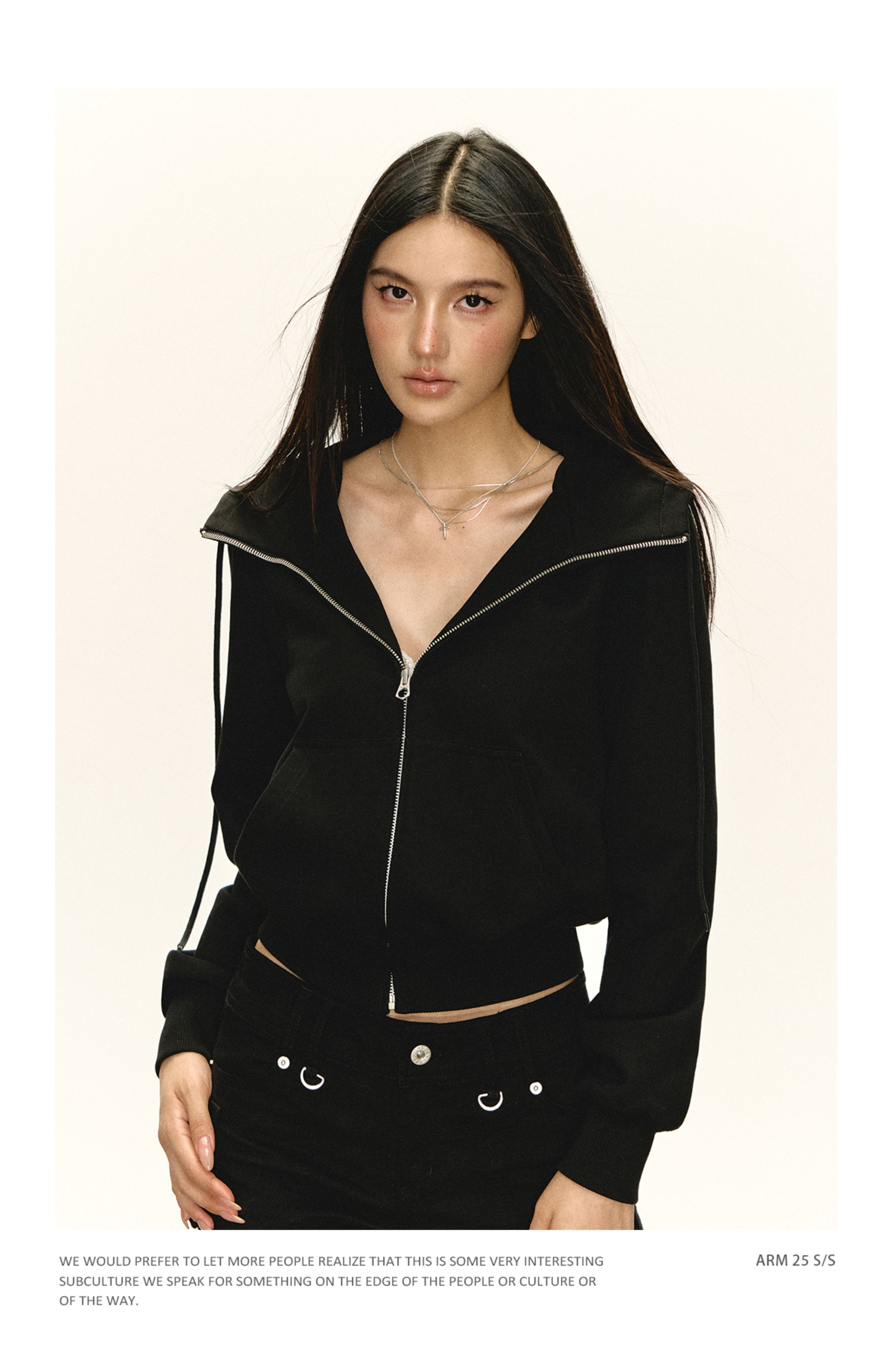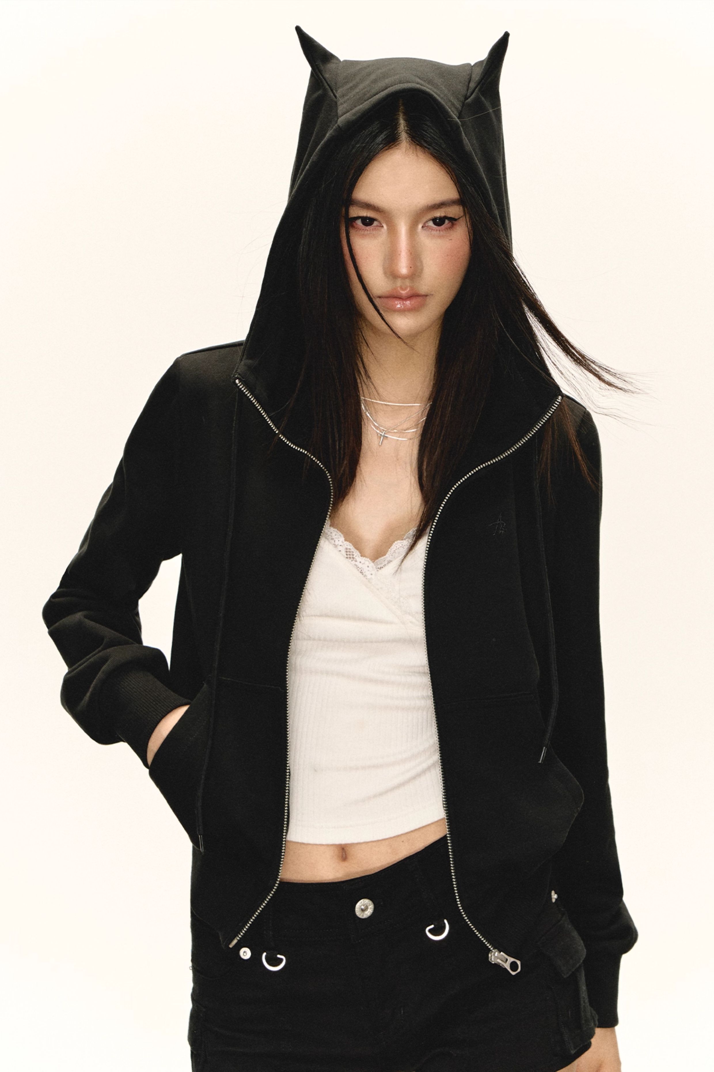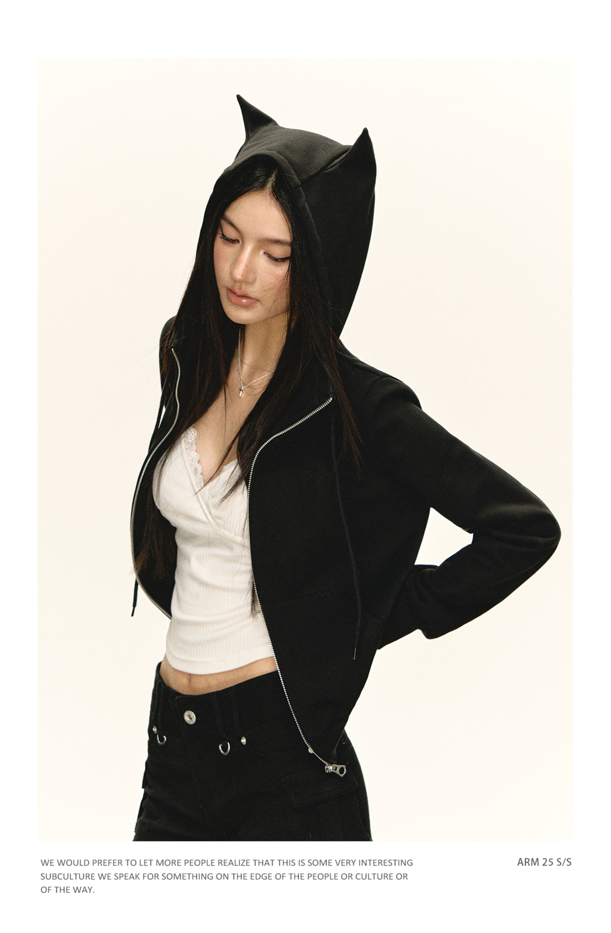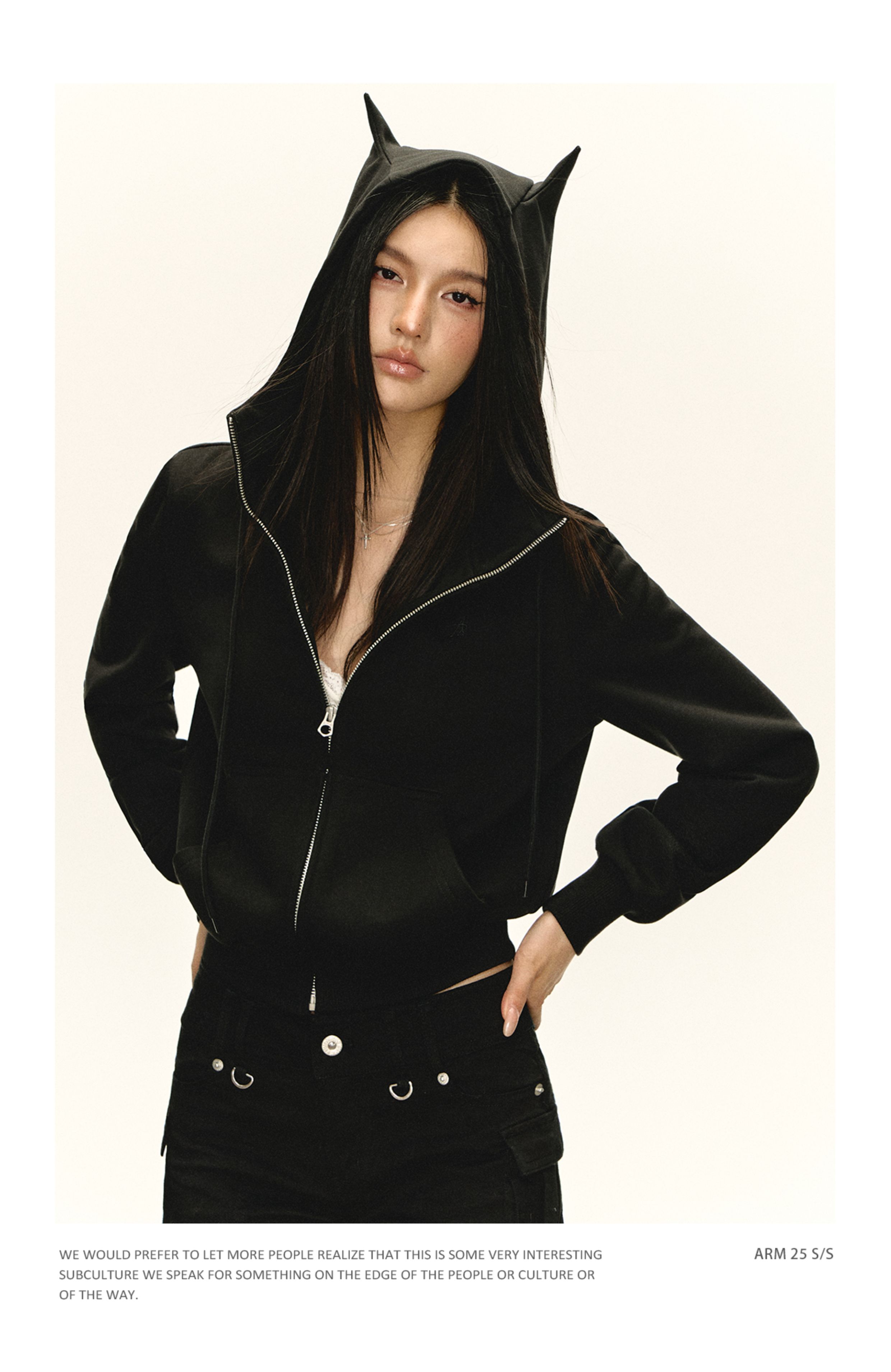 Ariseism 美式复古黑色修狗耳朵外套女秋季新款上衣