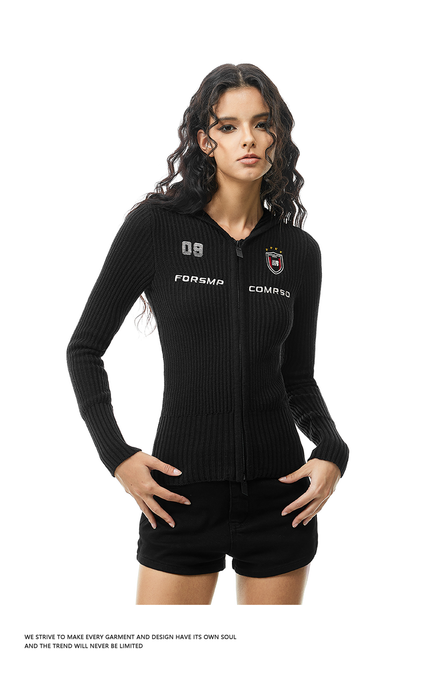 FDR官方店 辣妹修身徽章毛衣女秋季复古运动连帽针织衫开衫上衣
