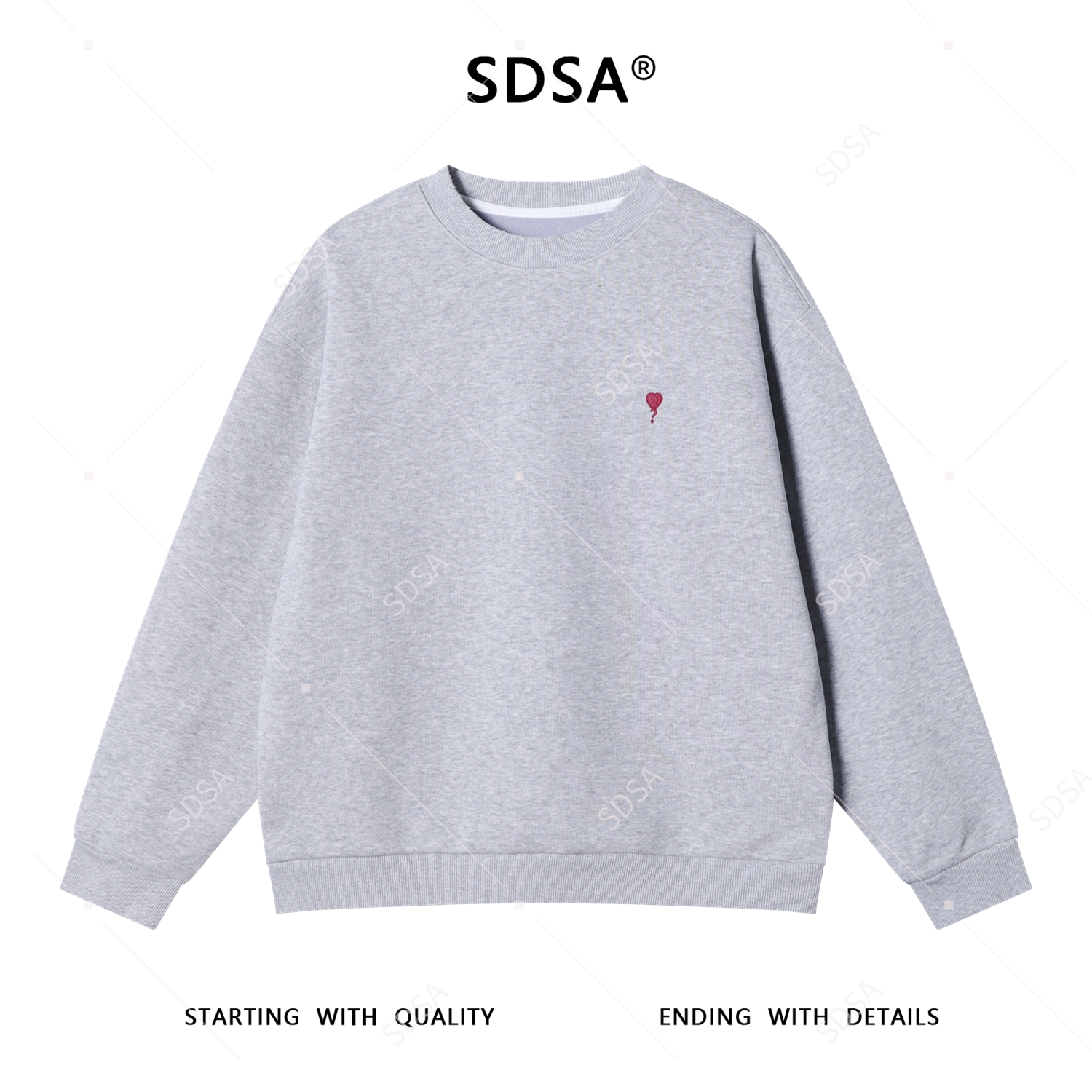 SDSA秋冬新款痞帅男装极简风刺绣爱心圆领卫衣百搭时尚套头上衣