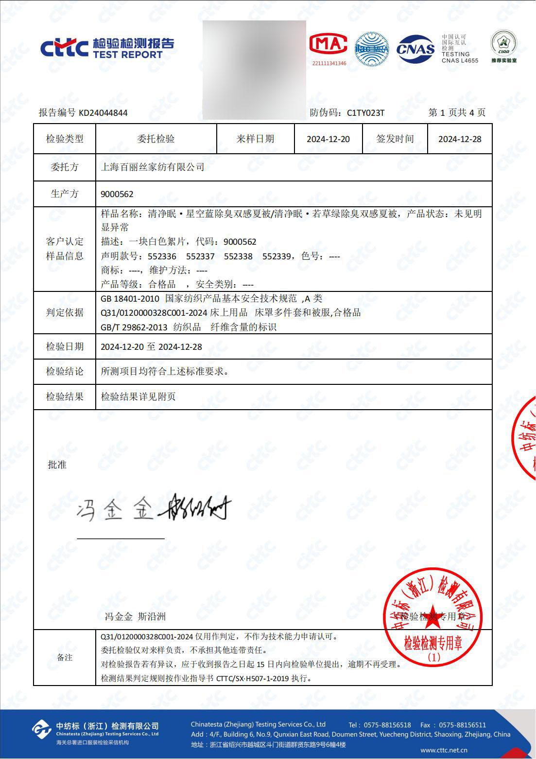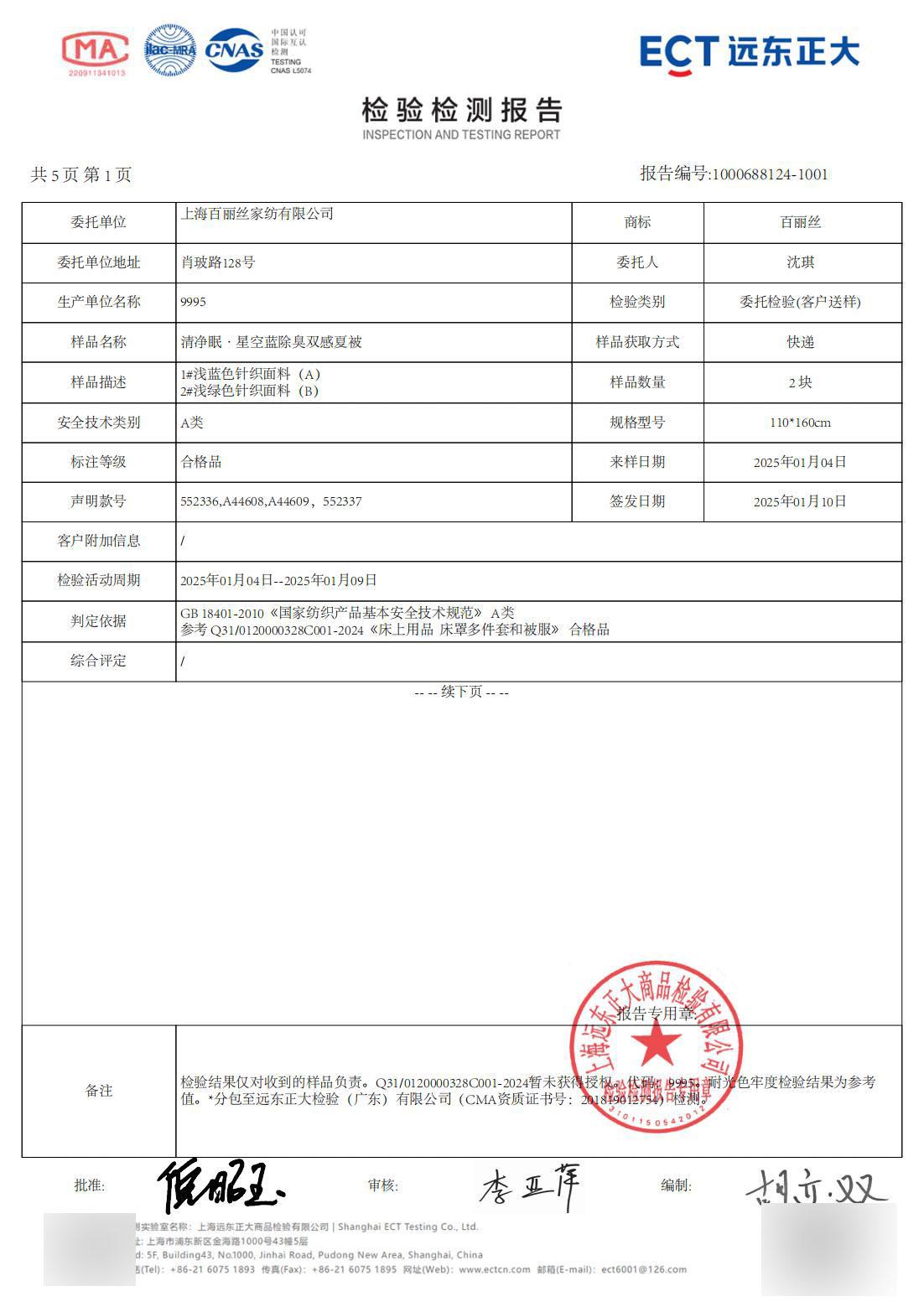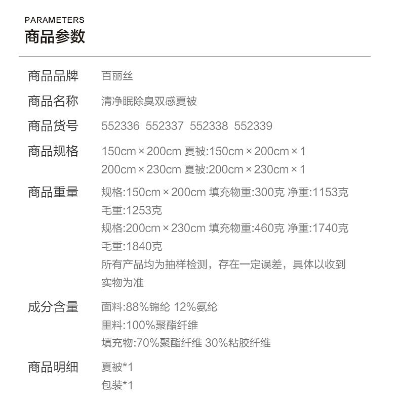 水星家纺 百丽丝家纺 A类柔软顺滑清净眠除臭双感夏被