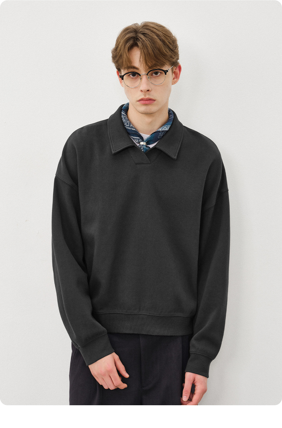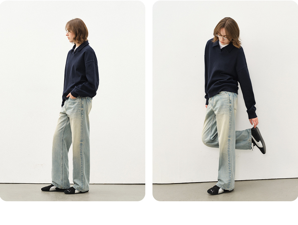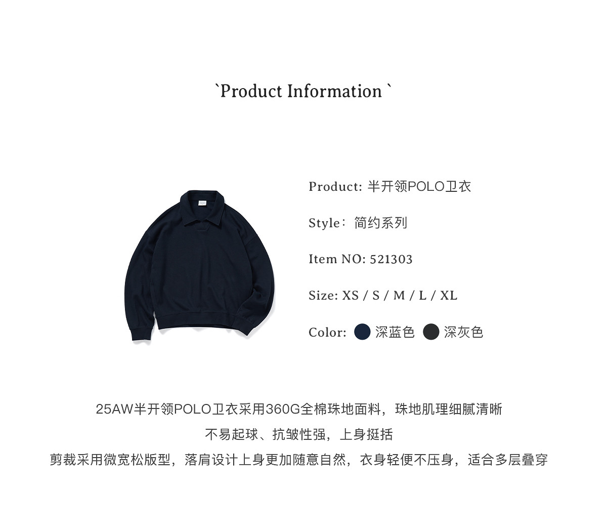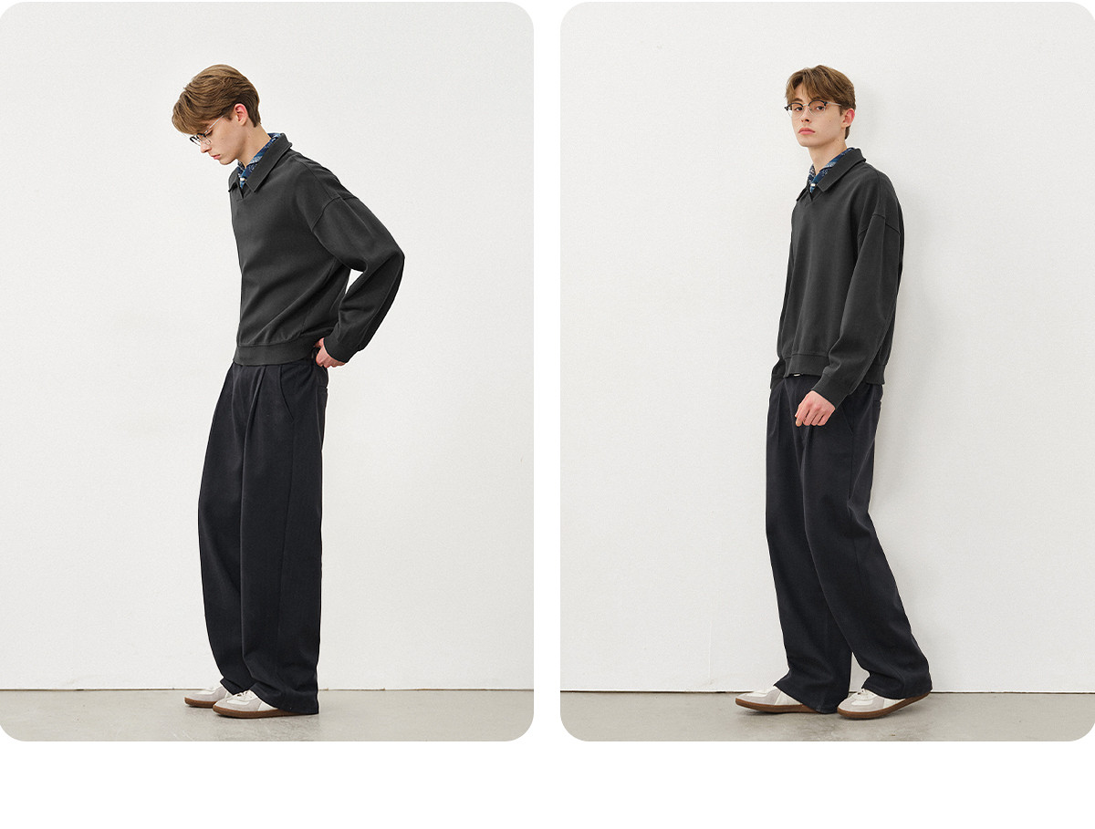 714street微宽松落肩纯棉polo领卫衣男2025秋季潮牌情侣长袖上衣