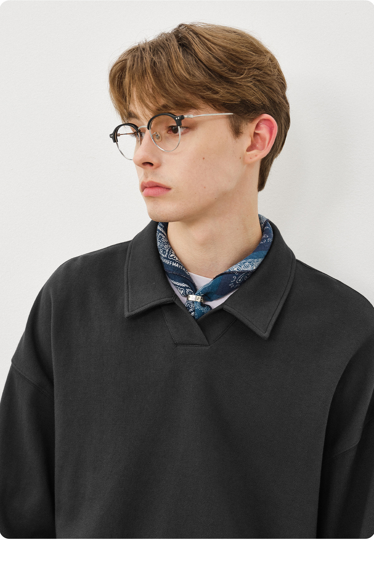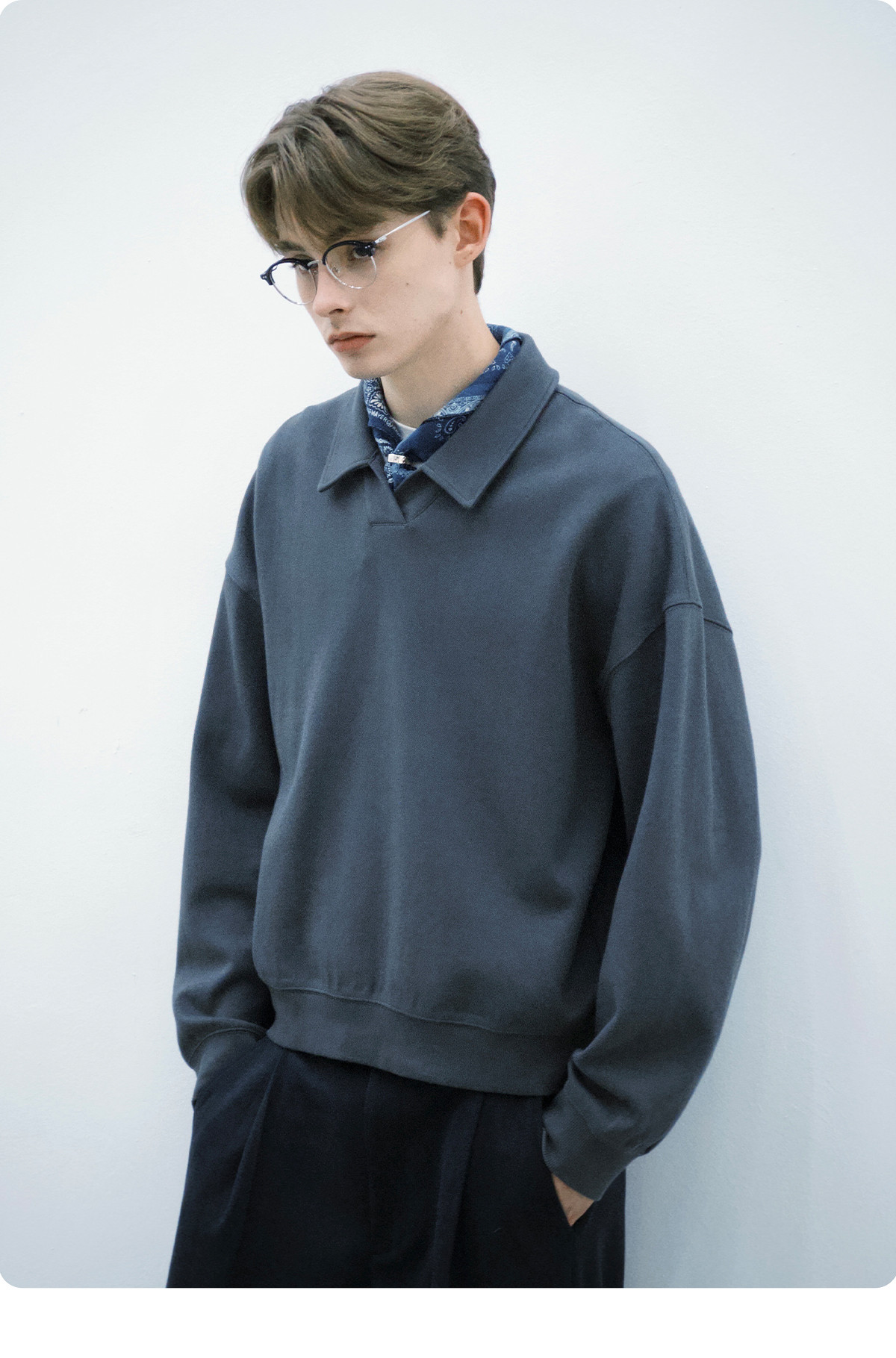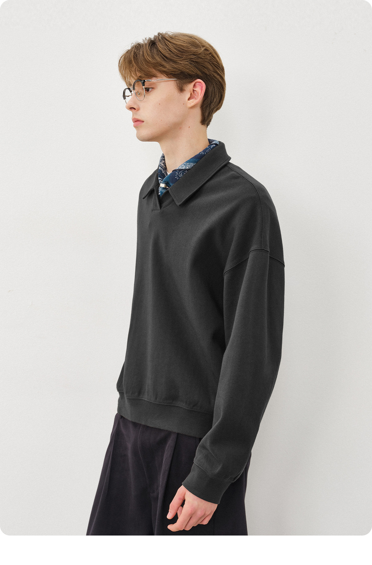 714street微宽松落肩纯棉polo领卫衣男2025秋季潮牌情侣长袖上衣