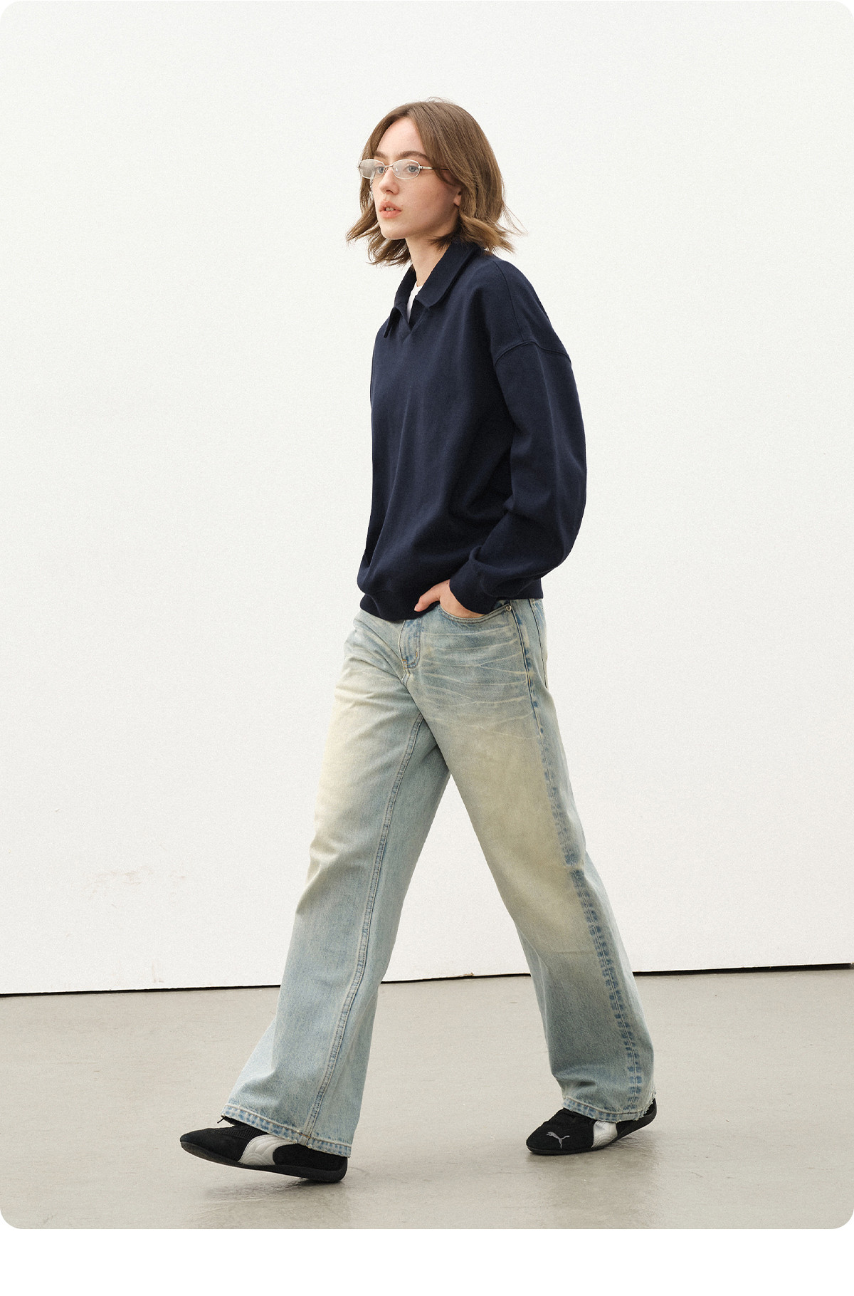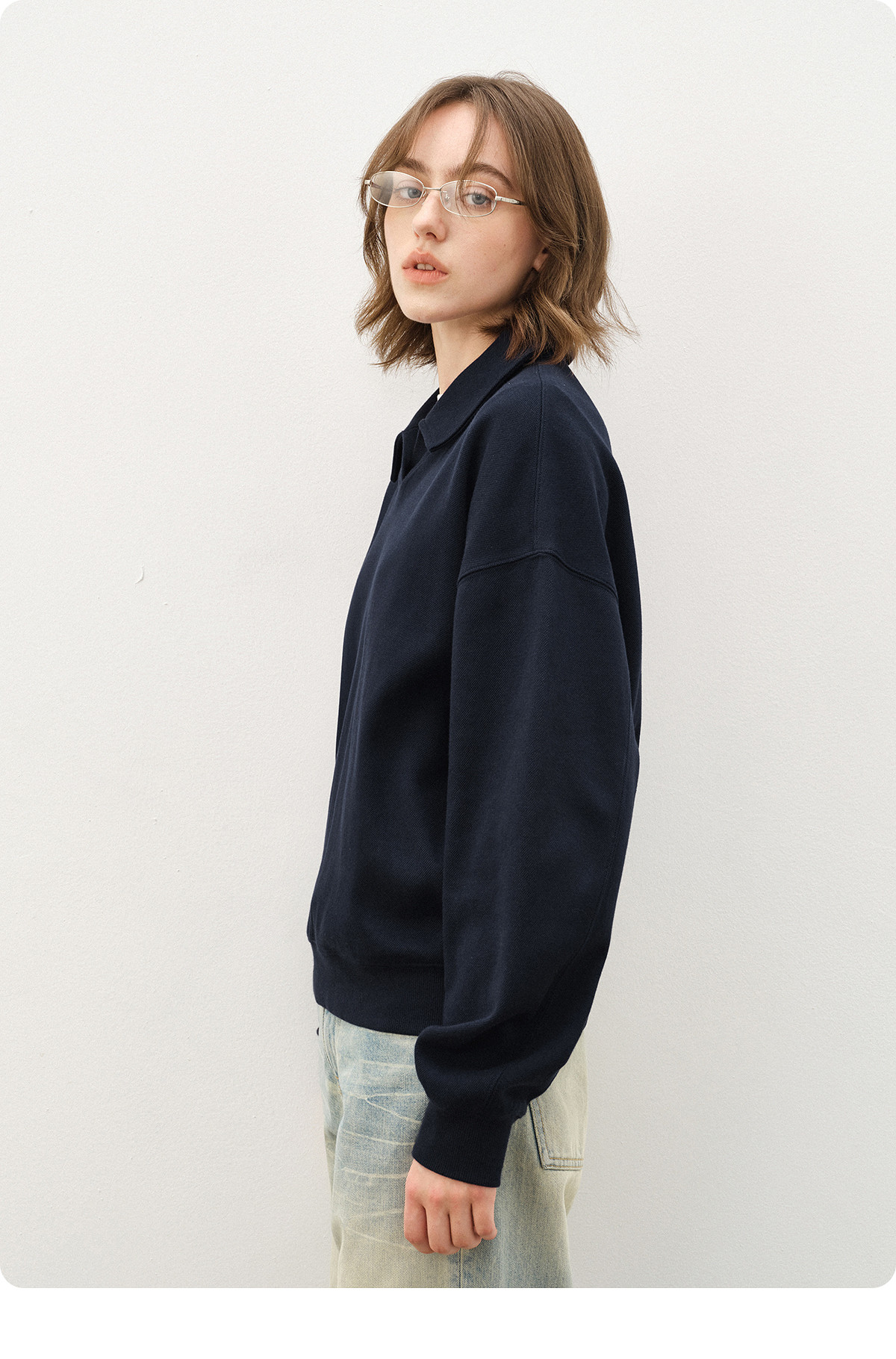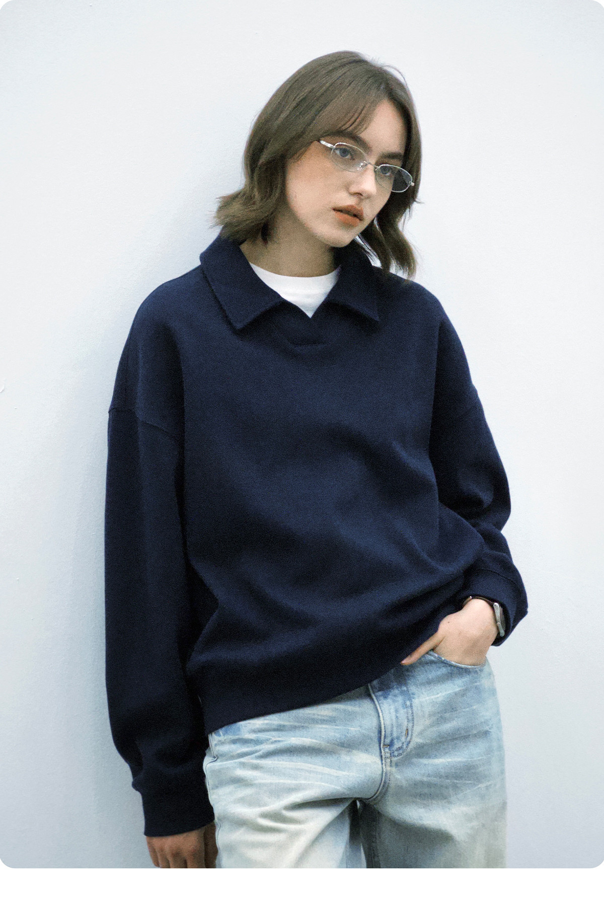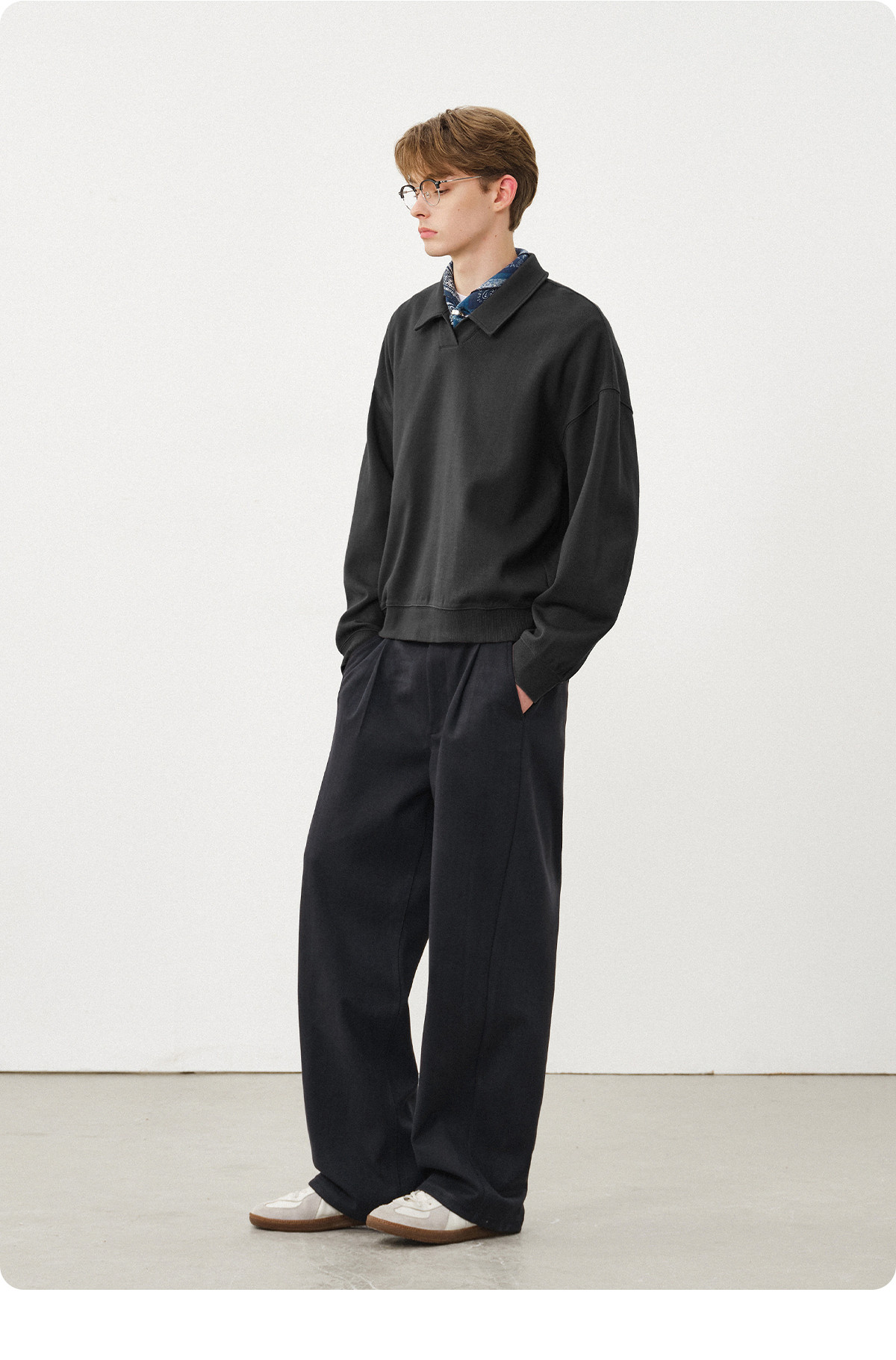 714street微宽松落肩纯棉polo领卫衣男2025秋季潮牌情侣长袖上衣