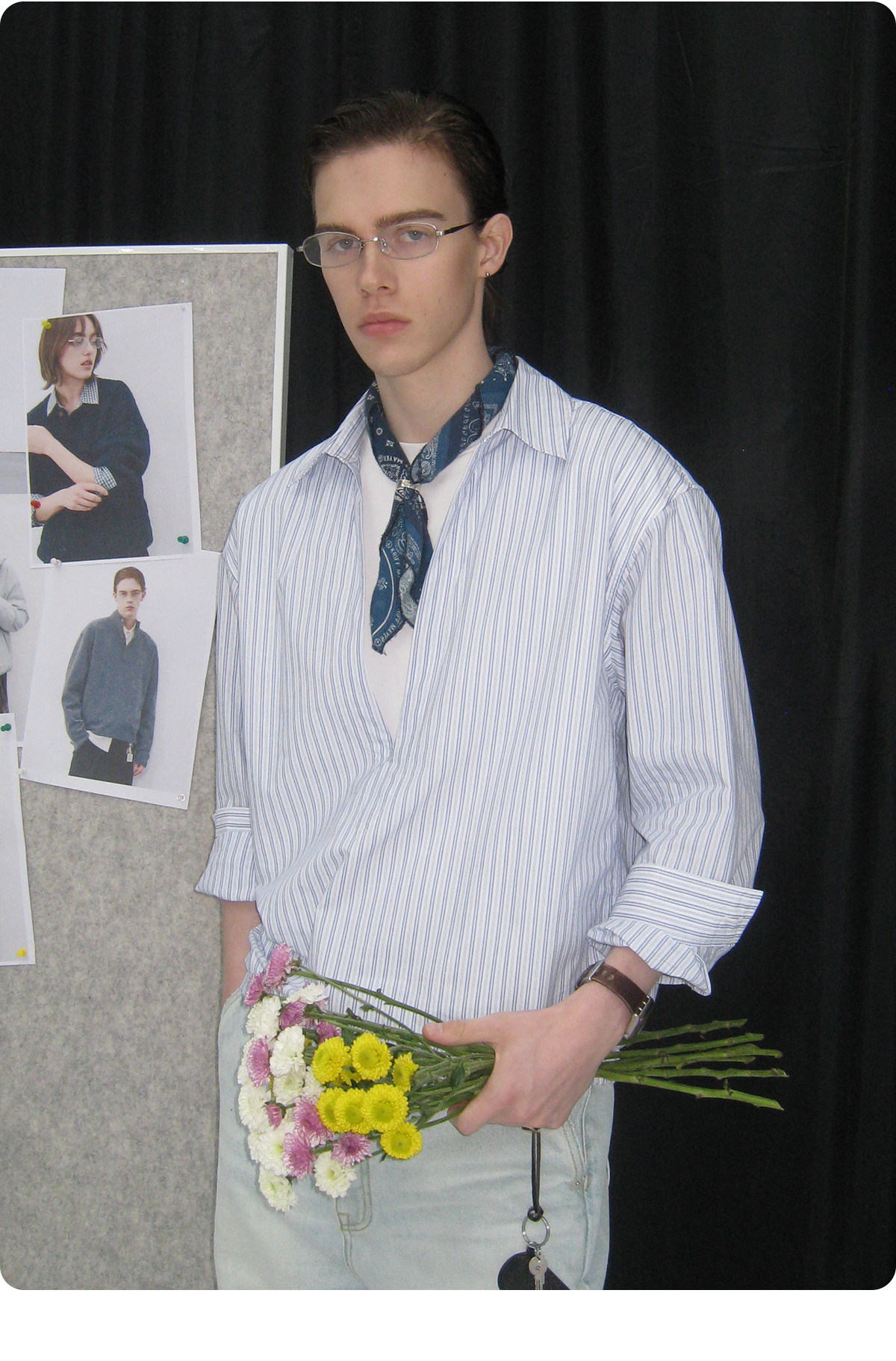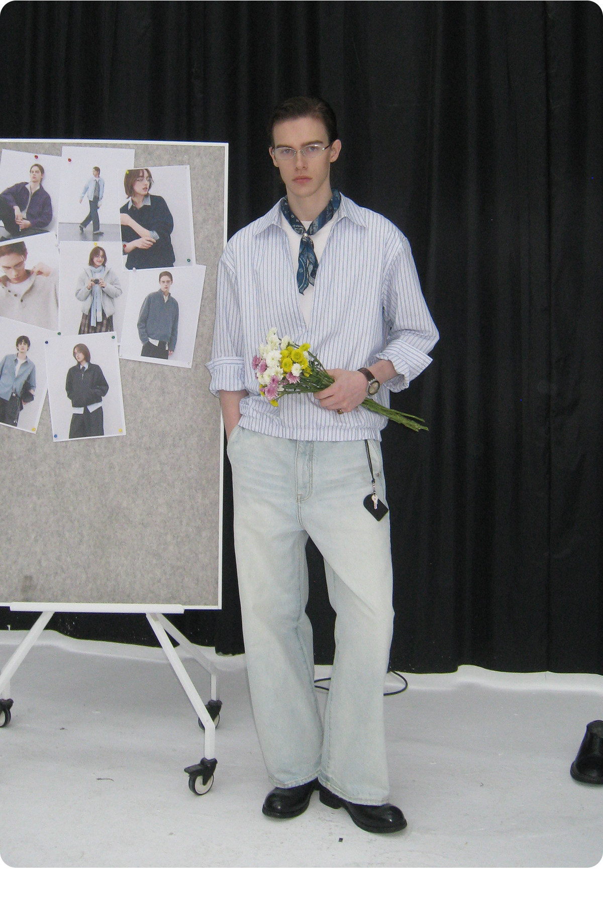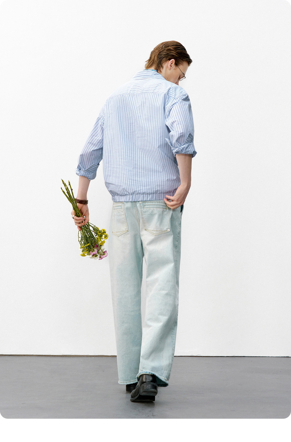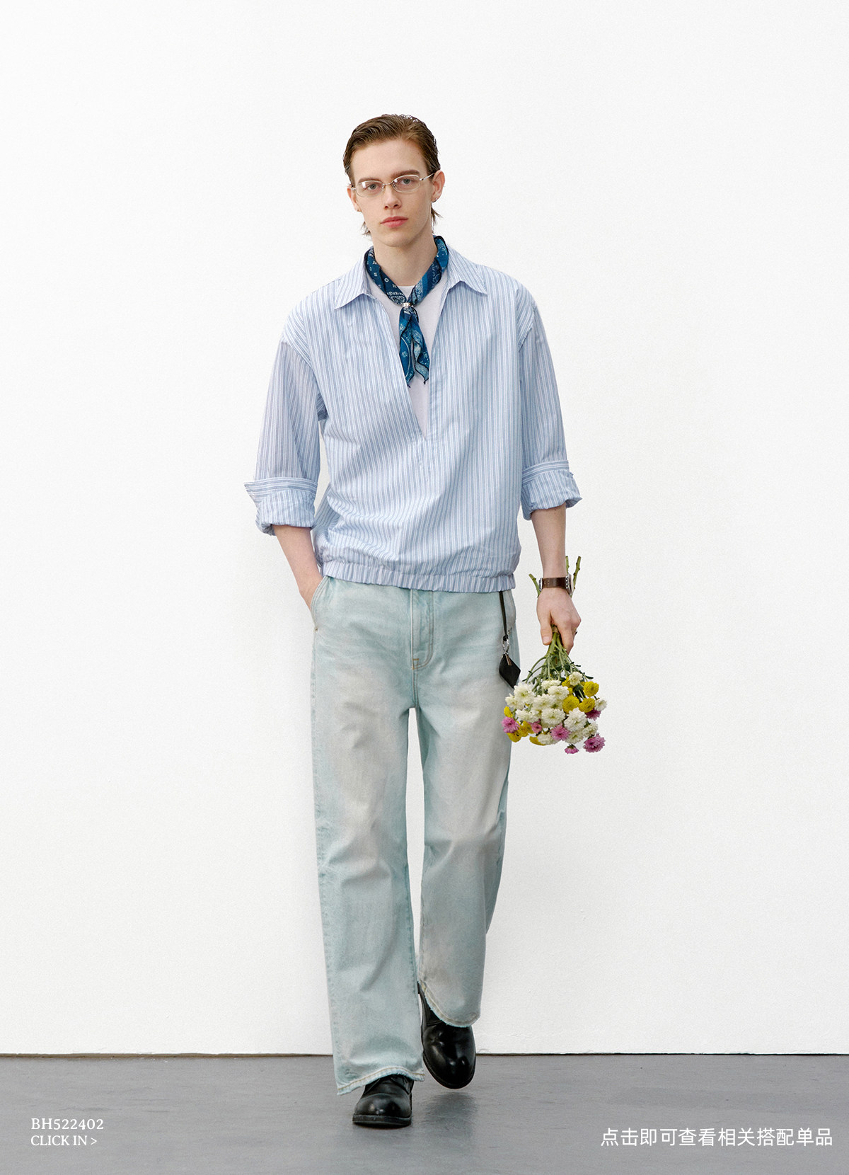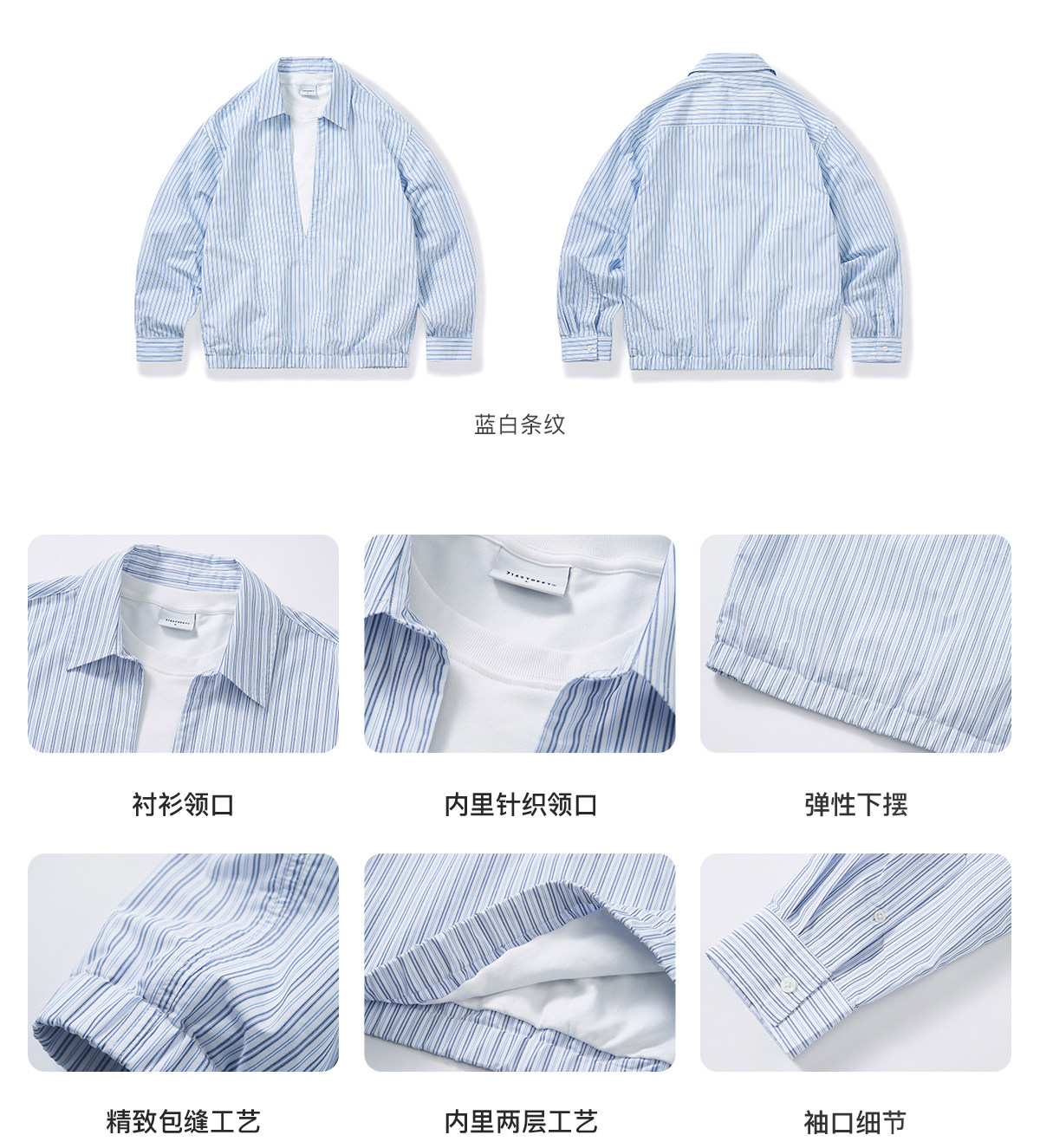 714street条纹深V领假两件长袖衬衫男2026春季休闲半开领夹克外套