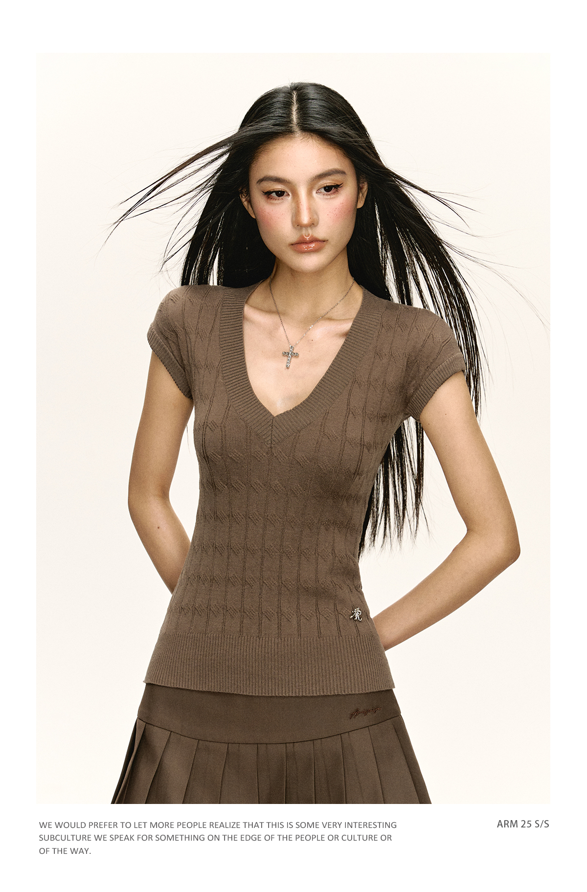 Ariseism美式复古v领针织短袖T恤女2025夏季新款辣妹修身上衣