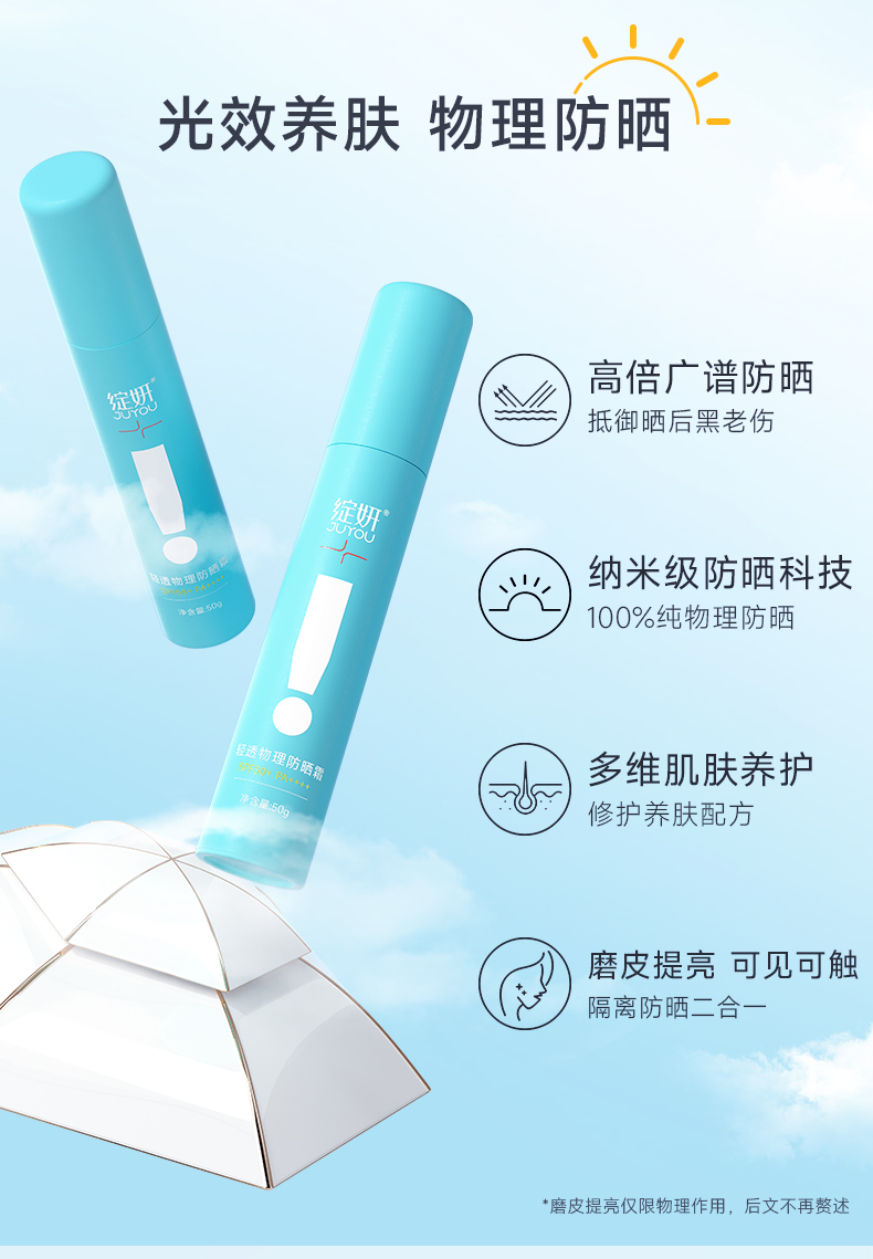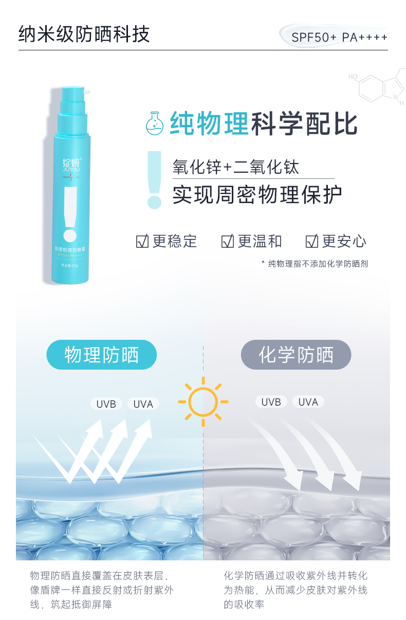 【小蓝盾敏肌防晒】绽妍小蓝盾清透物理防晒50g 提亮肤色清爽不油腻spf50+防紫外线