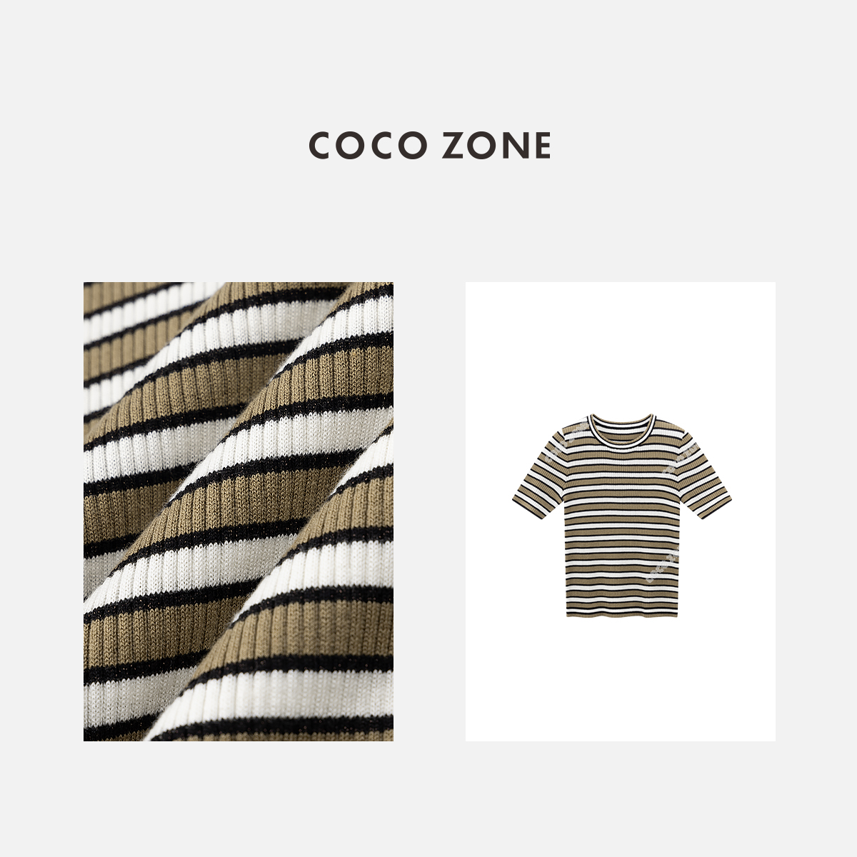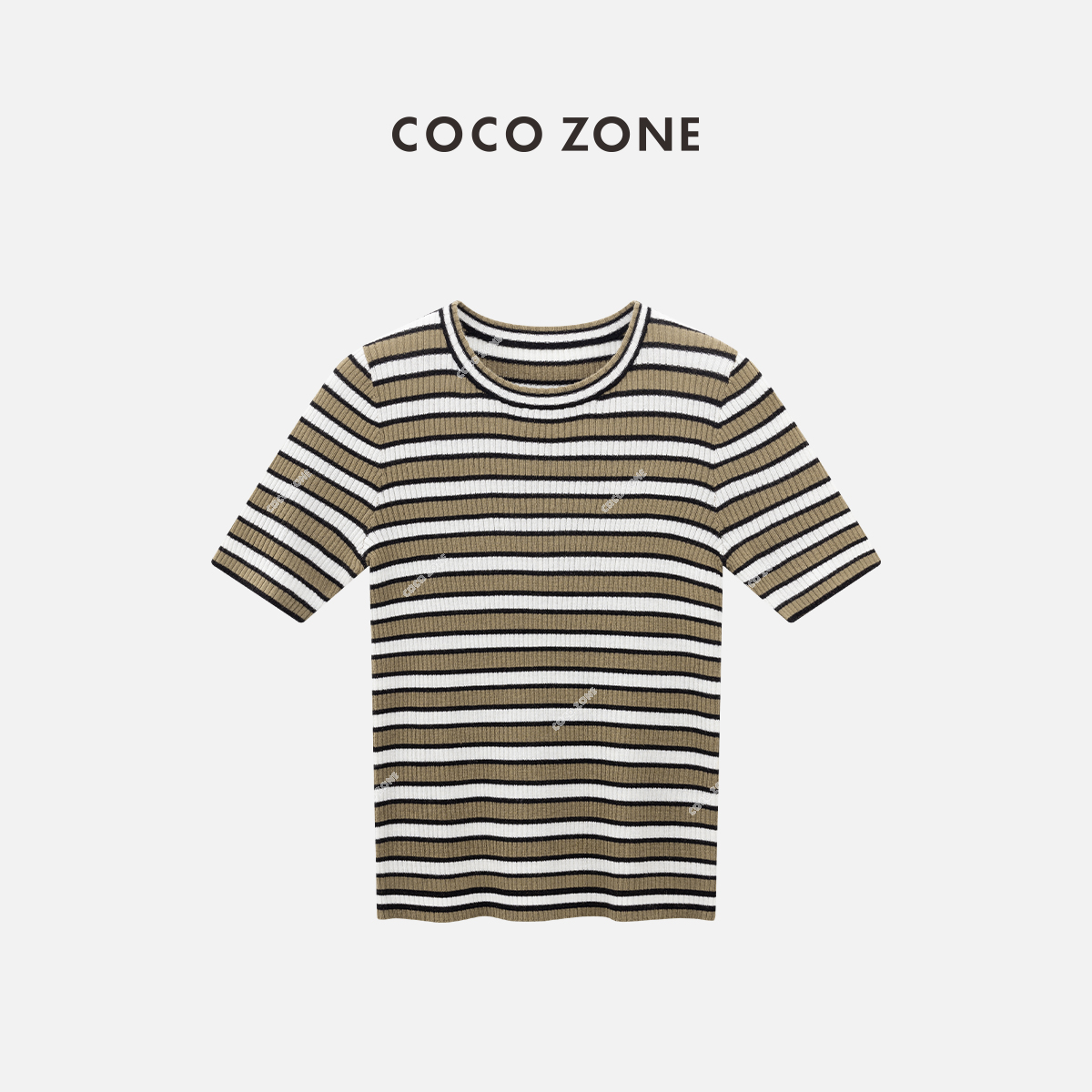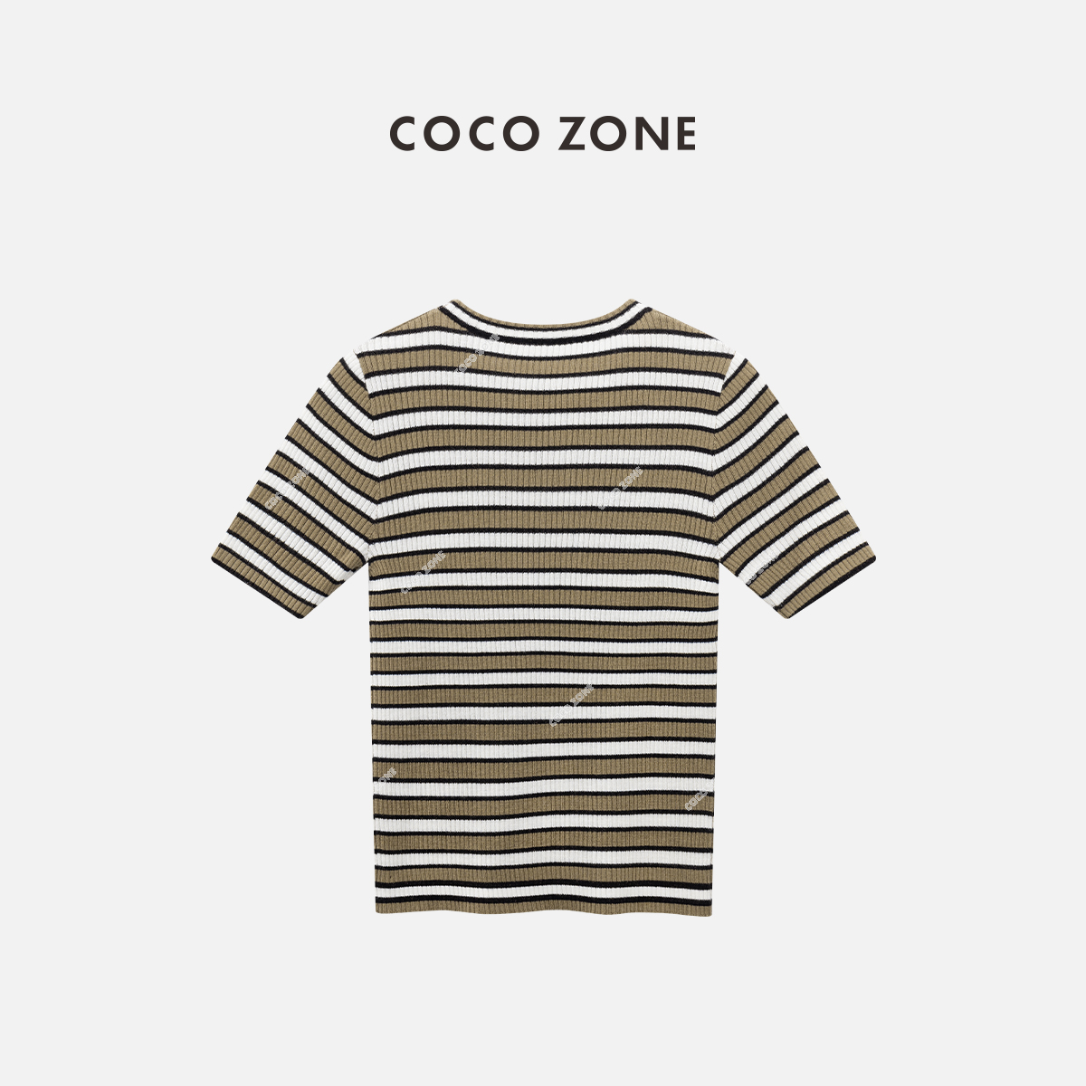 2024春夏设计感拼色条纹显瘦圆领短袖针织衫CC1A0557