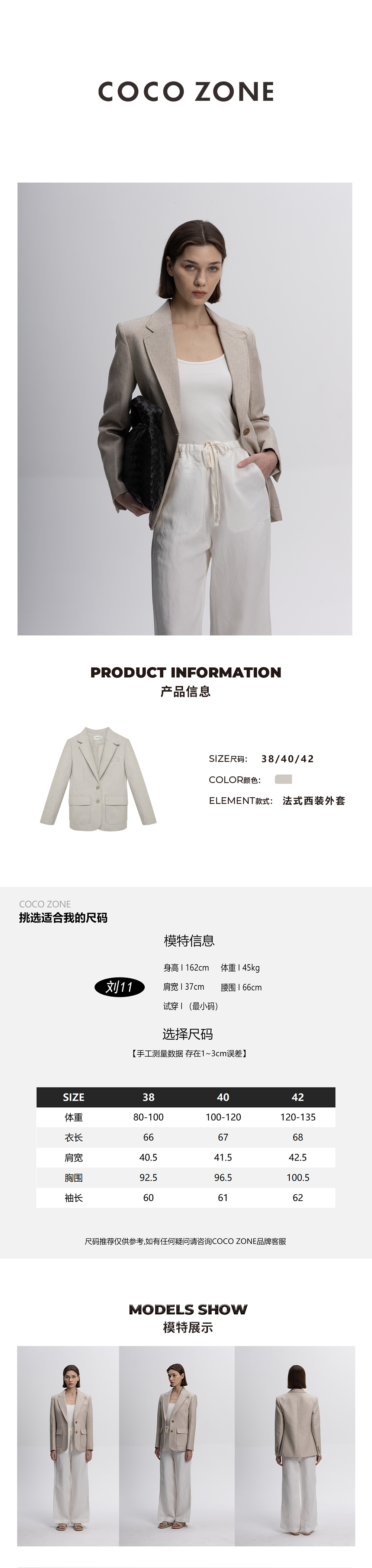 COCO ZONE&刘一一法式高级感西装外套通勤气质西服上衣24C10104
