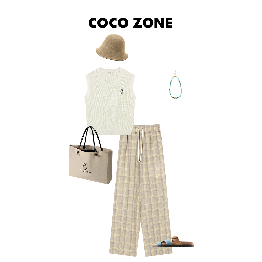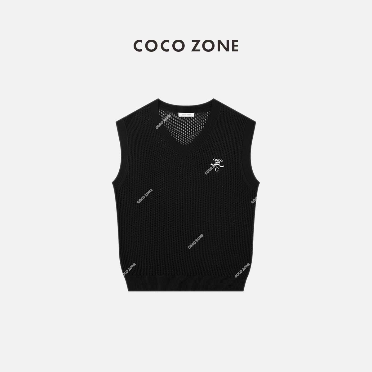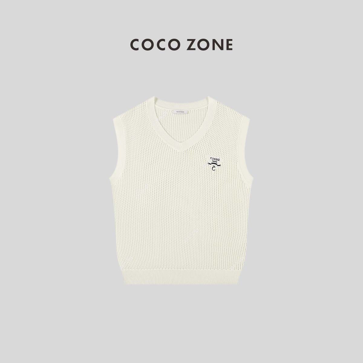 COCO ZONE 针织V领修身显瘦马甲镂空设计上衣 23C18844