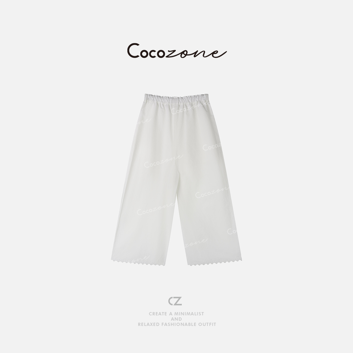 COCO ZONE 刘一一 2025新款白色松紧腰系带直筒休闲裤CD2A0770
