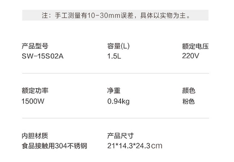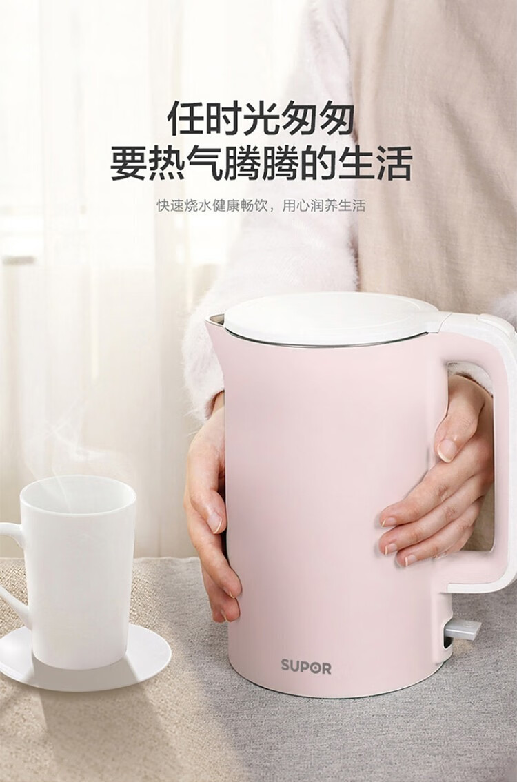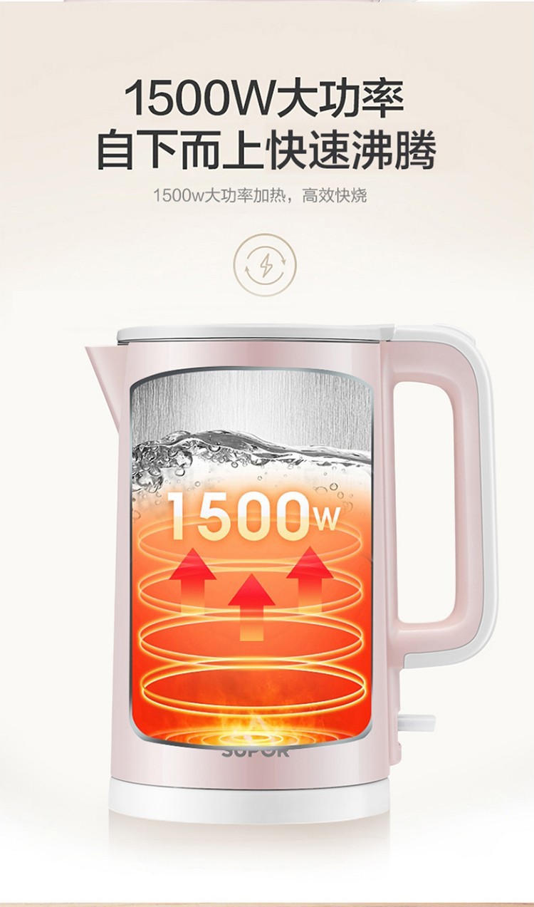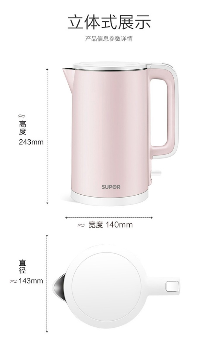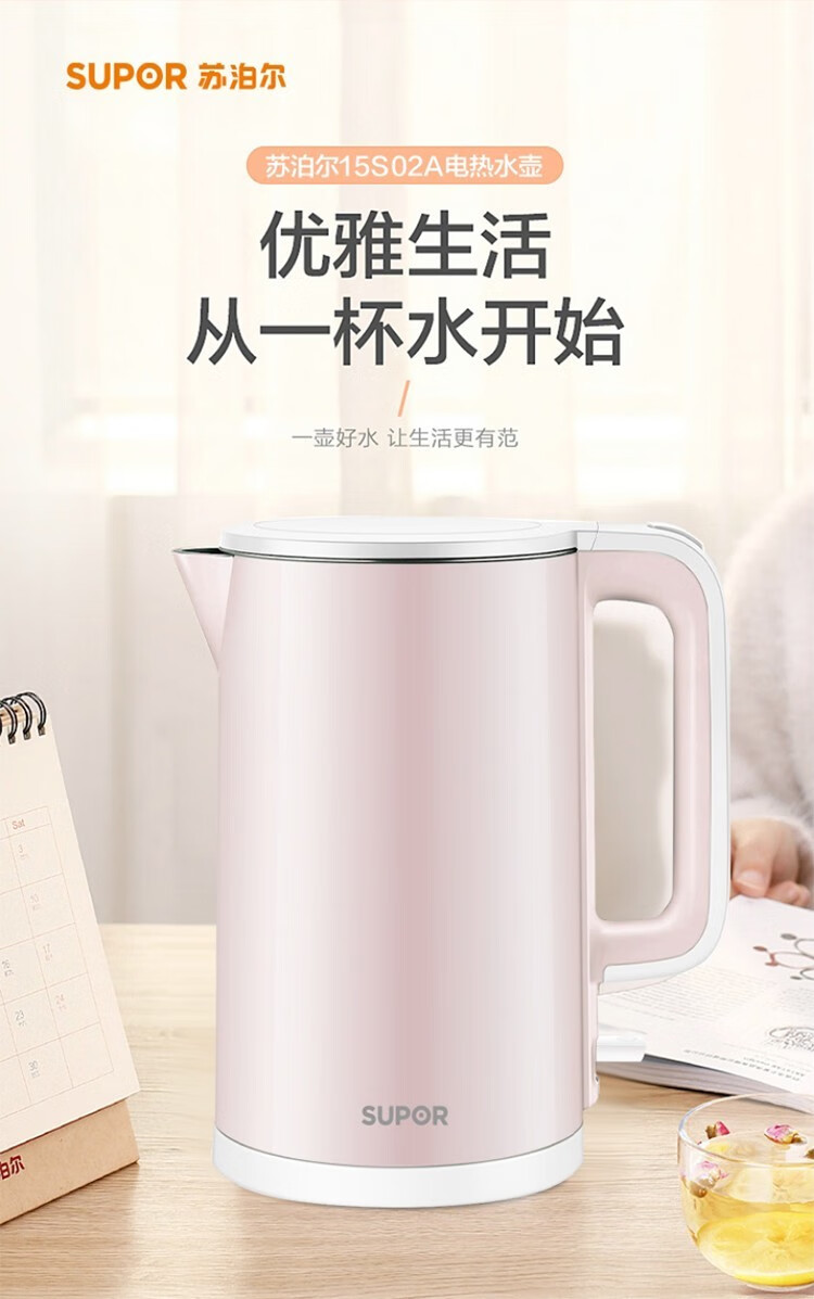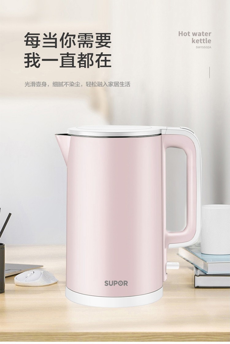 苏泊尔(SUPOR) 电水壶1.5L大容量家用无缝内胆保温烫自动断电不锈钢内胆烧水敏特渠产品C SW-15S02A 1.5L