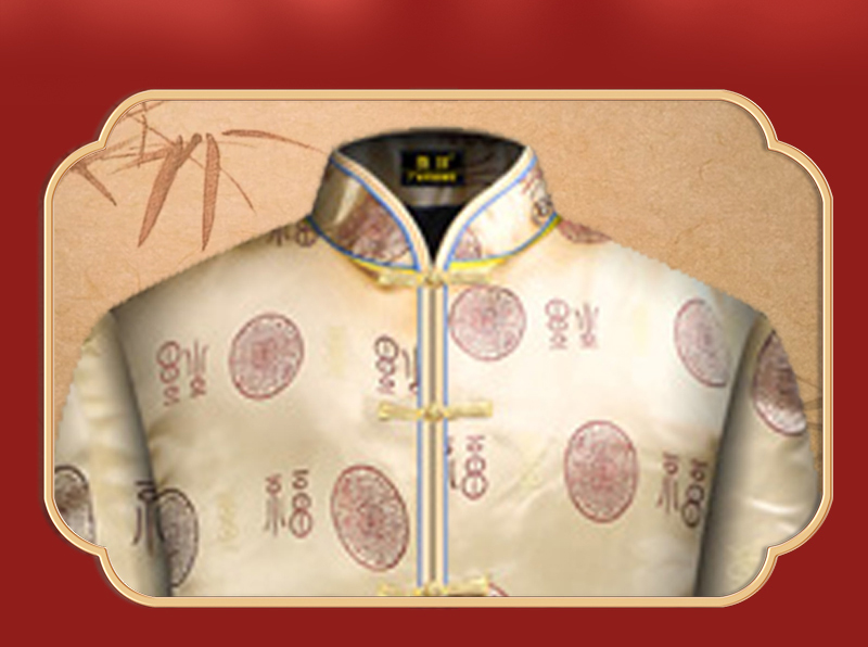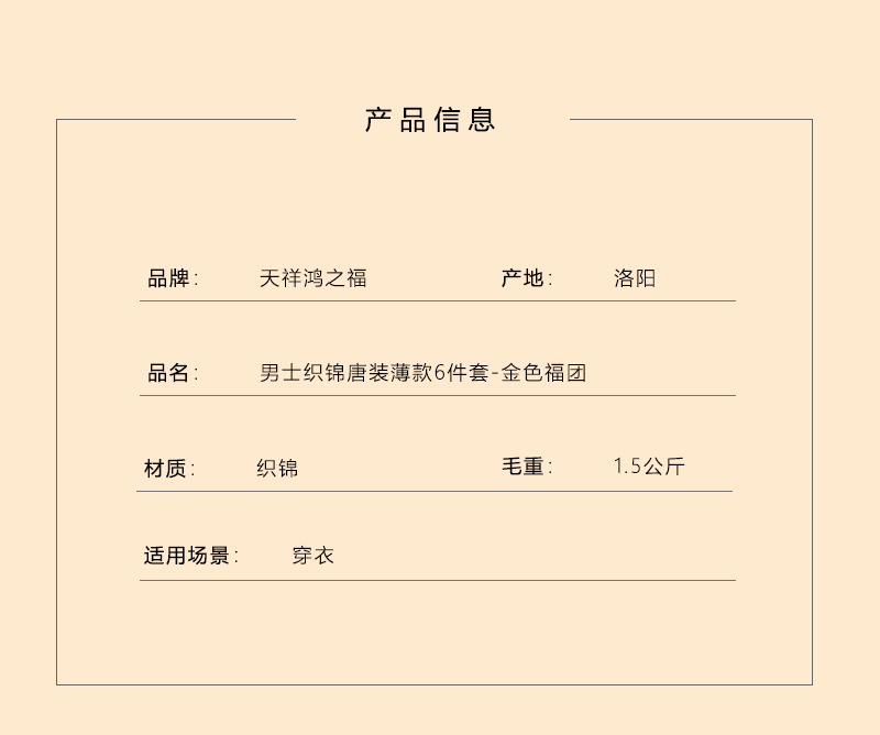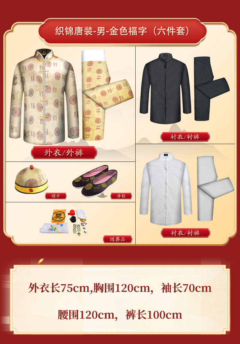 男士薄款织锦唐装金色福团6件套寿衣寿服套装