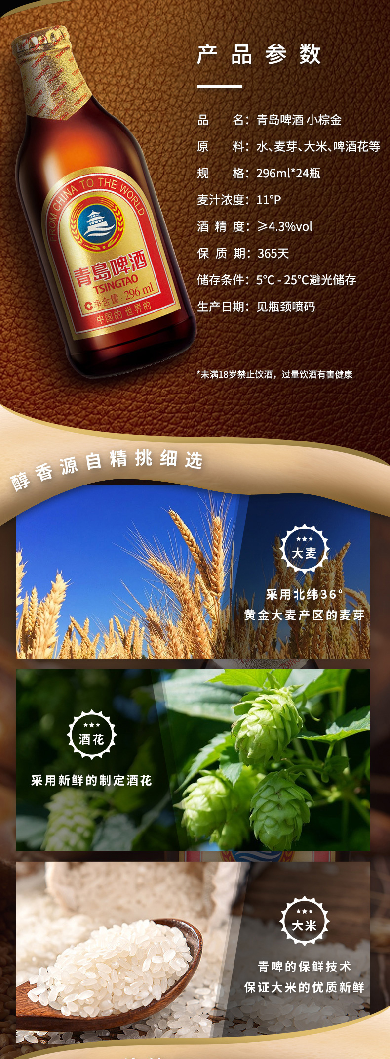 青岛啤酒 金质 小瓶 棕金 小麦醇正