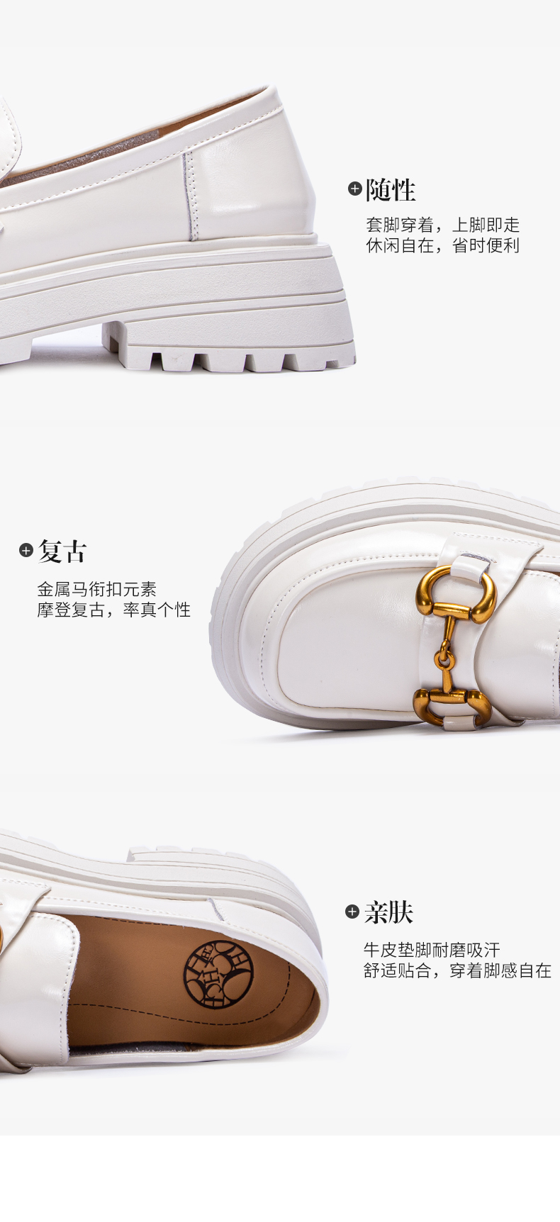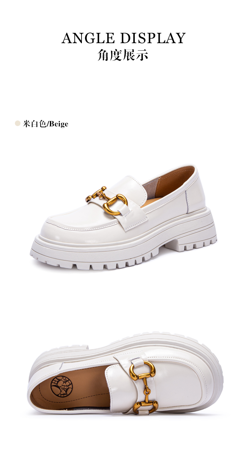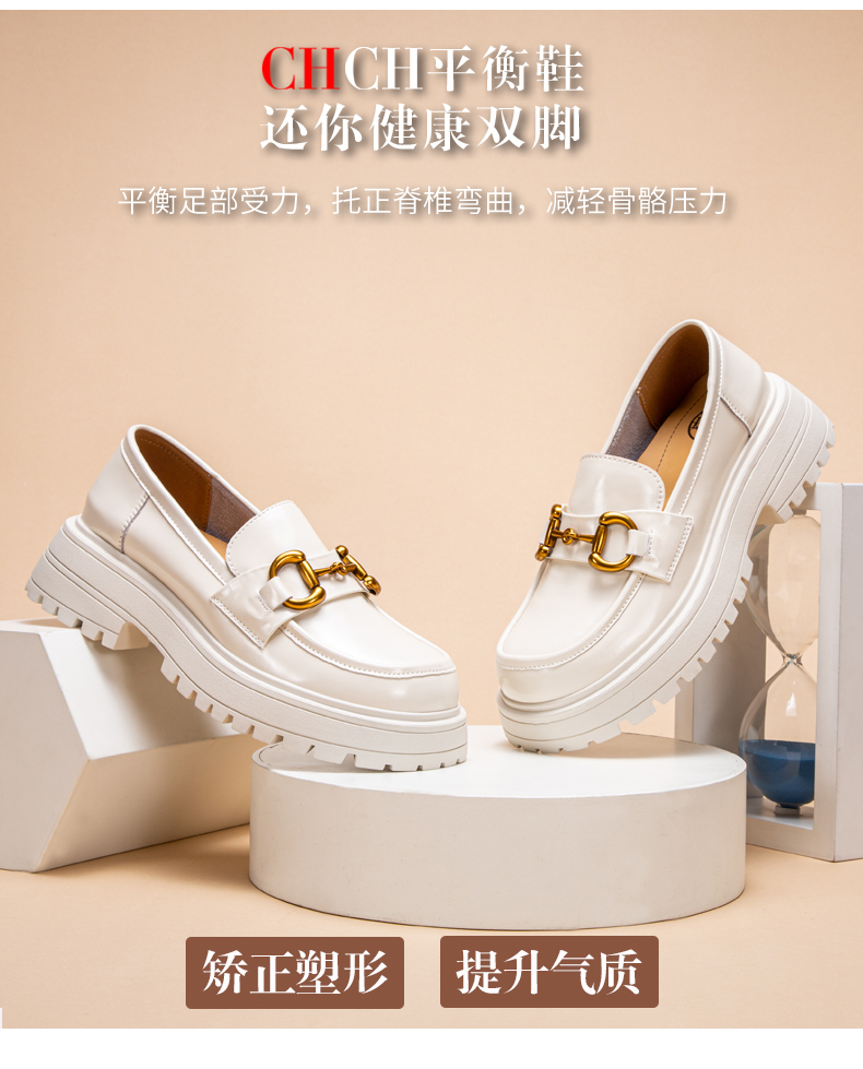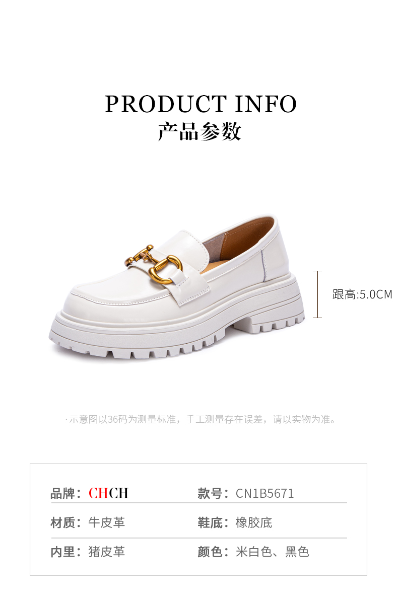 40码乐福鞋#CHCH平衡鞋橡胶底新款春夏牛皮女式增高百搭乐福鞋女鞋米白色【没运费险】