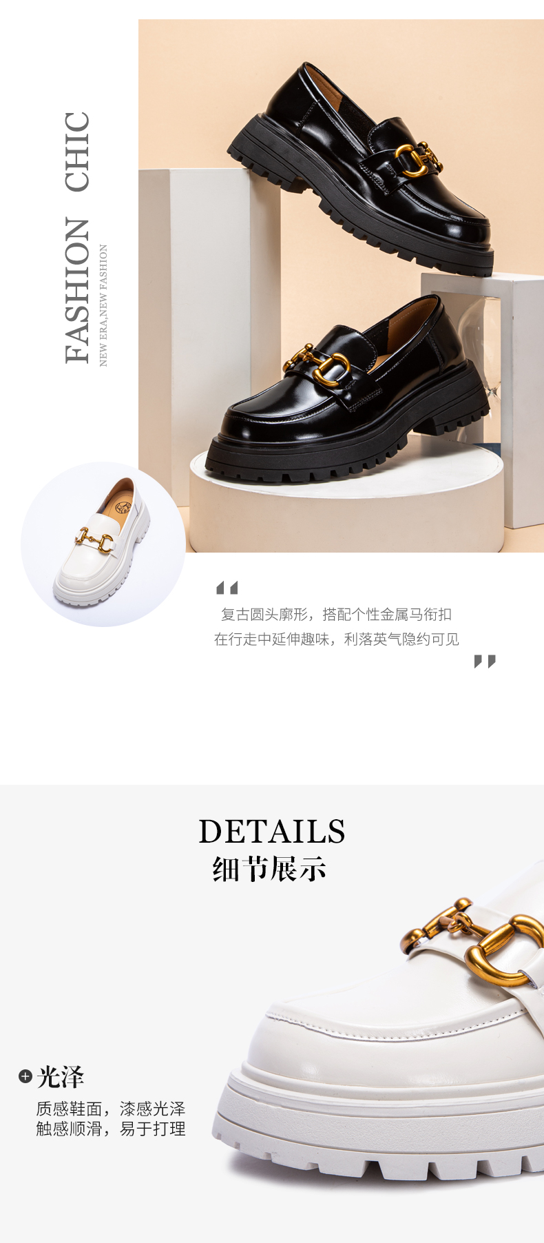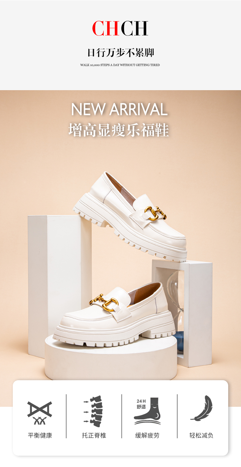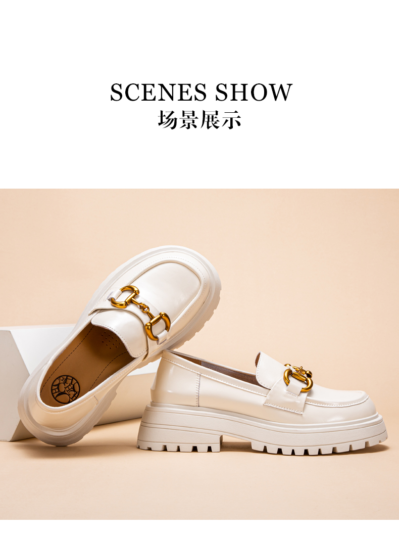 40码乐福鞋#CHCH平衡鞋橡胶底新款春夏牛皮女式增高百搭乐福鞋女鞋米白色【没运费险】