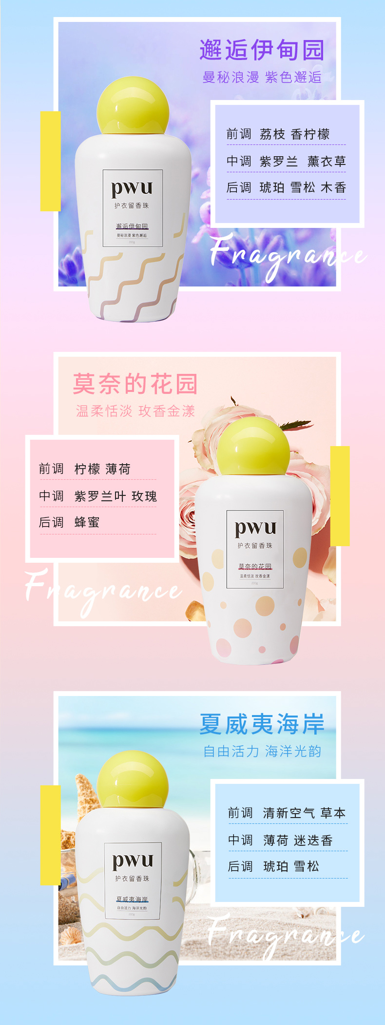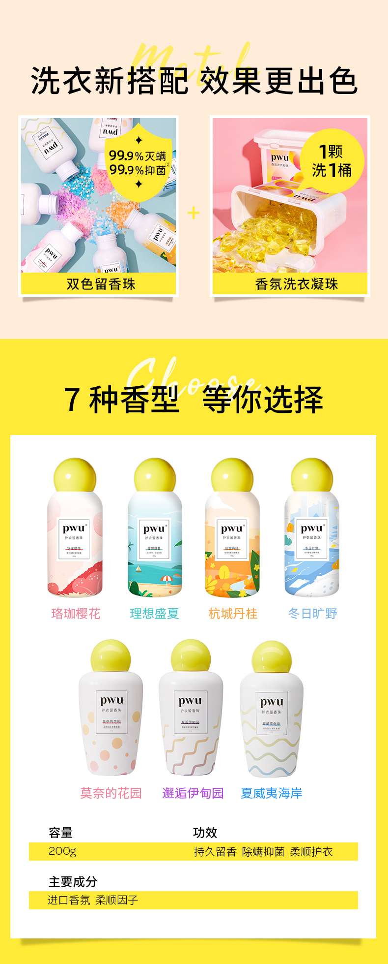 【一搓即香黑科技】PWU朴物大美 持久留香除螨柔顺衣物双色留香珠
