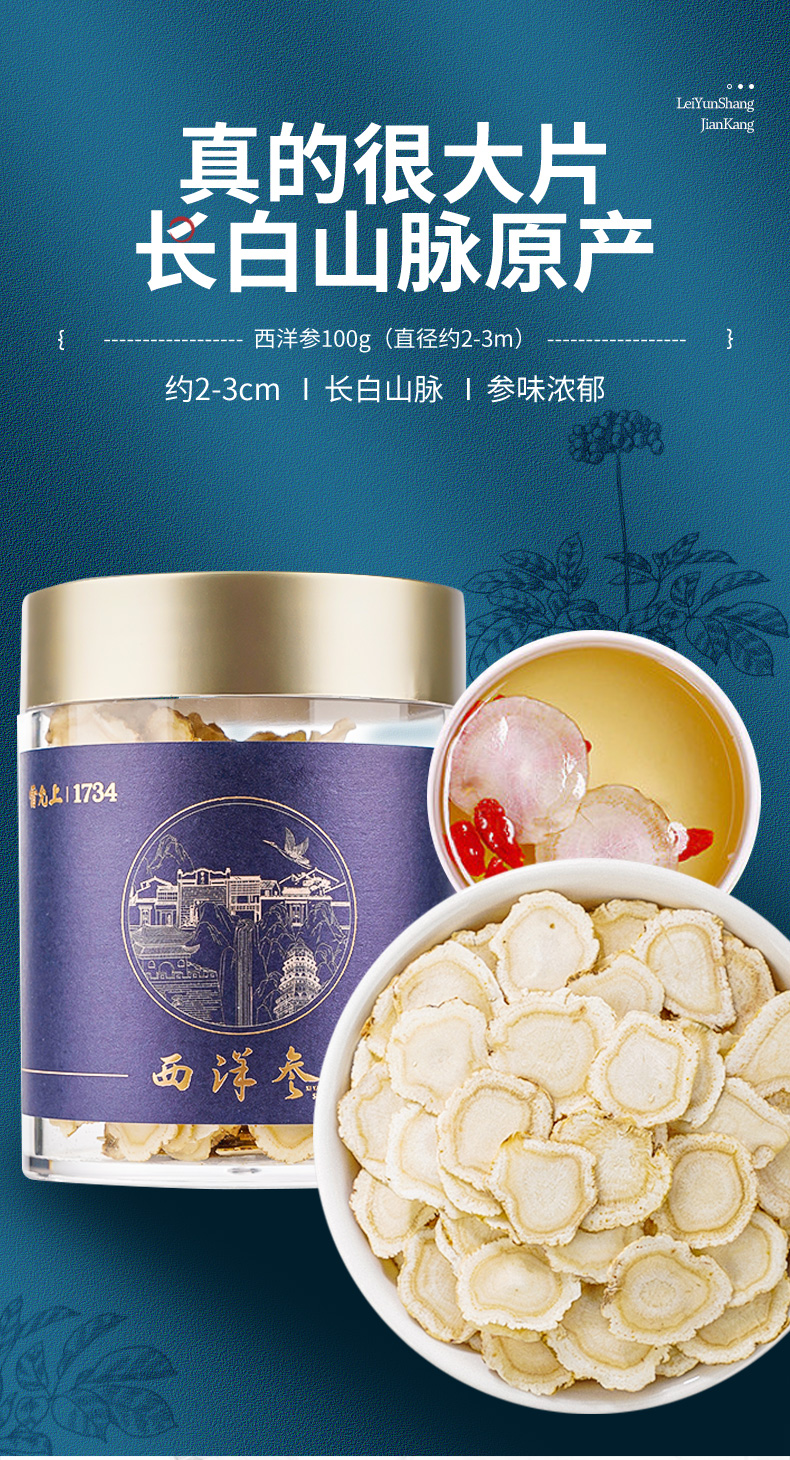雷允上长白山原产西洋参片100g/罐( 2-3cm)
