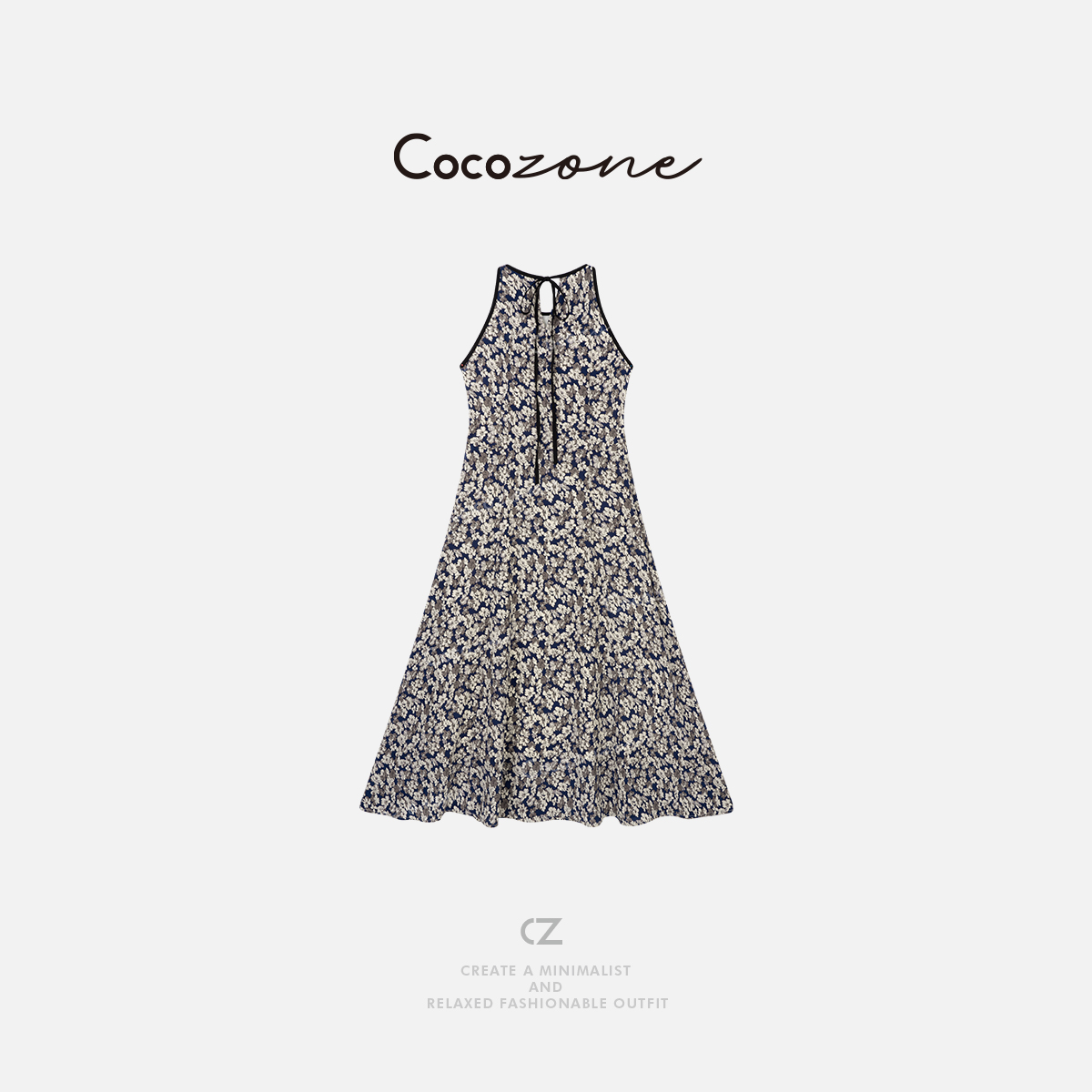 COCO ZONE 刘一一 【100桑蚕丝】精致手绘感碎花连衣裙CD1A0834