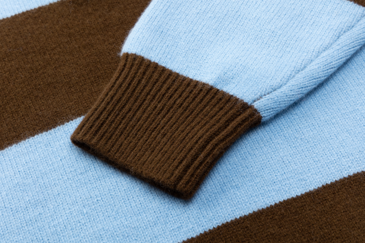 COCO ZONE 条纹撞色针织衫翻领三粒扣设计上衣CC1D2725