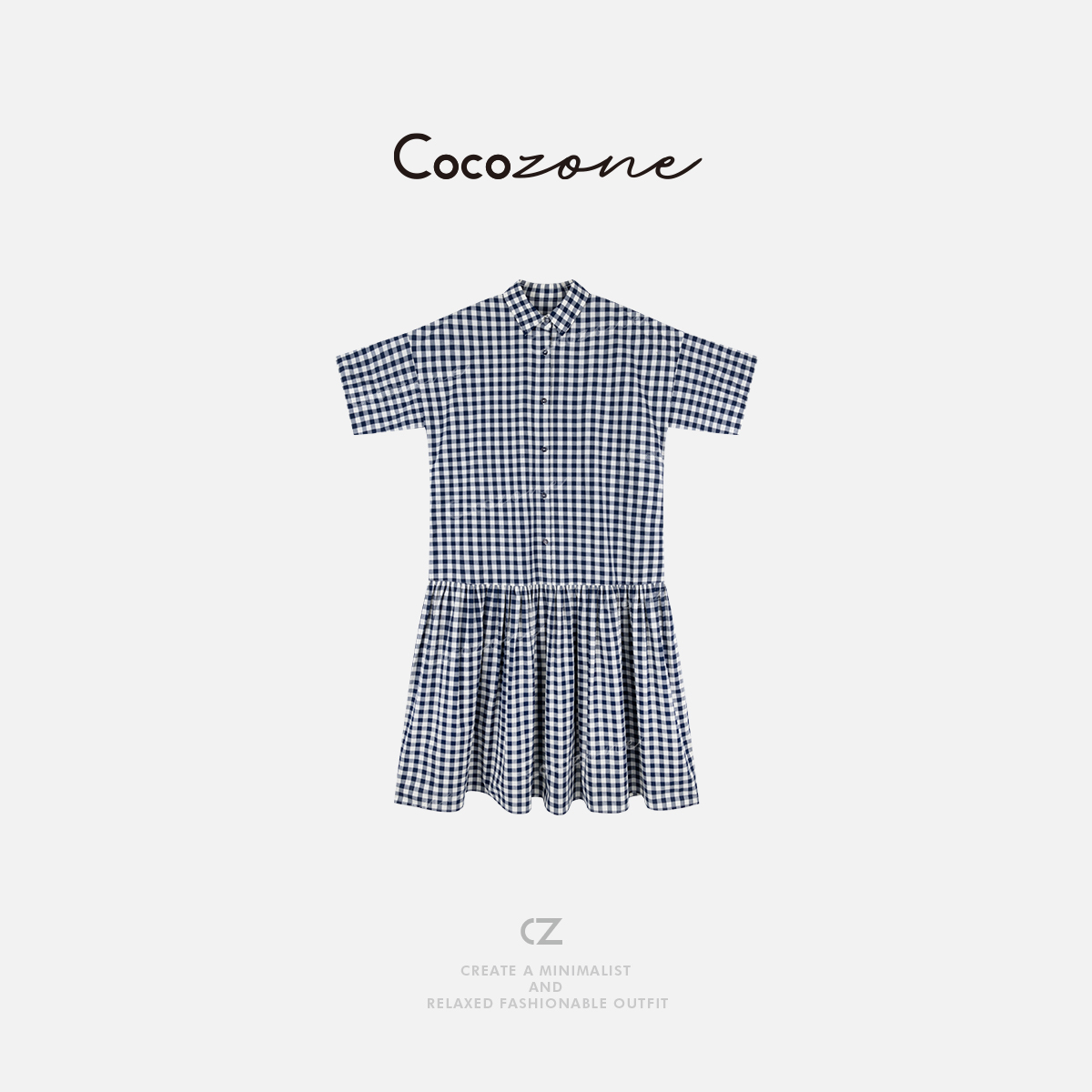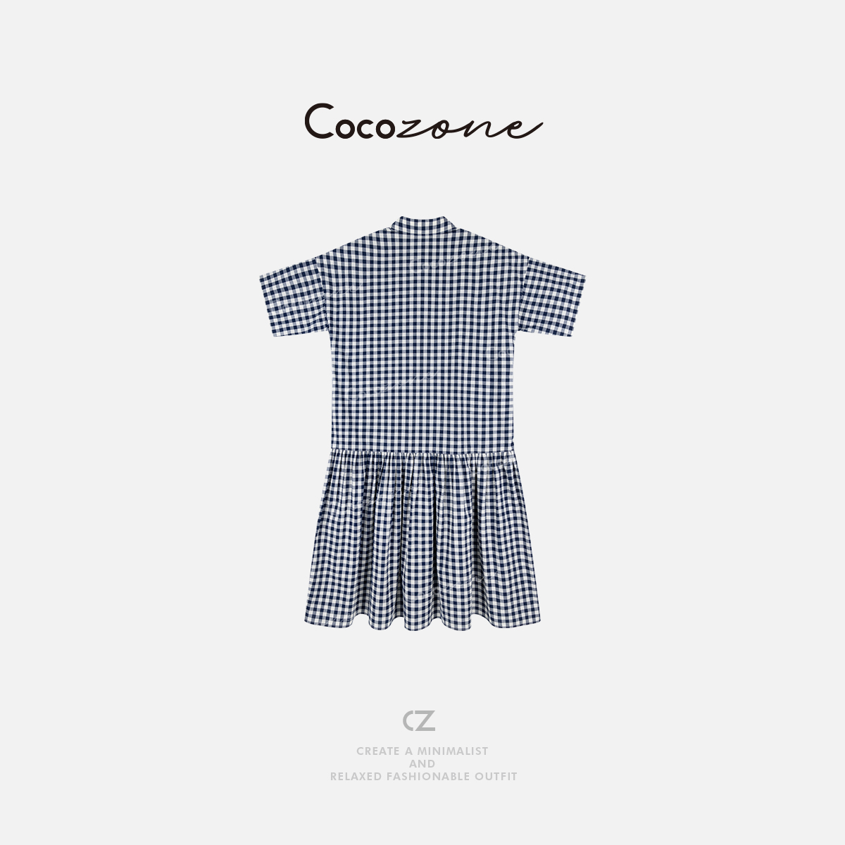 COCO ZONE 刘一一 【100棉】撞色格子翻领短袖连衣裙CD2A1220