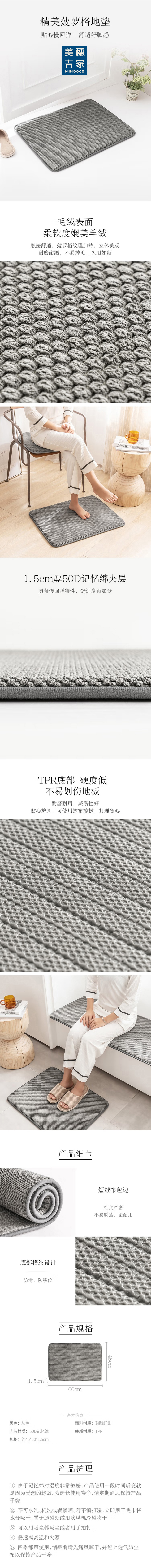 美穗吉家 记忆绵慢回弹菠萝格地垫 灰色 45X60cm