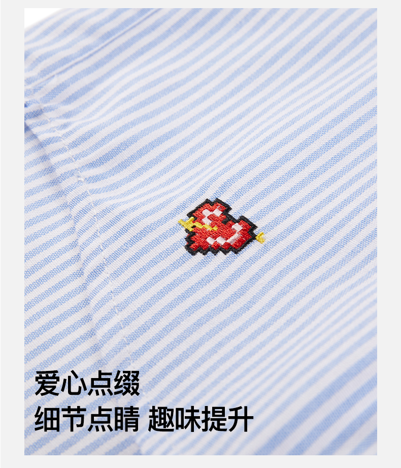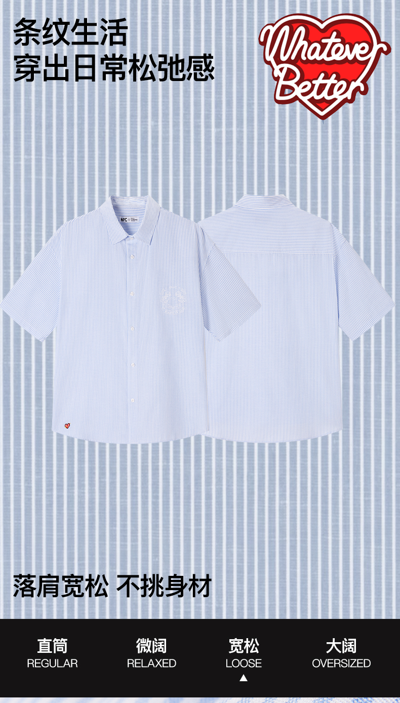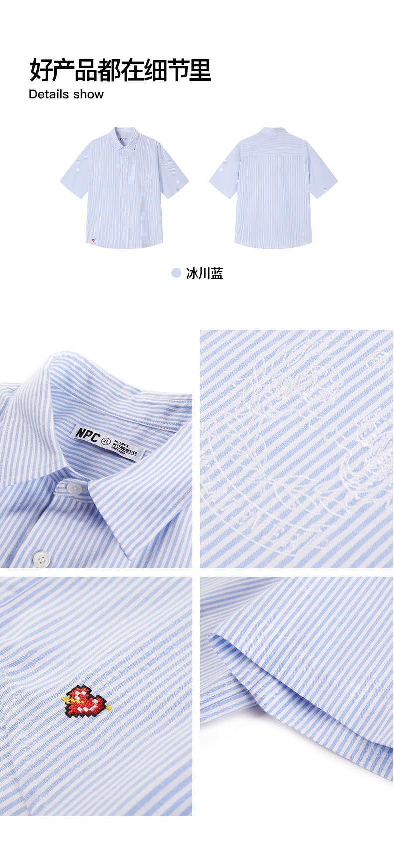 NPC潮牌刺绣天使爱心条纹短袖衬衫男翻领弧形下摆舒适NP54SH27