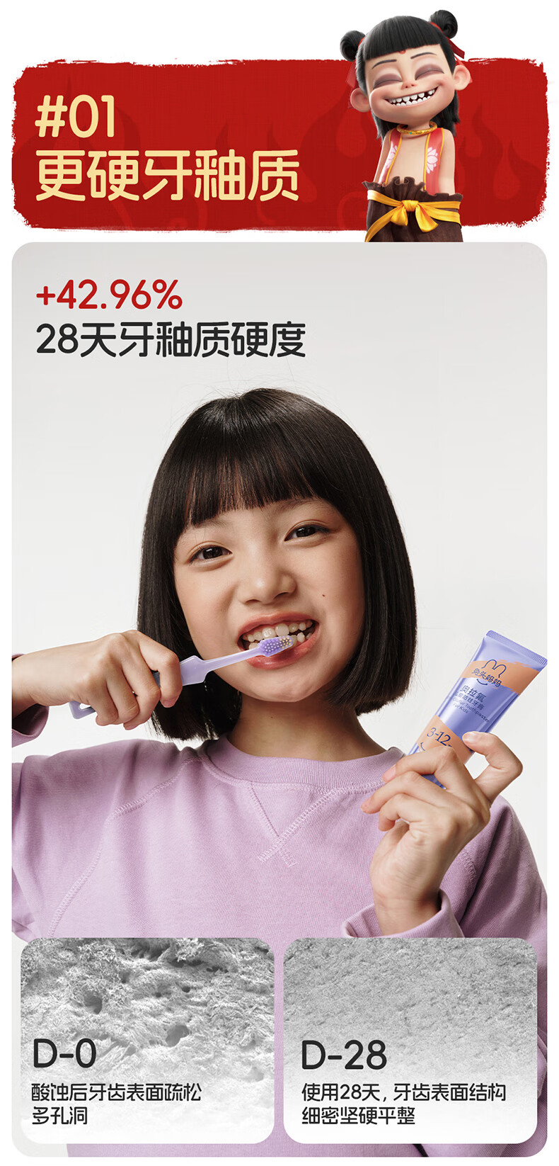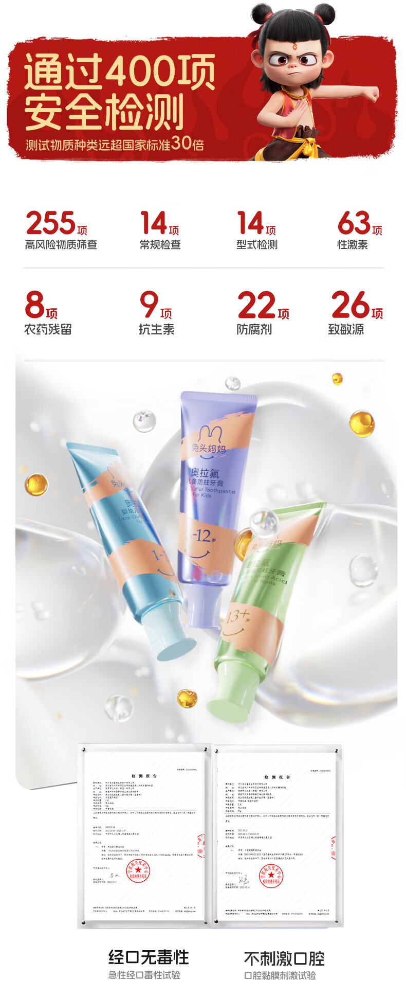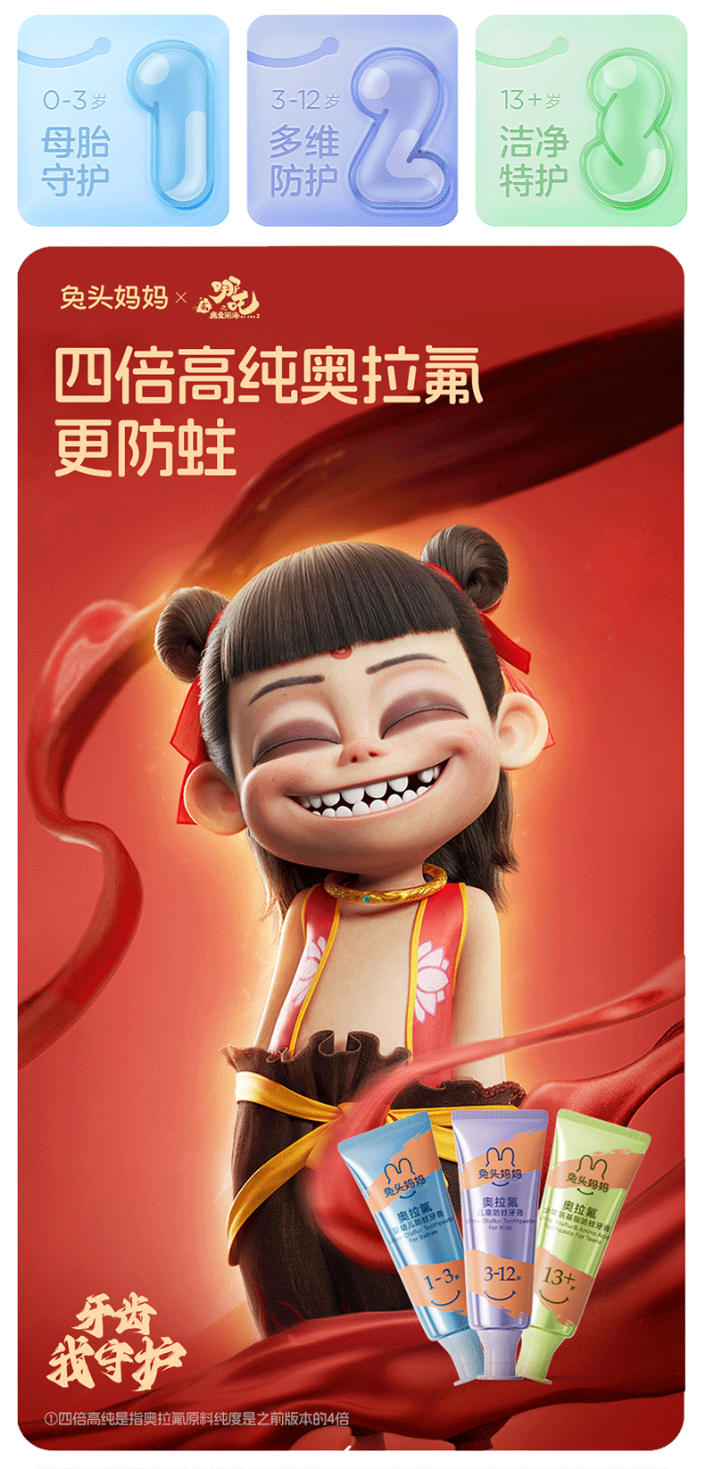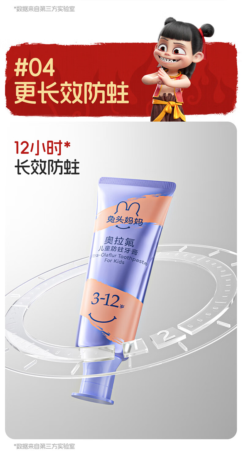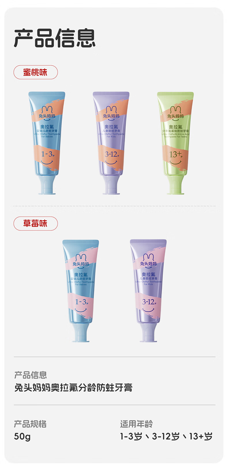 兔头妈妈高纯奥拉氟儿童防蛀牙膏 3-12岁(蜜桃味+草莓味) 100g